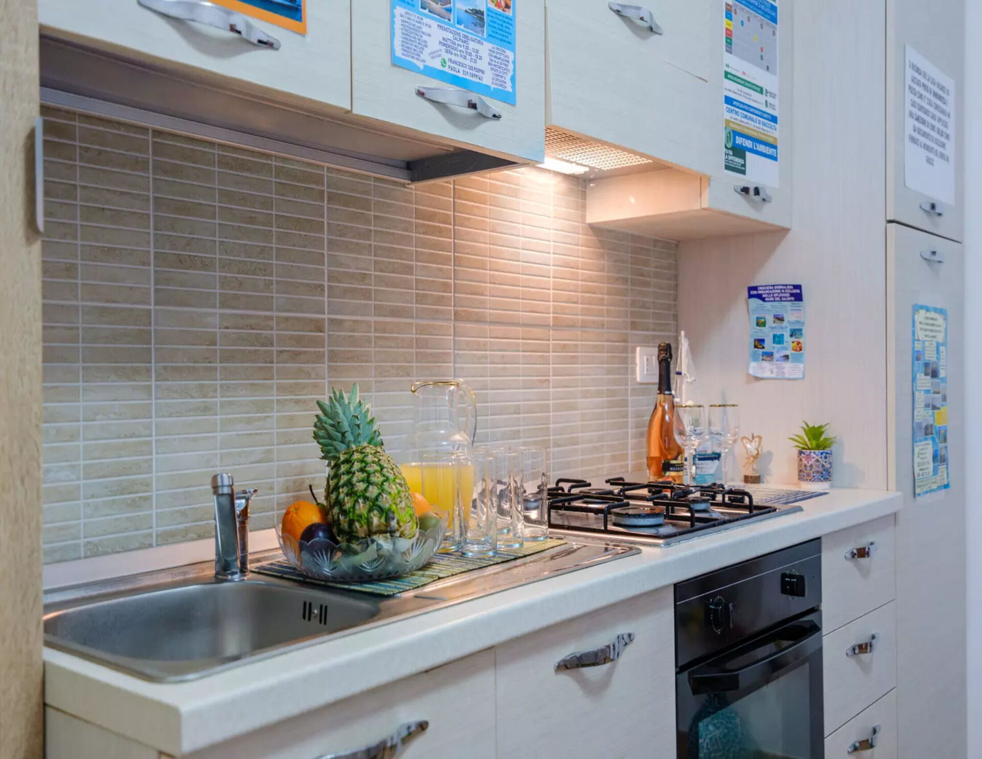 Wanneer u aankomt wordt u welkom geheten door de eigenaar of beheerder en vindt u een prachtige, schone en goed onderhouden woning met uitzicht over de zee ideaal voor een rustige vakantie in Apulië. Hoe u de dagen ook doorbrengt - winkelen, musea bezoek, met excursies of rijdende door het prachtige landschap, zodra u thuis komt kunt u uitrusten samen met familie en vrienden voor een perfecte afsluiting van nog weer een dag in Apulië. Dineren met vrienden en familie is een grote onderdeel van de Italiaanse cultuur. Maak gebruik van de keuken om maaltijden te bereiden met lokale producten terwijl u op vakantie bent. De keuken biedt o.a. een magnetron oven, broodrooster, fornuis en ijskast, en natuurlijk ook voldoende servies en bestek voor minstens vier personen.