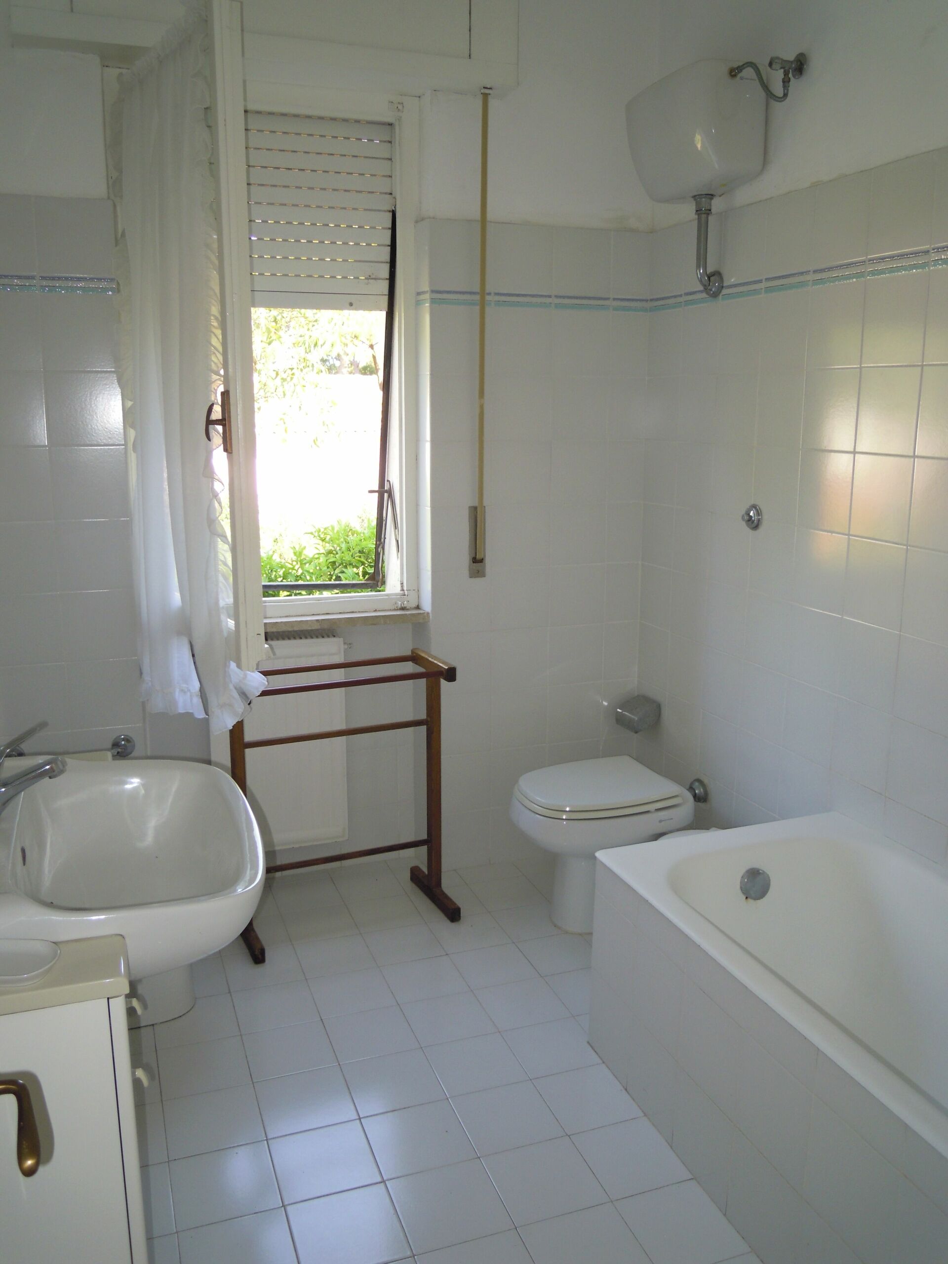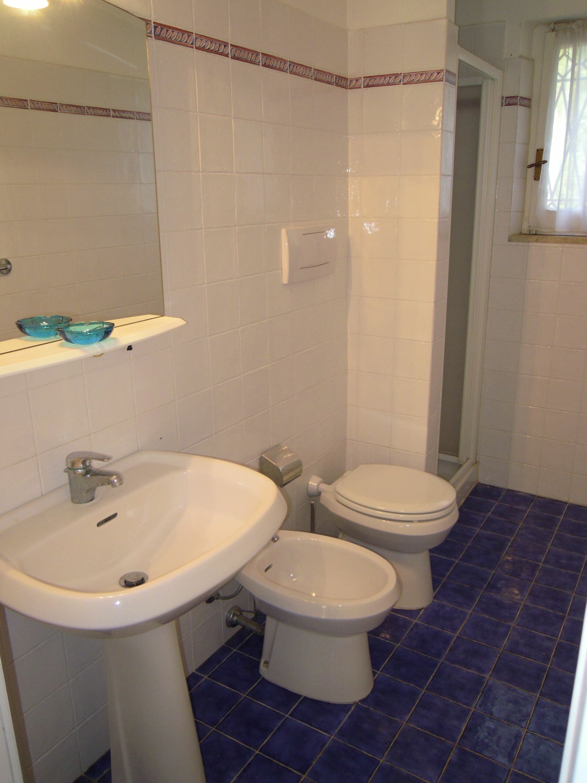 Badkamer: wastafel, toilet , bidet, douche, haardroger, wasmachine.