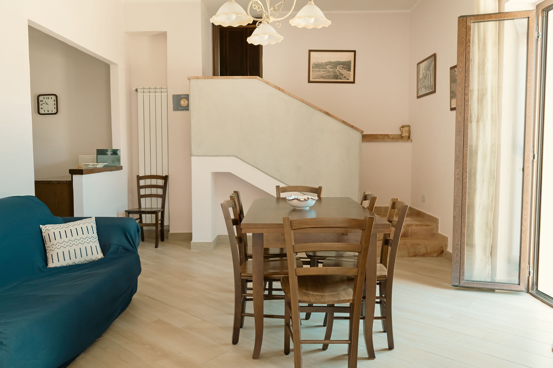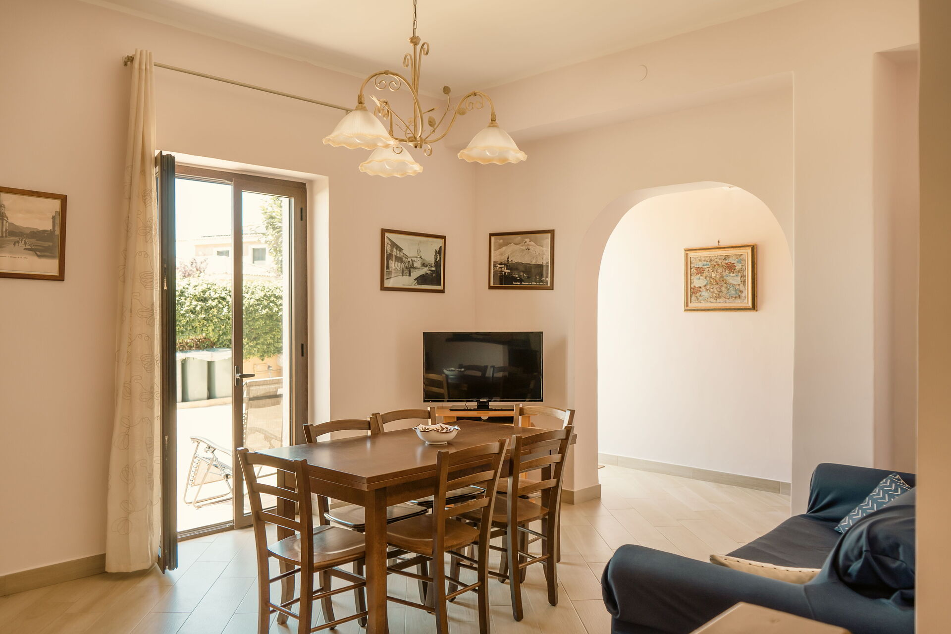 Zodra u aankomt vindt u een prachtige, schone en goed onderhouden woning met uitzicht over de heuvels ideaal voor een rustige vakantie in Sicilië. Voor uw vermaak vindt u een privé tuin waar u kunt ontspannen met een heerlijk koel drankje na een drukke dag winkelen. Een groot voordeel van het huren van een huis, in plaats van meerdere hotelkamers, is de mogelijkheid om samen met familie en vrienden te ontspannen na een drukke dag van rondkijken en toeren. Geniet samen van een maaltijd met een glas lokale wijn om de dag af te sluiten. Dineren met vrienden en familie is een grote onderdeel van de Italiaanse cultuur. Maak gebruik van de goed uitgeruste keuken om maaltijden te bereiden met lokale producten terwijl u op vakantie bent. De keuken biedt o.a. een magnetron oven, broodrooster en ijskast, en natuurlijk ook voldoende servies en bestek voor minstens zeven personen. Eet buiten net zoals een echte Italiaan, een veranda met tuinmeubilair is ideaal om te genieten van het heerlijke eten, de familie en het fijne Italiaanse klimaat.