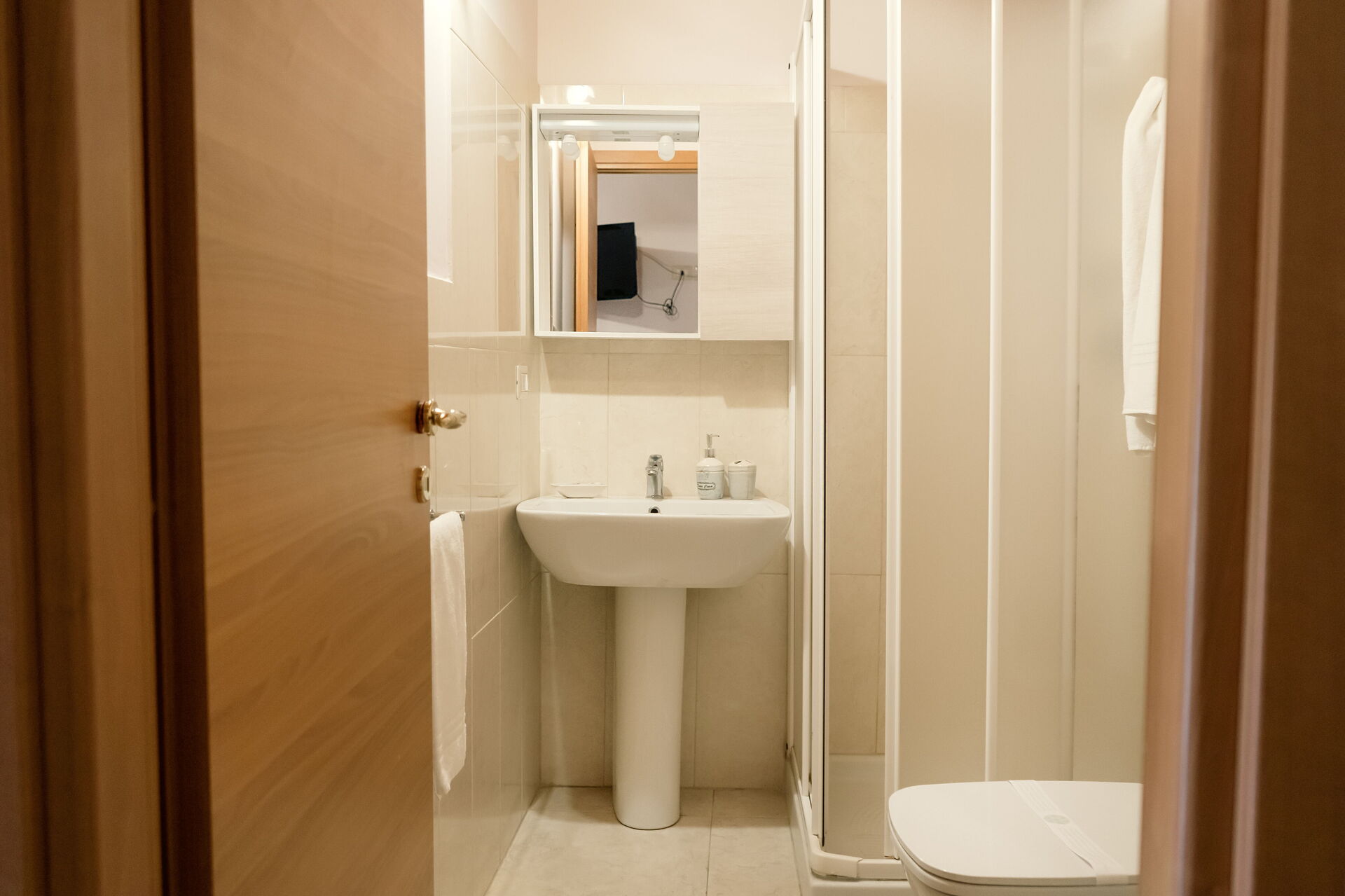 Slaapkamer met badkamer (65 m2): tweepersoonsbed, eenpersoonsbed, WIFI internet, airconditioning, bureau, wastafel, toilet , bidet, haardroger.