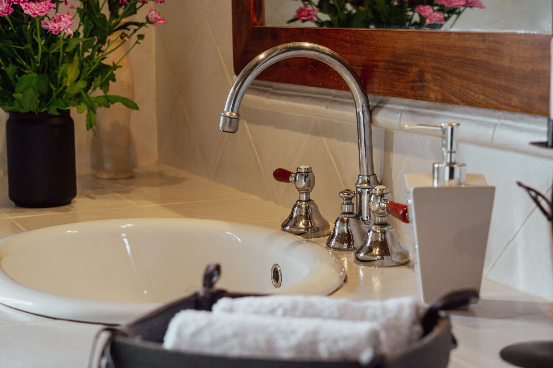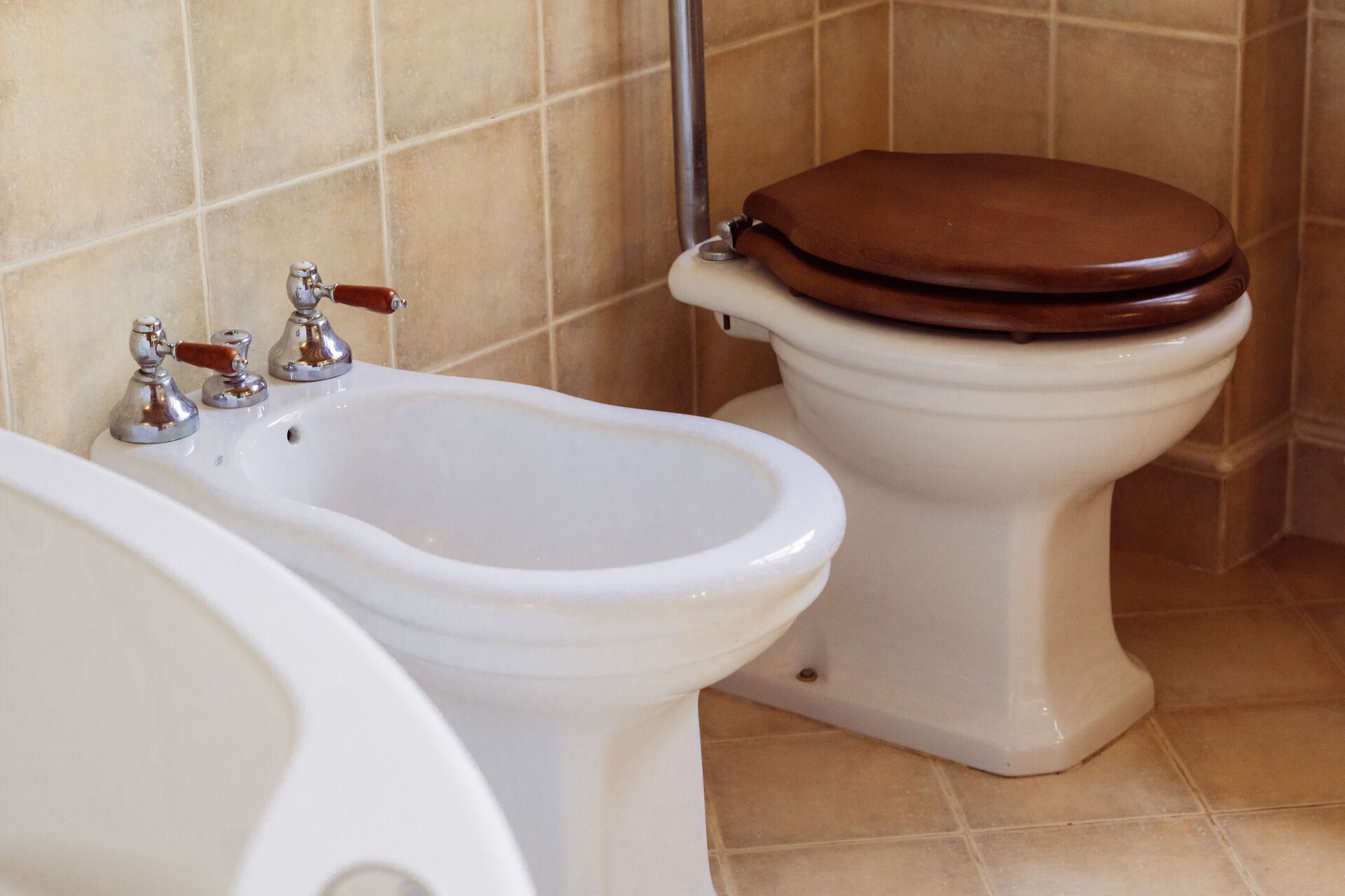 Badkamer: bubbelbad, wastafel, toilet , bidet.