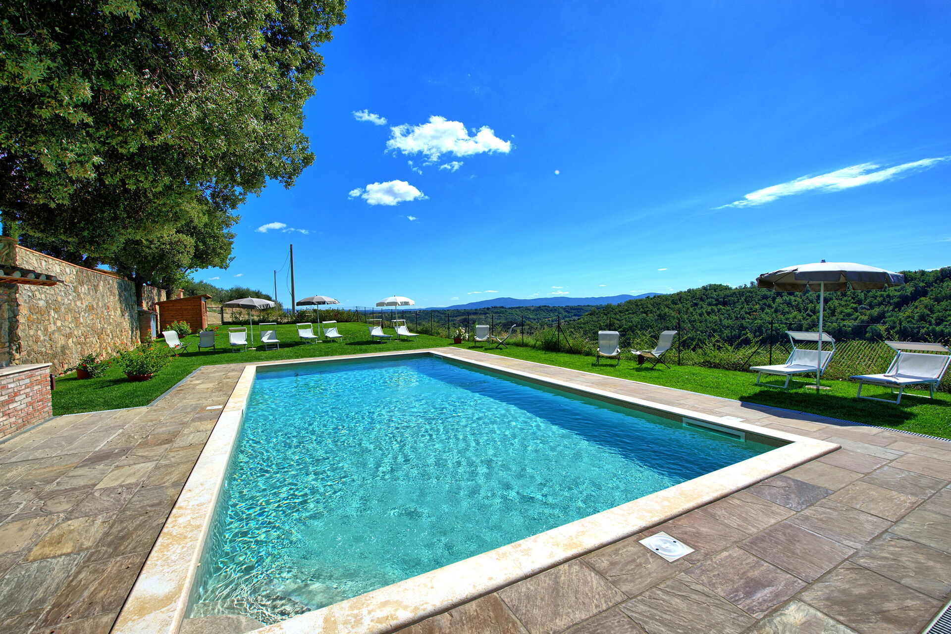 Het zwembad ligt op 650 meter en wordt gedeeld met de gasten van de andere appartementen en die van de villa.