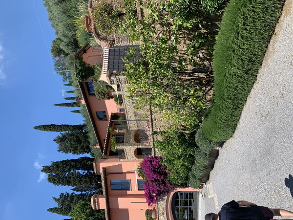De villa wordt aan één kant begrensd door het huis van de eigenaren, waarvan het door heggen wordt gescheiden om maximale privacy voor de gasten te garanderen.