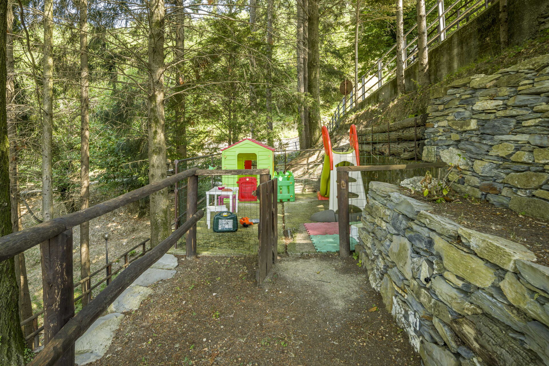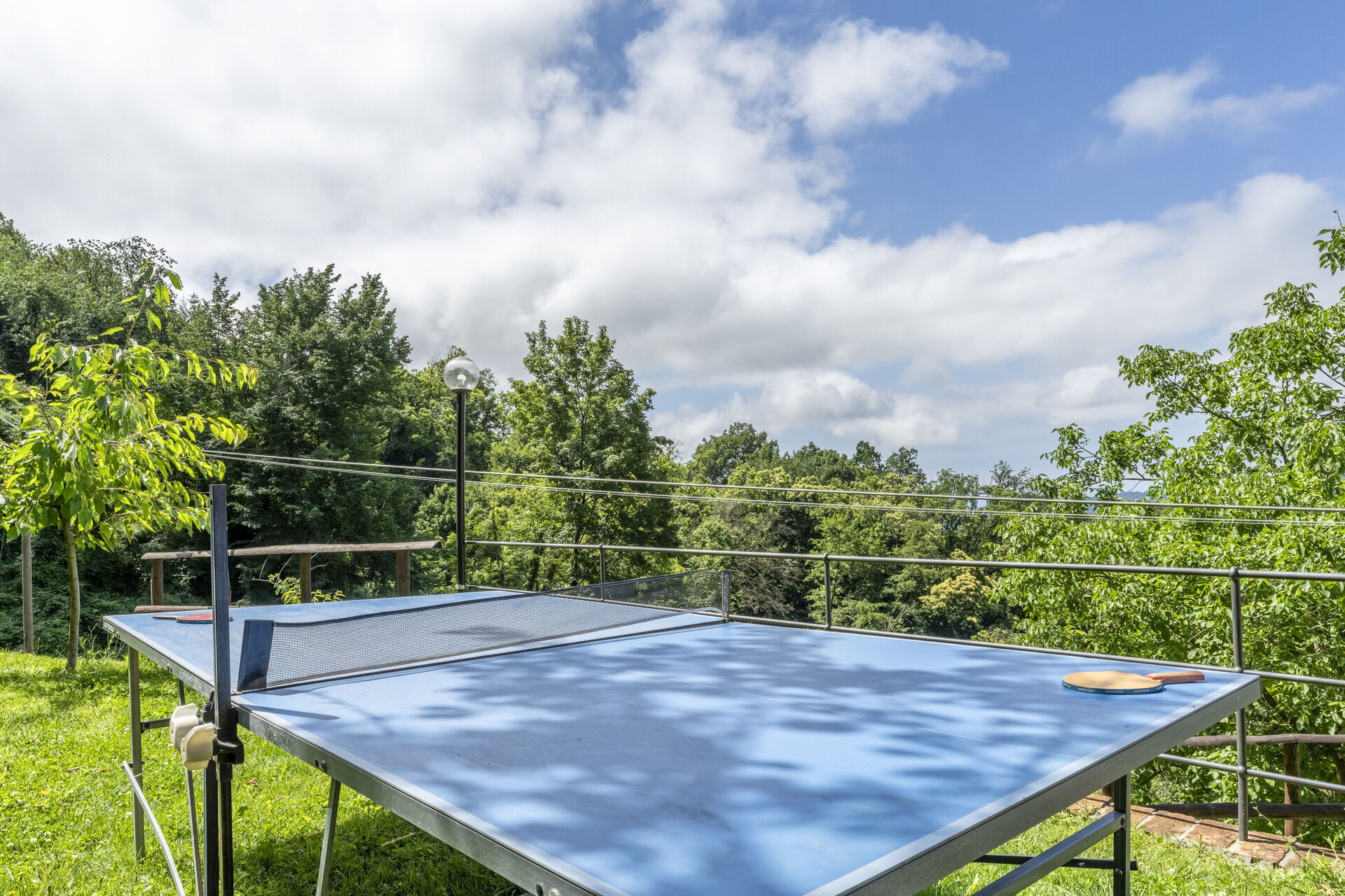 Tuin: zwembad (breedte: 3m, lengte: 9m, diepte: 1.5m), douche, barbecue, open haard, dineren in de buitenlucht, eettafel, terrasmeubilair, ligstoel, omheind grondstuk, speelplaats.