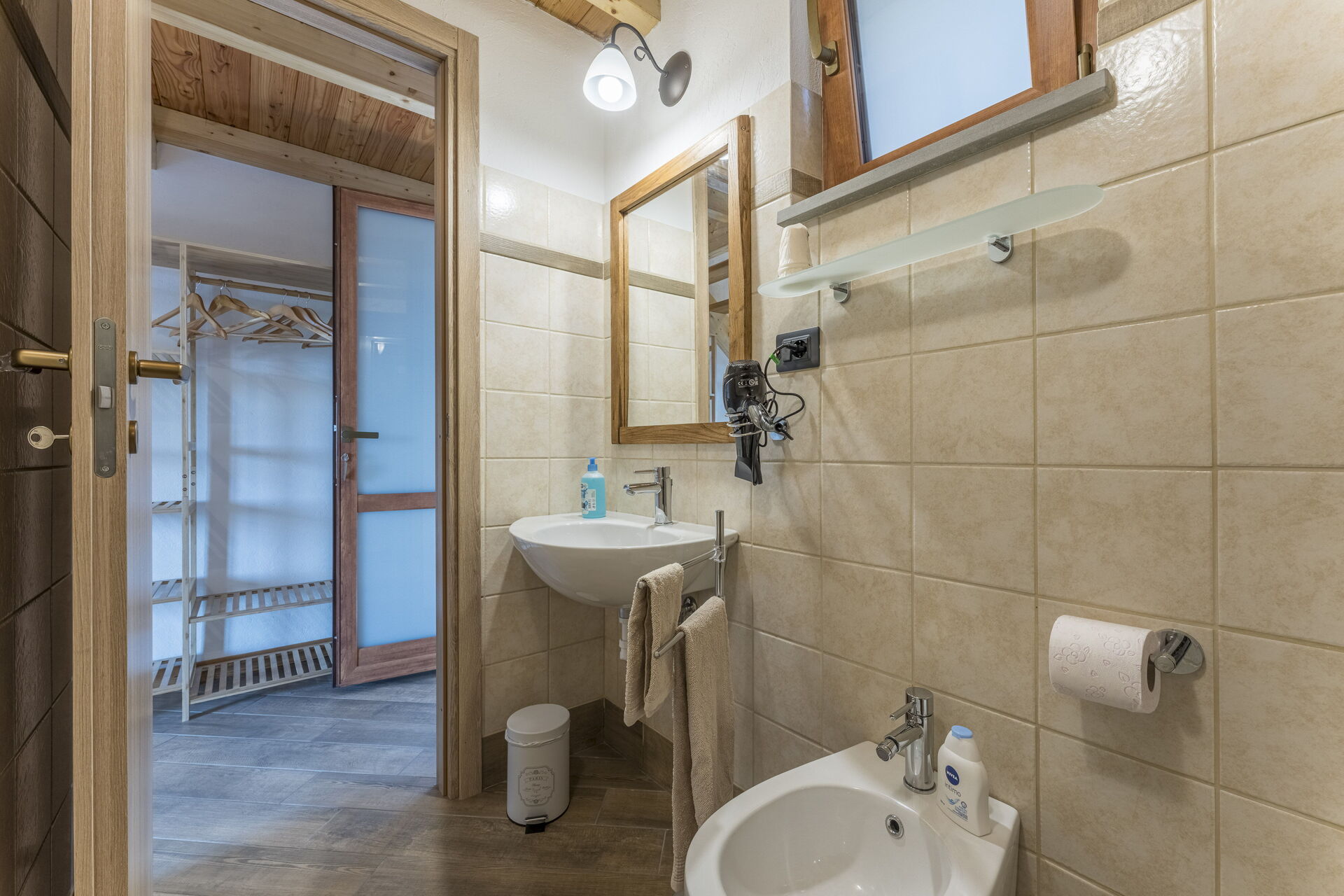 Badkamer: wastafel, toilet , bidet, WIFI internet.