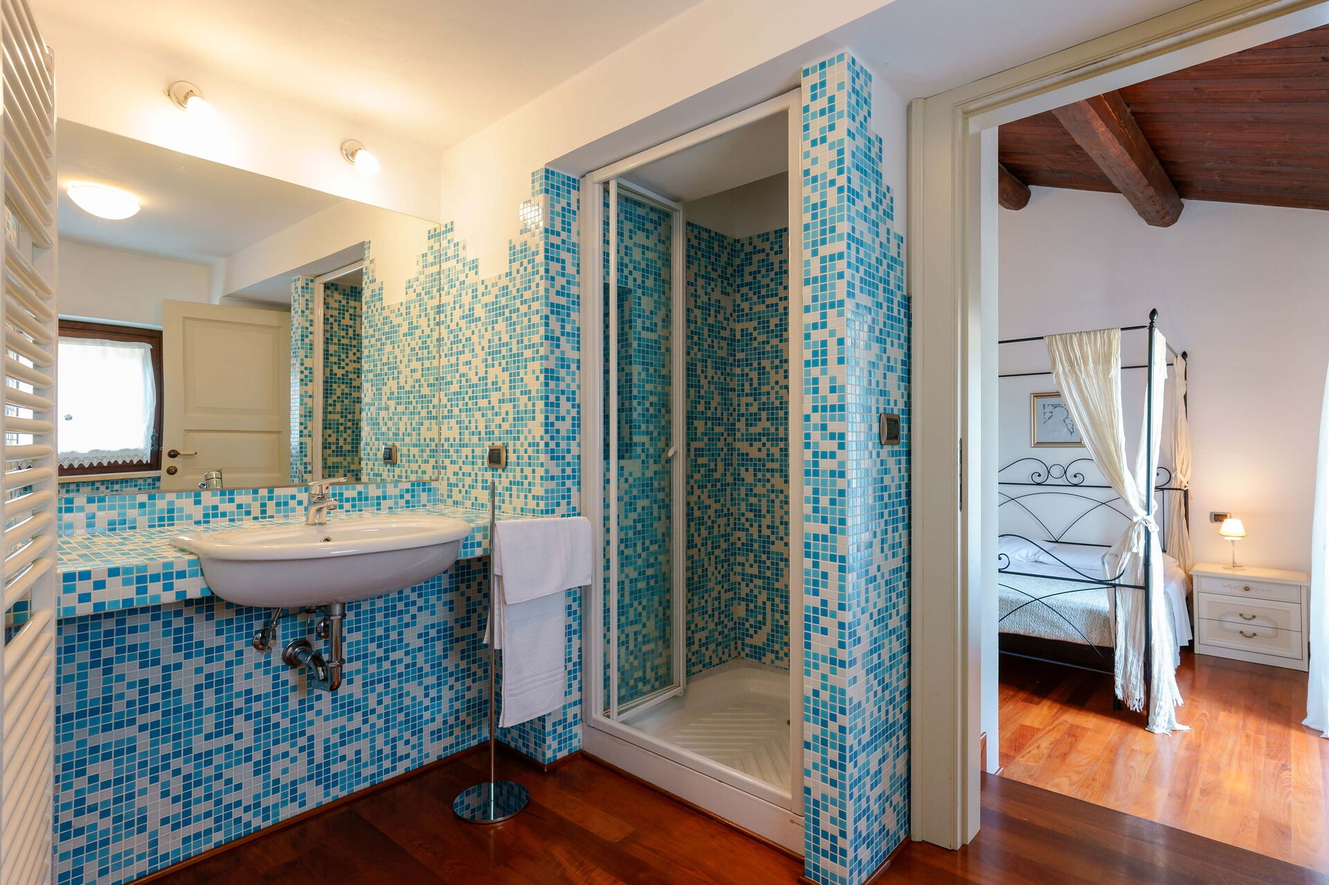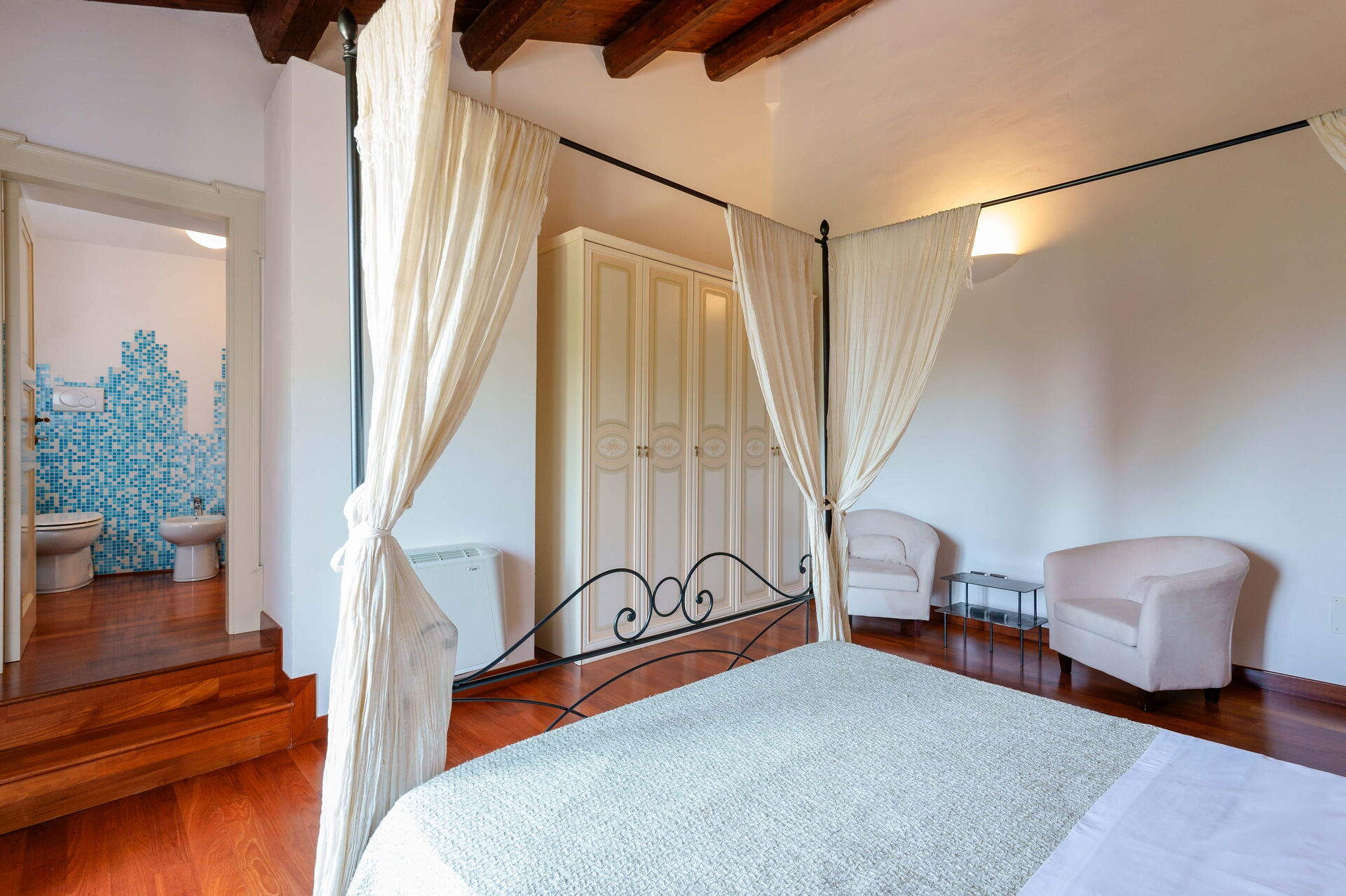 Slaapkamer met badkamer (25 m2): tweepersoonsbed (breedte: 160m, lengte: 200m), WIFI internet, hor, ijskast, wastafel, toilet , bidet, douche, haardroger, badkamer zonder raam, uitgang naar het balkon, uitgang naar het terras.