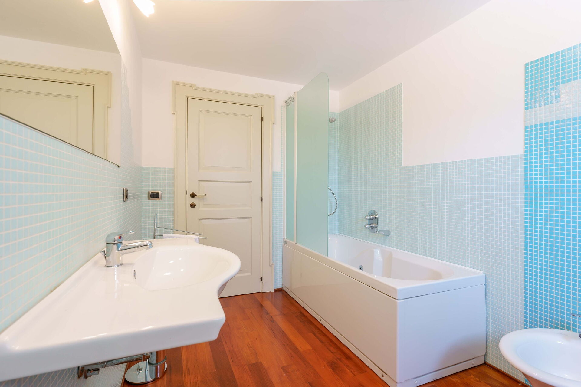 Keuken – woonkamer (100 m2): goed uitgeruste keuken, eettafel, vaatwasser, ijskast, diepvriezer, kookplaat, oven, strijkijzer, italiaans koffiezetapparaat, twee slaapbanken (breedte: 120m, lengte: 185m), WIFI internet, hor, satelliet tv, uitgang naar het balkon, uitgang naar de patio.