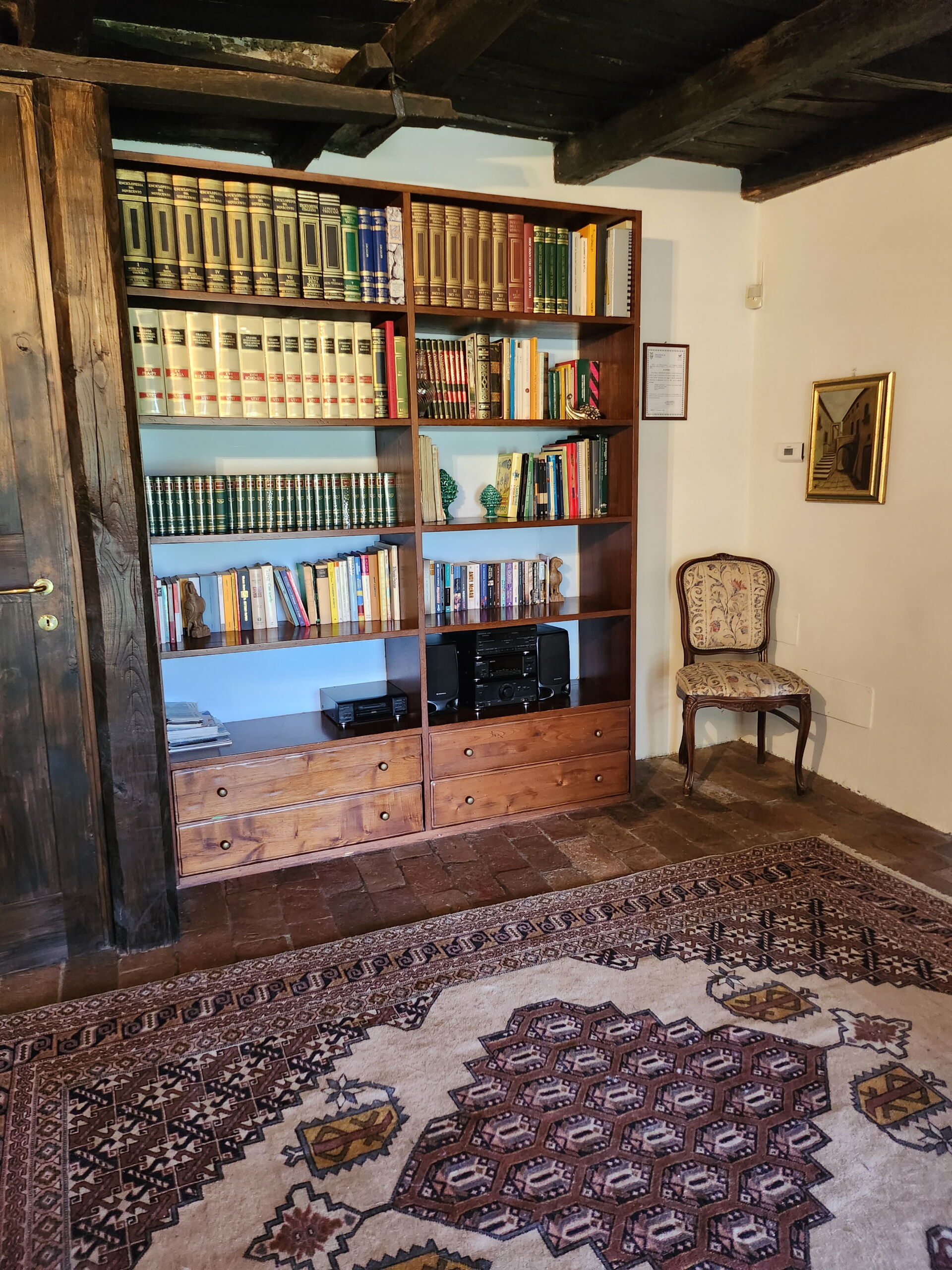 The villa has three floors and is located on the top of a hill 360 meters above sea level, close to the forest and the Vezza River. This elevated position offers an extraordinary panoramic view of the surrounding countryside. In addition, the large plot of 10,000 square meters surrounding the villa is fully fenced, offering an atmosphere of tranquility and privacy.