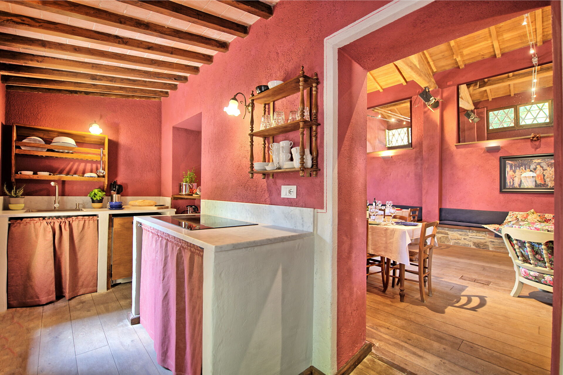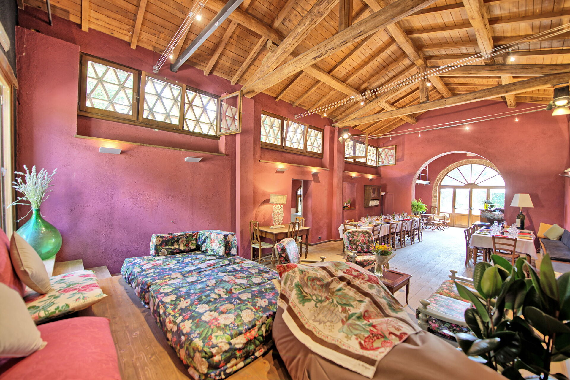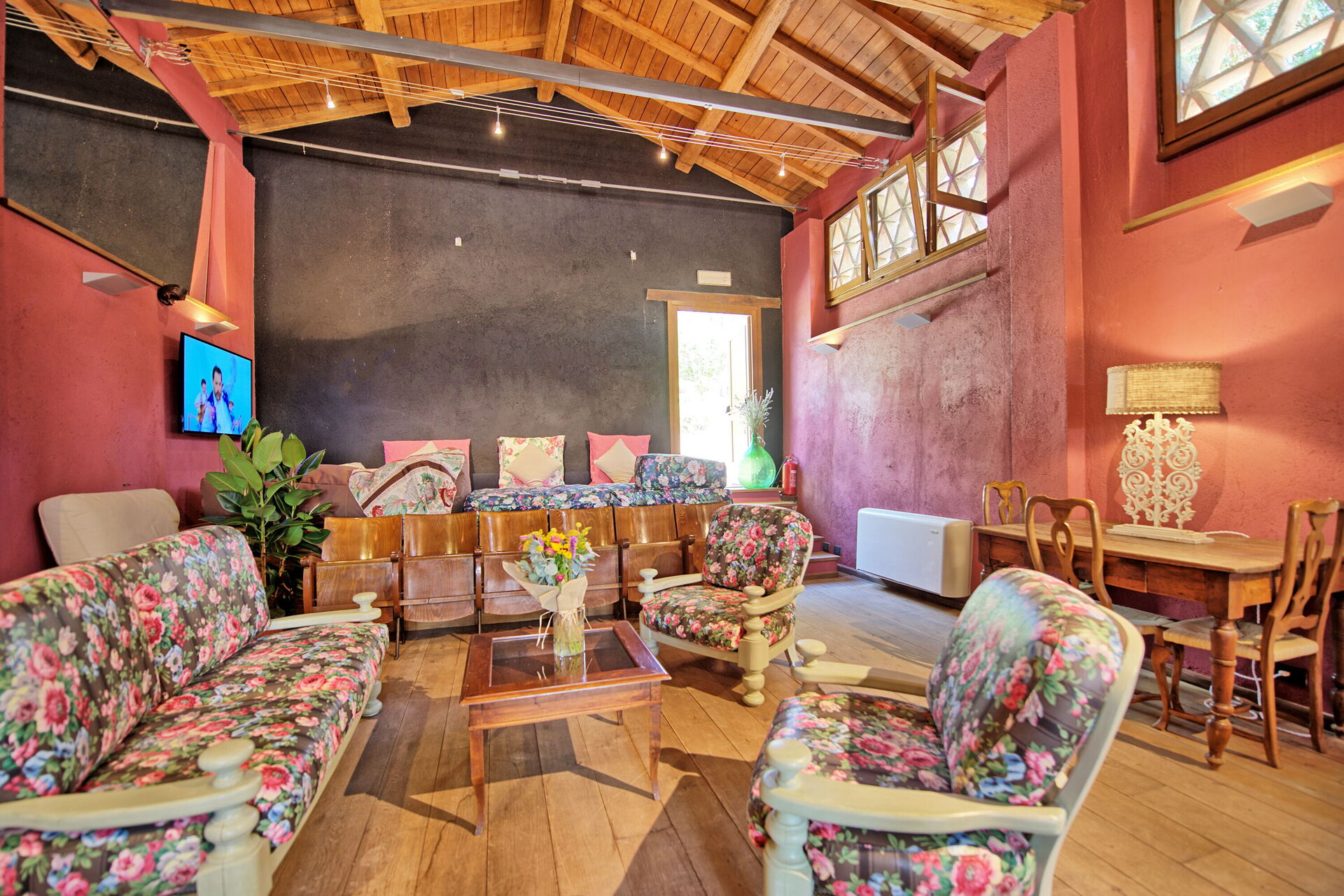 Begane grond (onafhankelijke ingang): grote gemeenschappelijke ruimte geschikt voor alle gasten en bestaande uit een ontspanningsruimte, woonkamer, eethoek, bar, keuken, toilet.