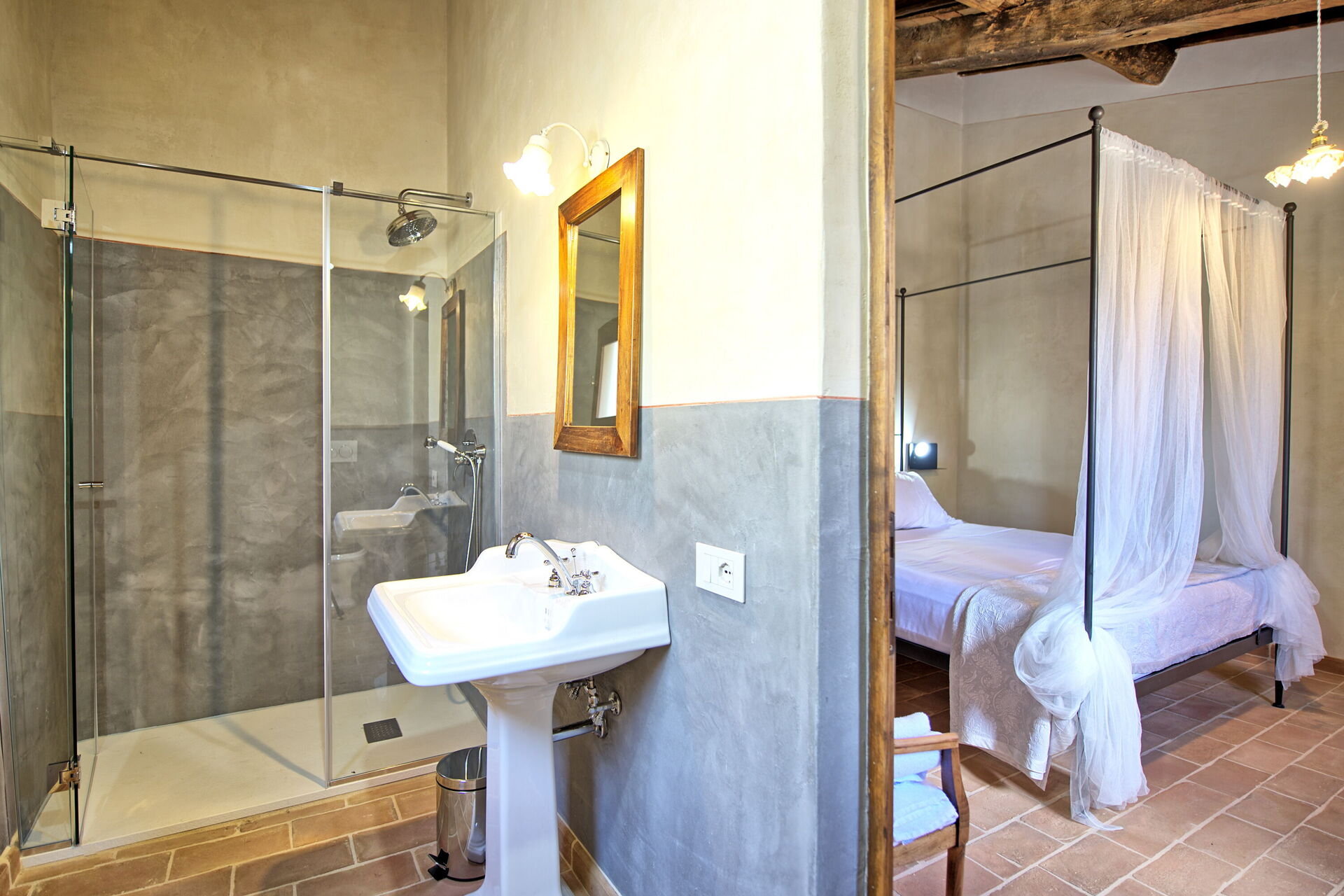 Mezzanine begane grond (onafhankelijke ingang): doorgangskamer met eenpersoonsbed en slaapkamer met tweepersoonsbed en eigen badkamer met douche.