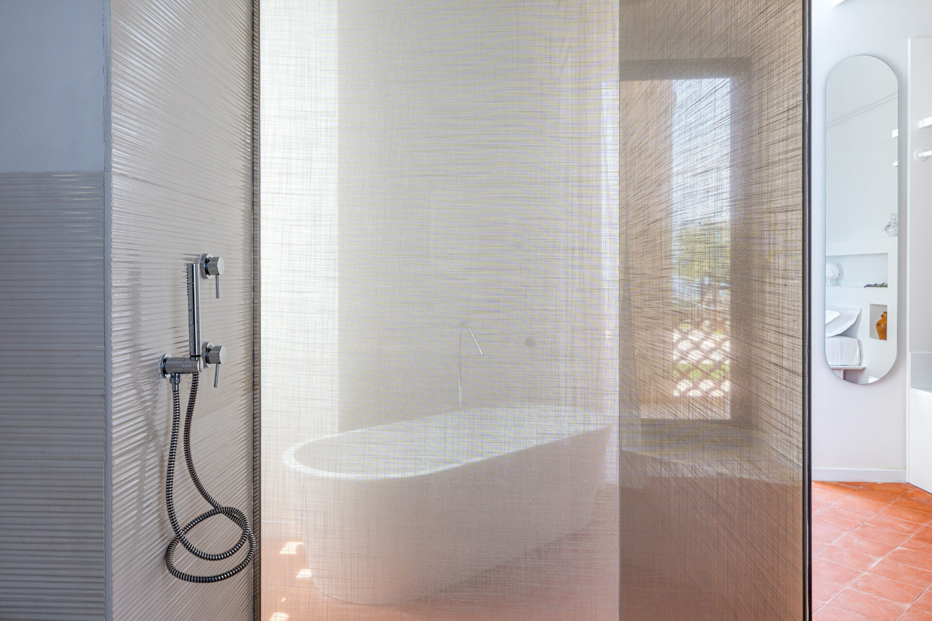 The jacuzzi on the terrace is not only a luxury, but a sensory experience. The relaxing water combines the pleasure of comfort with the grandeur of the view, creating an atmosphere that invites relaxation and well-being.