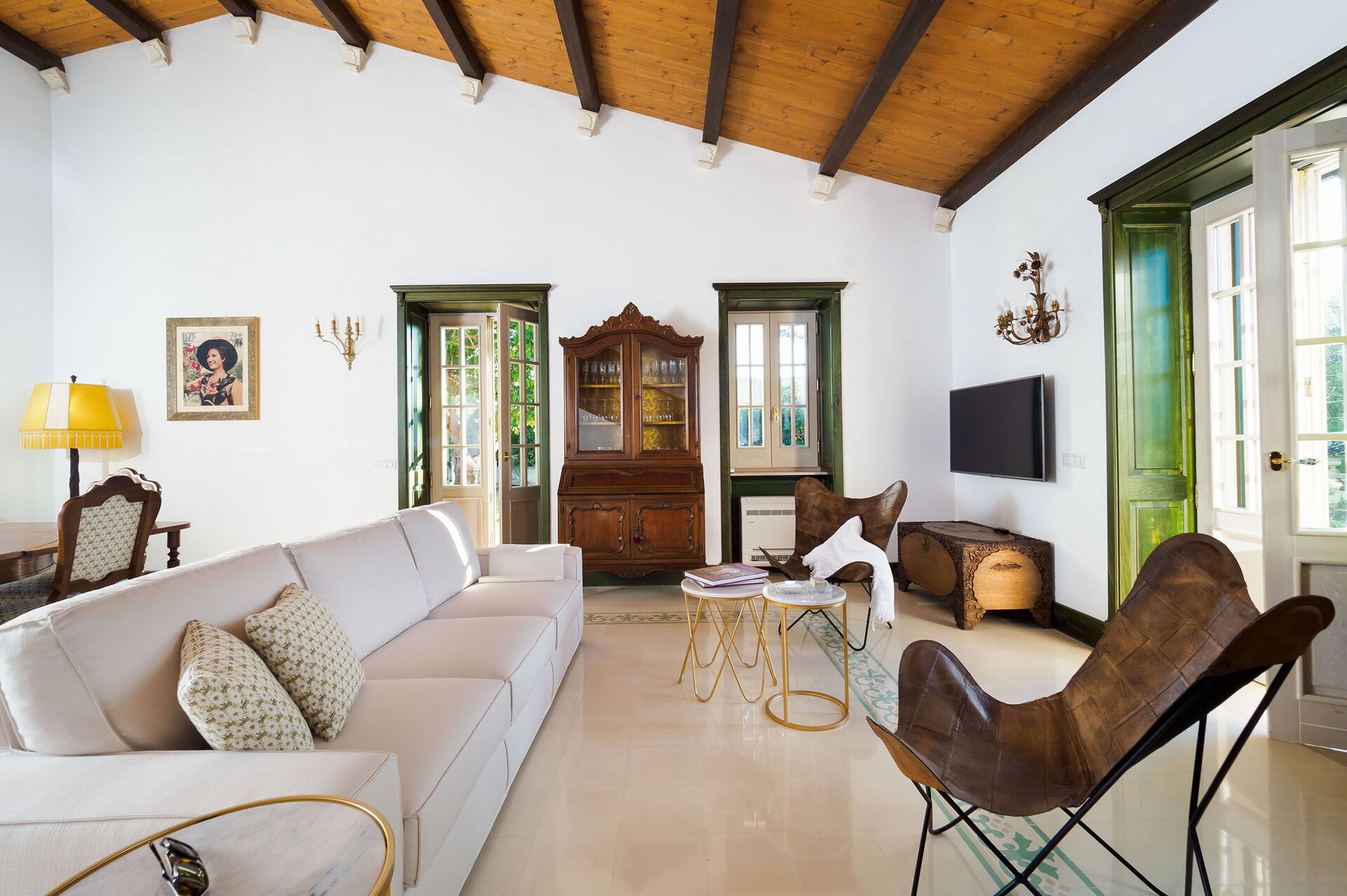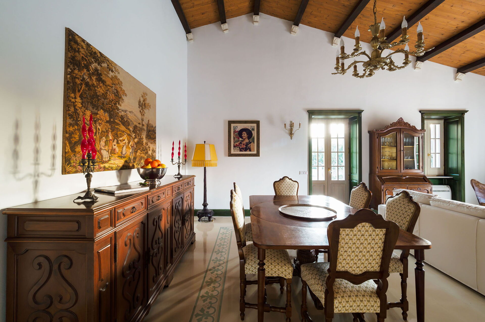 Woonkamer: bank (personen: 3), twee fauteuils, eettafel (personen: 6), WIFI internet, internet, airconditioning, tv, uitgang naar het terras.