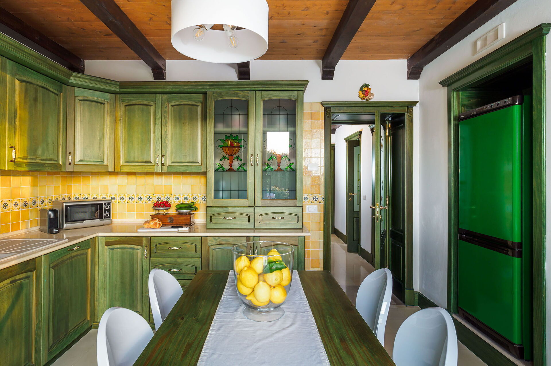 Zodra u aankomt wordt u welkom geheten door de eigenaar of beheerder en vindt u een mooie, schone en goed onderhouden woning perfect voor een ontspannen vakantie in Sicilië. Na een hectische dag musea bezoeken kunt u de tijd doorbrengen met vrienden en familie bij het zwembad, en genieten van een glaasje wijn - een perfecte manier om te ontspannen aan het einde van de dag. Eten met vrienden en familie is een grote onderdeel van de Italiaanse cultuur. Maak gebruik van de goed uitgeruste keuken om maaltijden te bereiden met lokale producten terwijl u op vakantie bent. De keuken biedt o.a. een koffiezetapparaat, magnetron oven, broodrooster, fornuis en ijskast, en natuurlijk ook voldoende servies en bestek voor minstens zes personen.