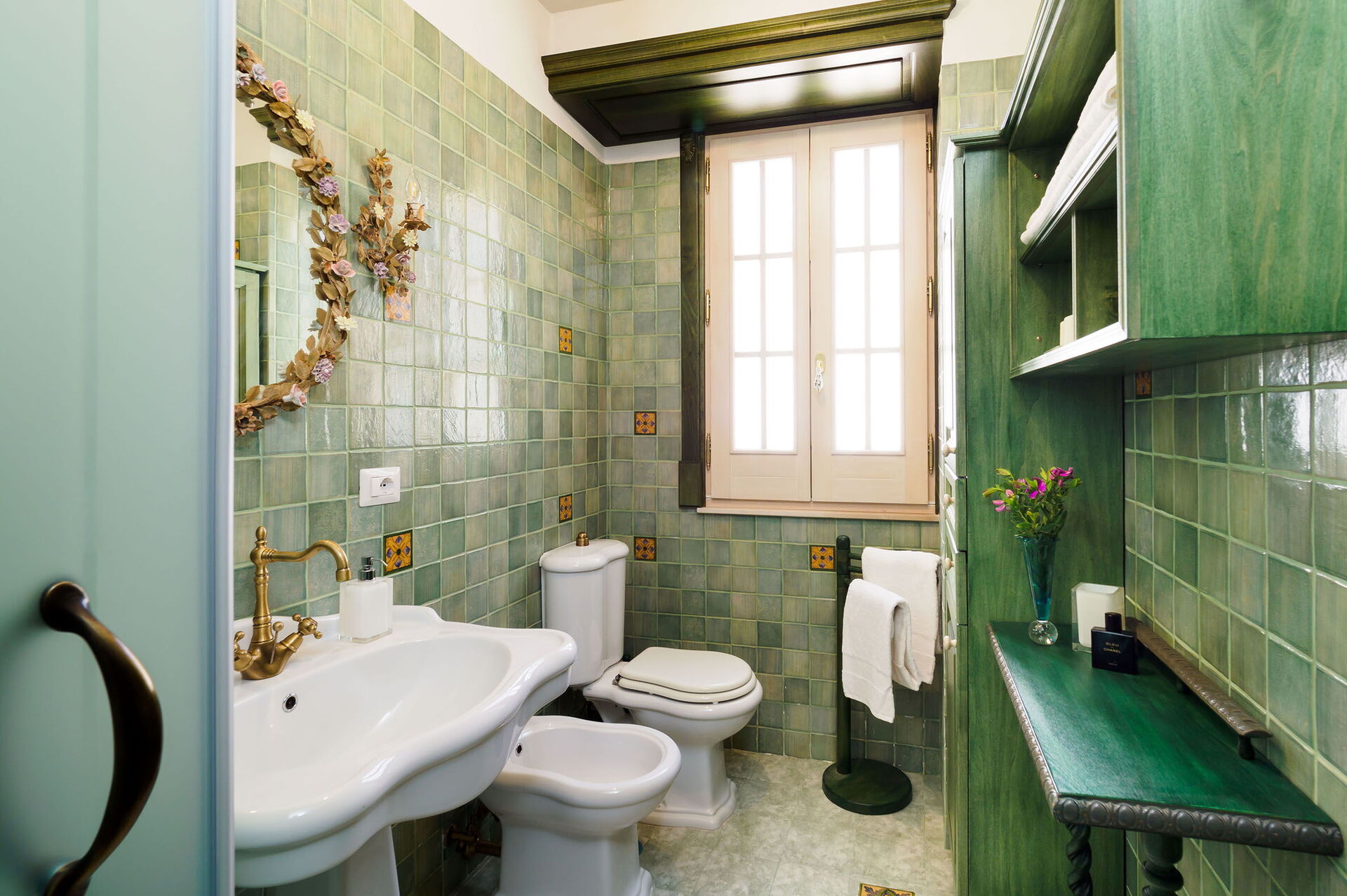 Badkamer: wastafel, toilet , bidet, douche, WIFI internet, internet.