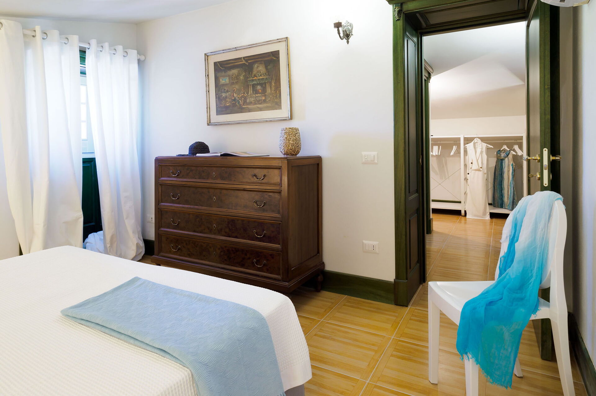 Keuken: goed uitgeruste keuken, vaatwasser, ijskast, diepvriezer, magnetron, kookplaat, oven, broodrooster, strijkijzer, italiaans koffiezetapparaat, wasmachine, WIFI internet, internet, airconditioning, kinderstoel, rookmelder, uitgang naar de patio.
