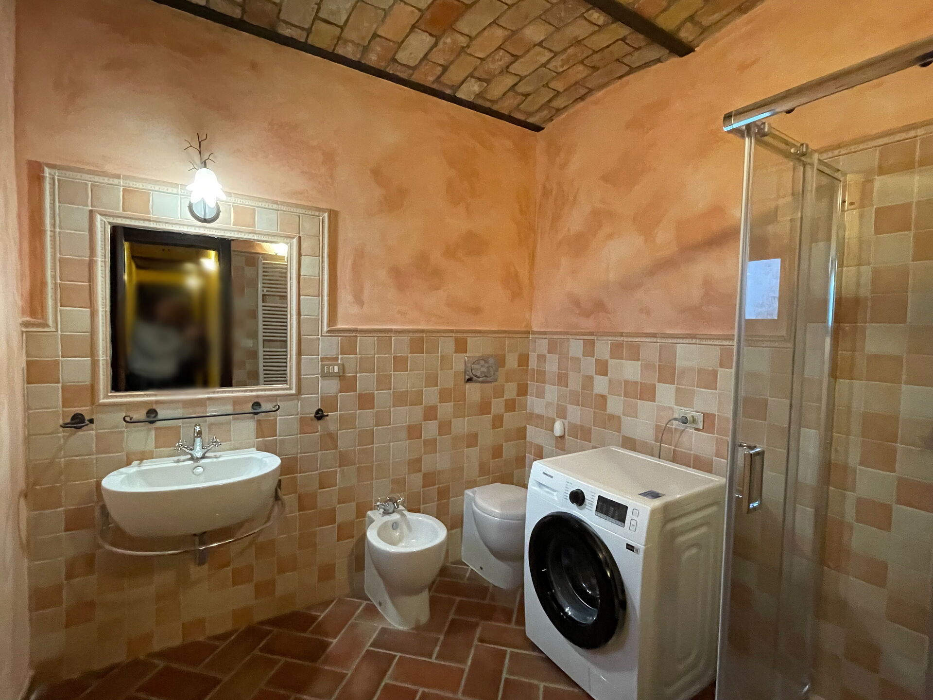 Badkamer (10 m2): wastafel, toilet , bidet, douche, wasmachine.