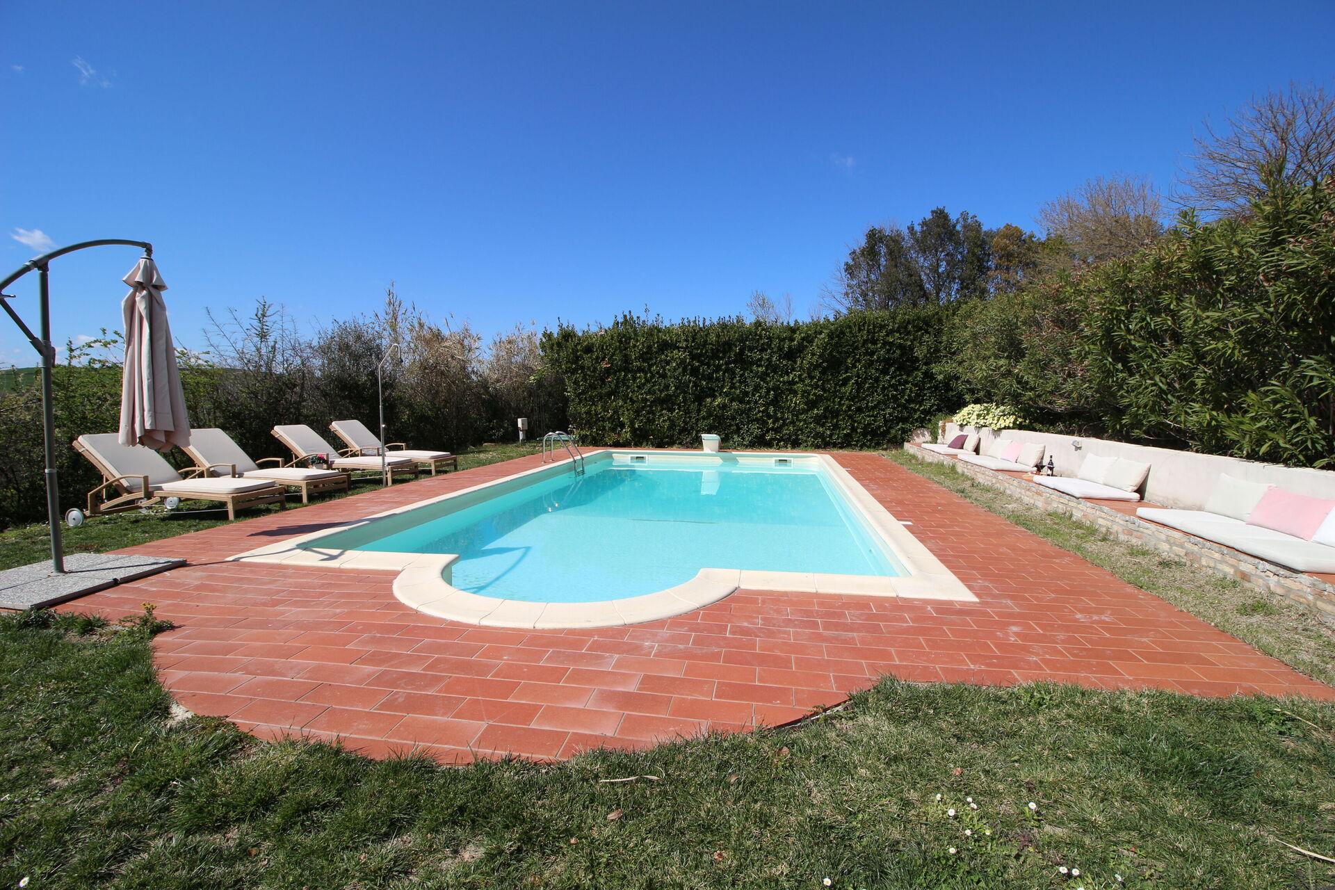 Bij aankomst vindt u een prachtige, schone en goed onderhouden woning met uitzicht over de bergen en de heuvels perfect voor een geweldige vakantie in Marche. Na een drukke dag musea bezoeken kunt u de tijd doorbrengen met vrienden en familie bij het zwembad, en genieten van een glaasje wijn - een perfecte manier om te uitrusten aan het einde van de dag. Buiten zijn er ook een barbecue en patio. Als u van koken houdt is er een goed uitgeruste keuken met o.a. koffiezetapparaat, magnetron oven, broodrooster, fornuis en ijskast en natuurlijk voldoende servies en bestek voor tot tien personen. Als u liever buiten eet is er een veranda met tuinmebilair waar u van het weer kan genieten terwijl u buiten eet.