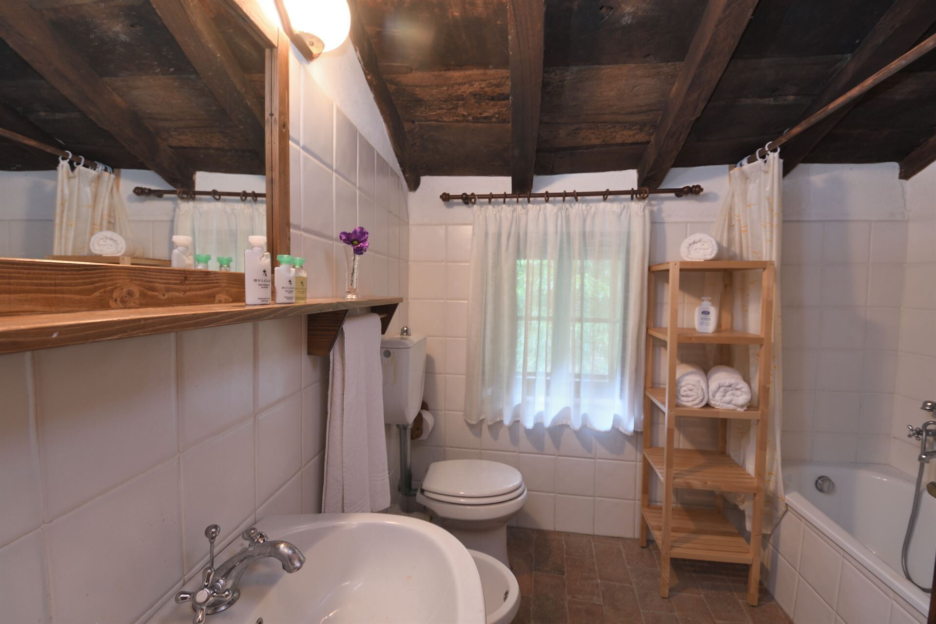 Badkamer: wastafel, toilet , bidet, bad.
