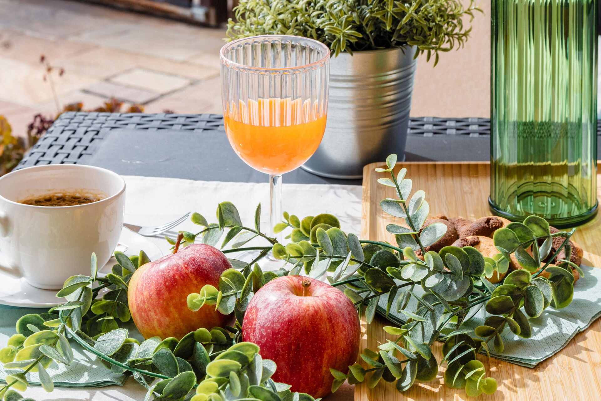 Tuin: dineren in de buitenlucht, tuinmeubilair, omheind grondstuk.