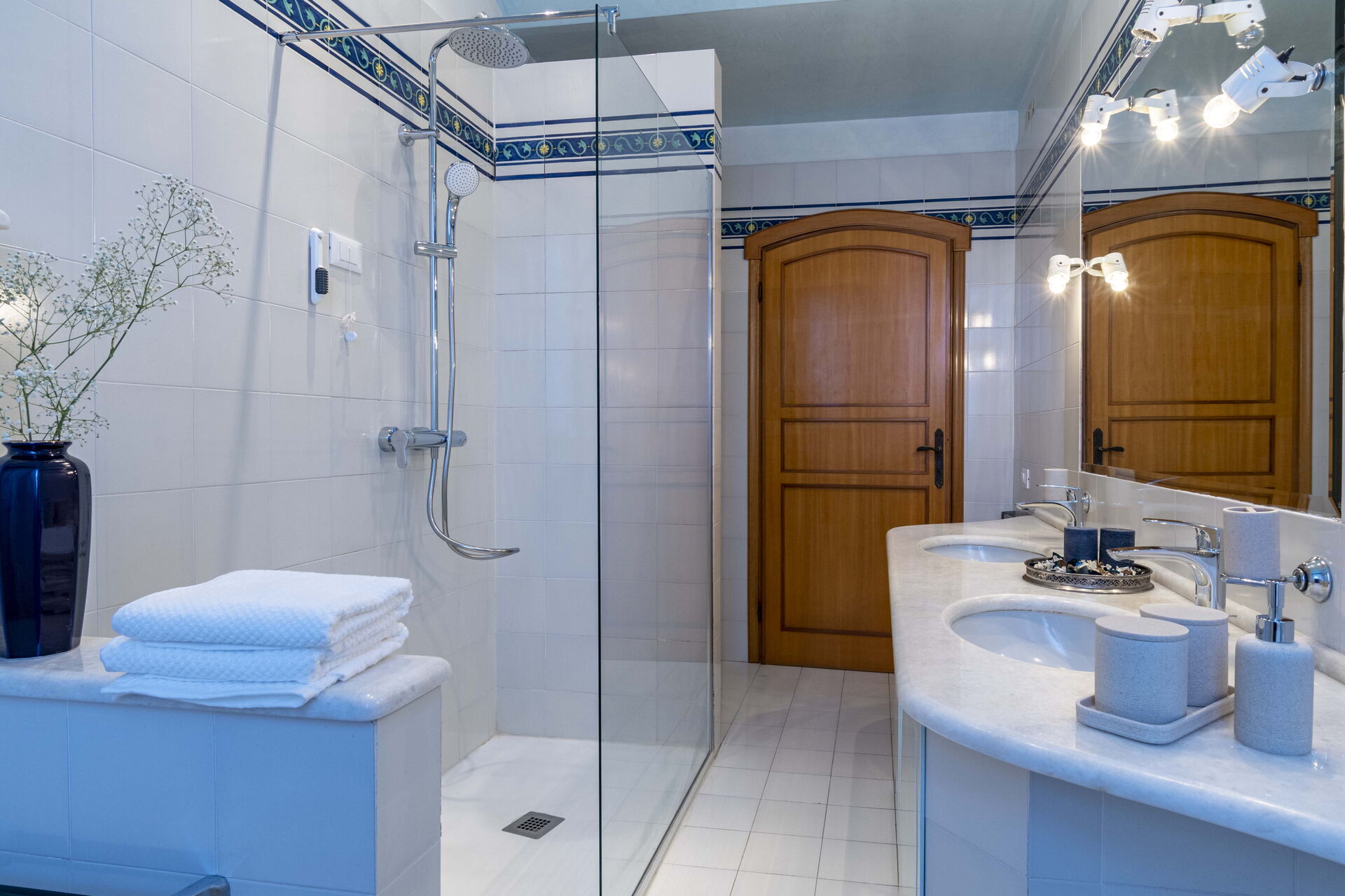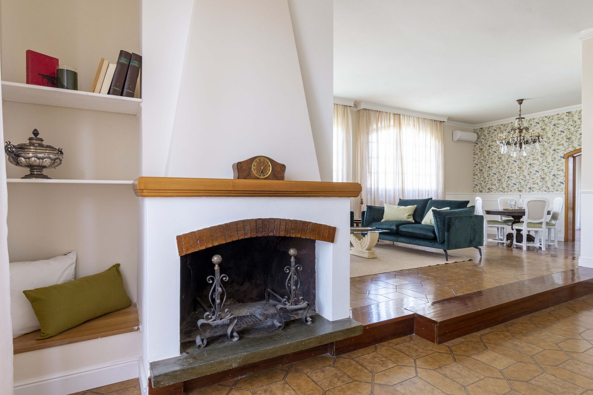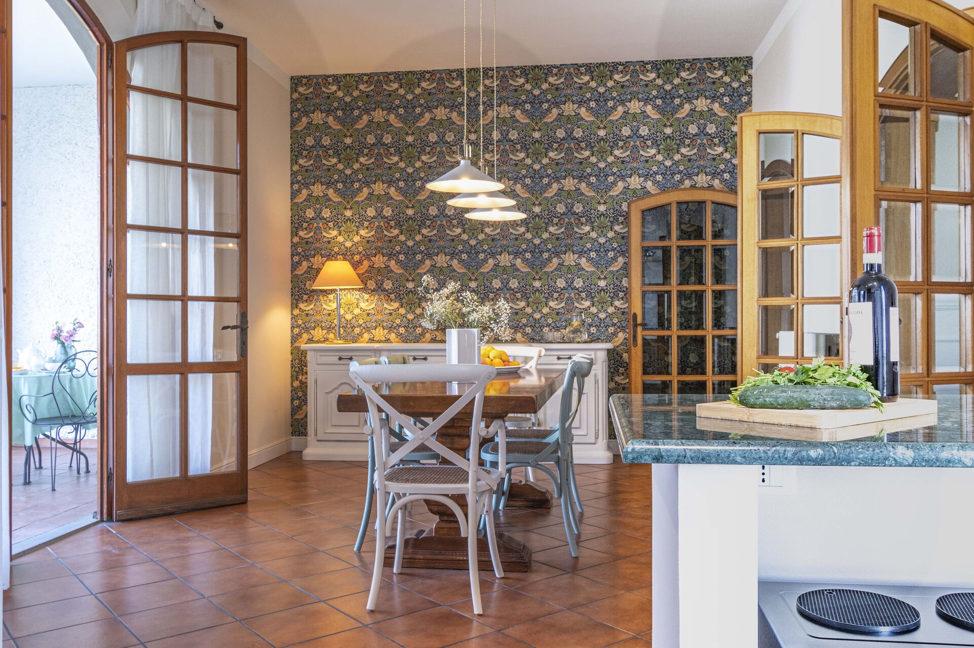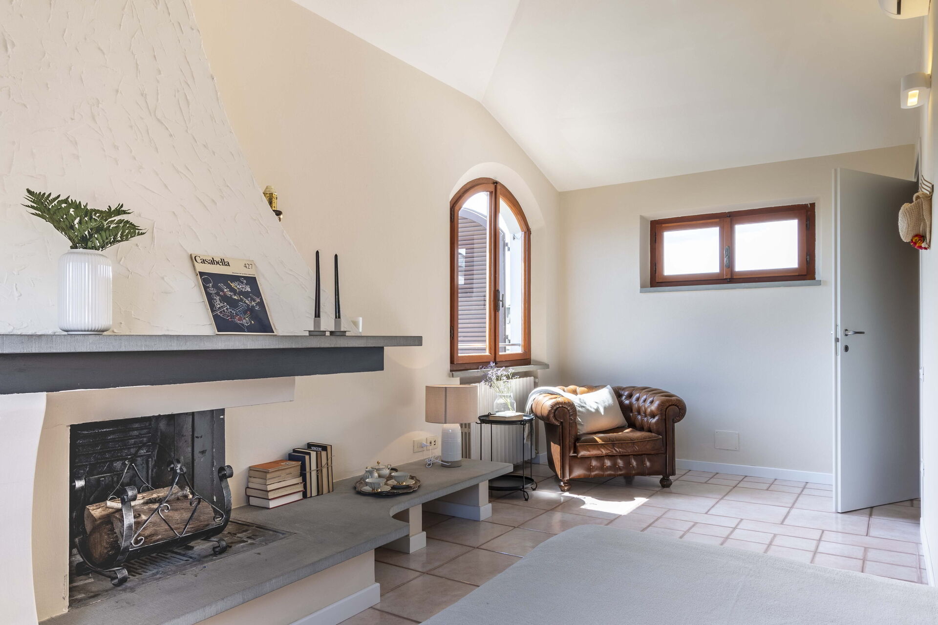 Keuken – woonkamer: goed uitgeruste keuken, eettafel, vaatwasser, ijskast, diepvriezer, kookplaat, oven, italiaans koffiezetapparaat, bank, fauteuil, open haard, WIFI internet, airconditioning, satelliet tv.