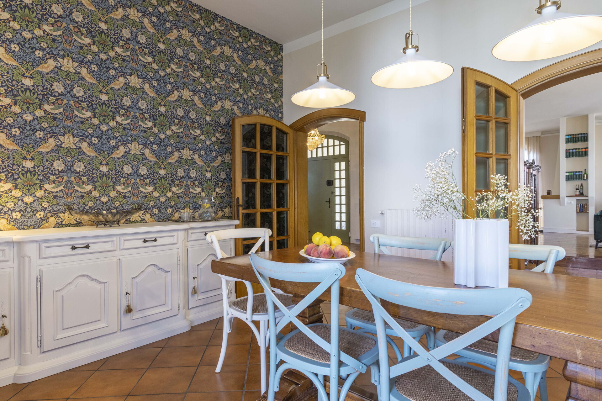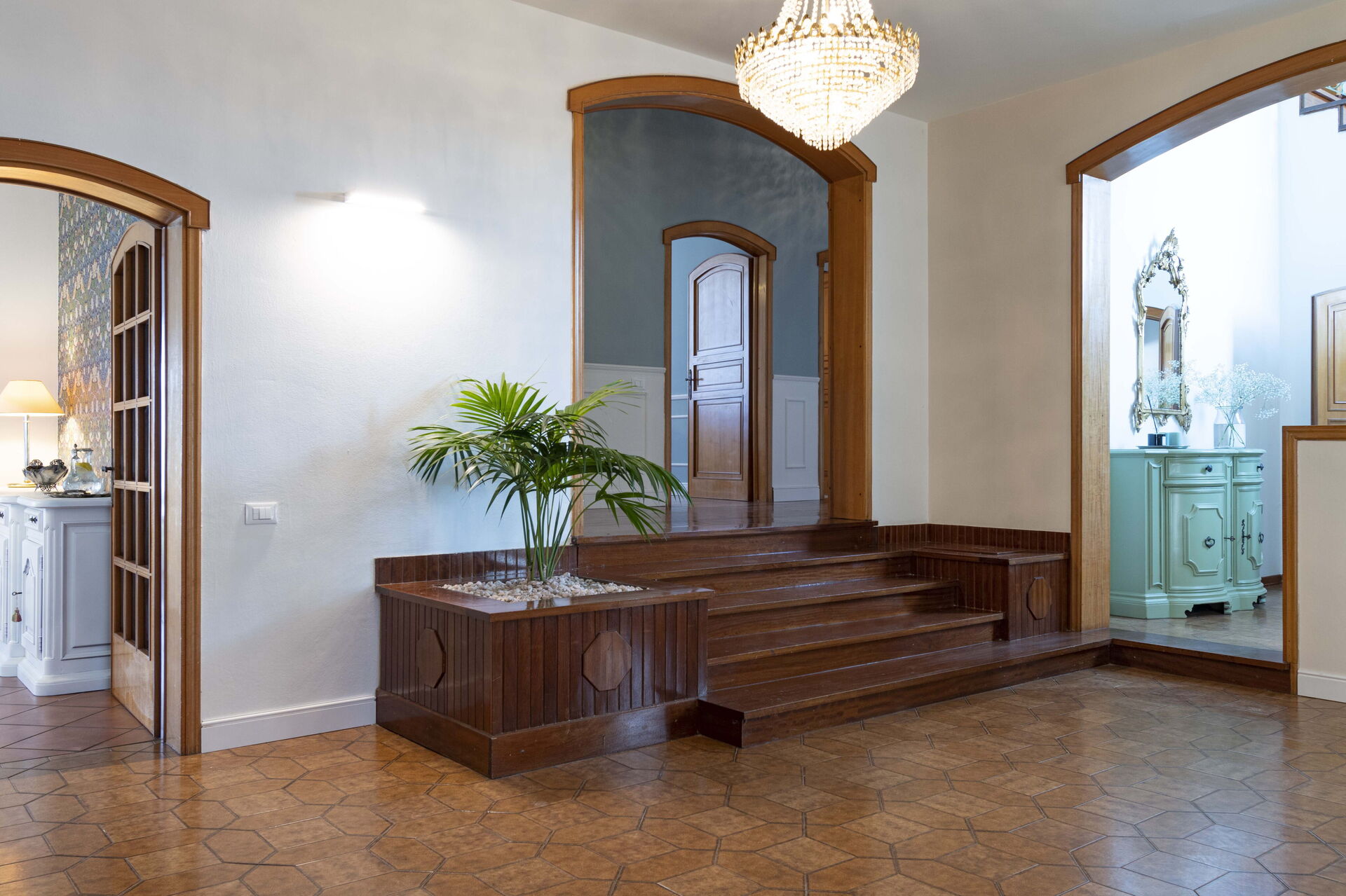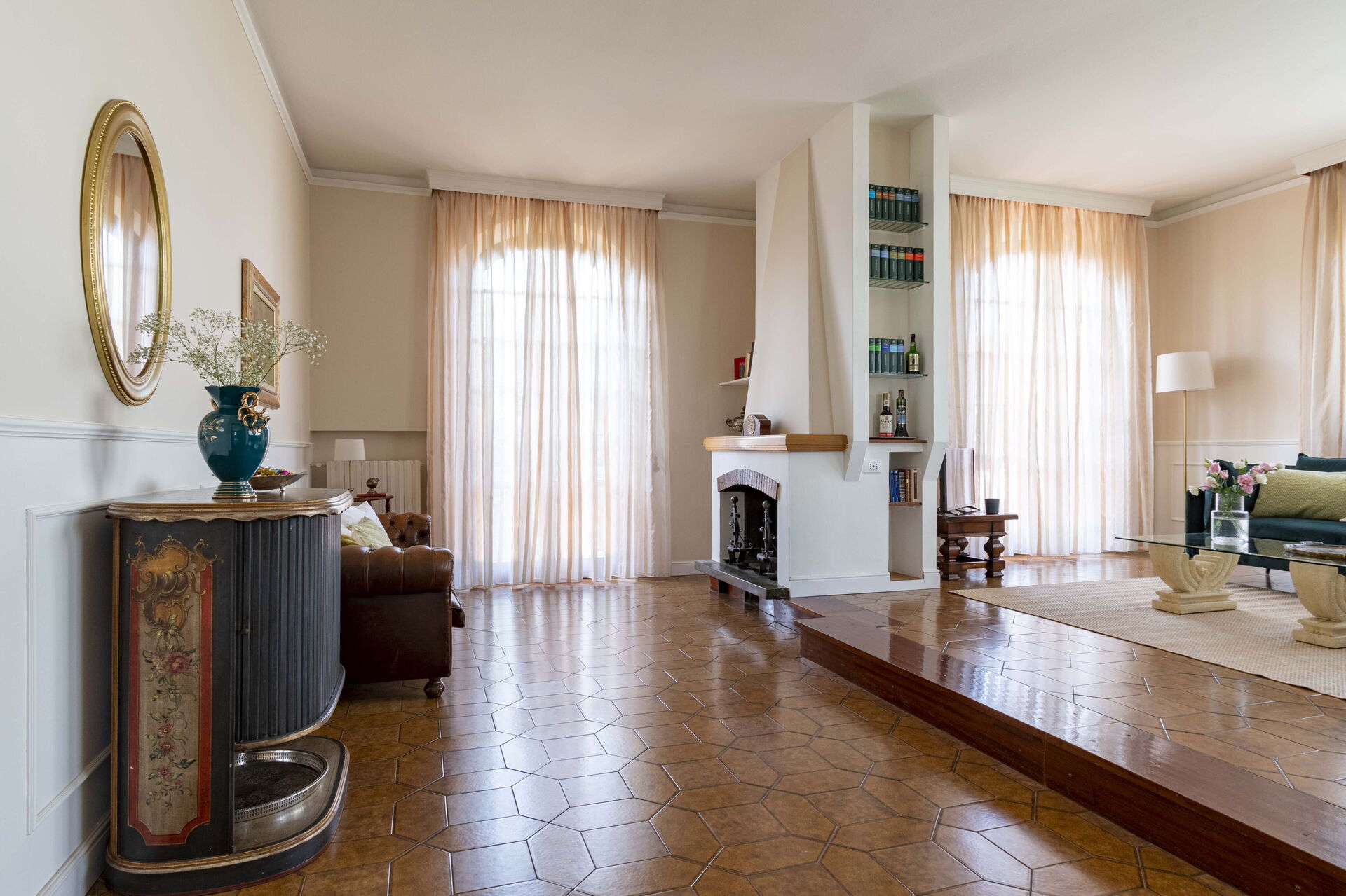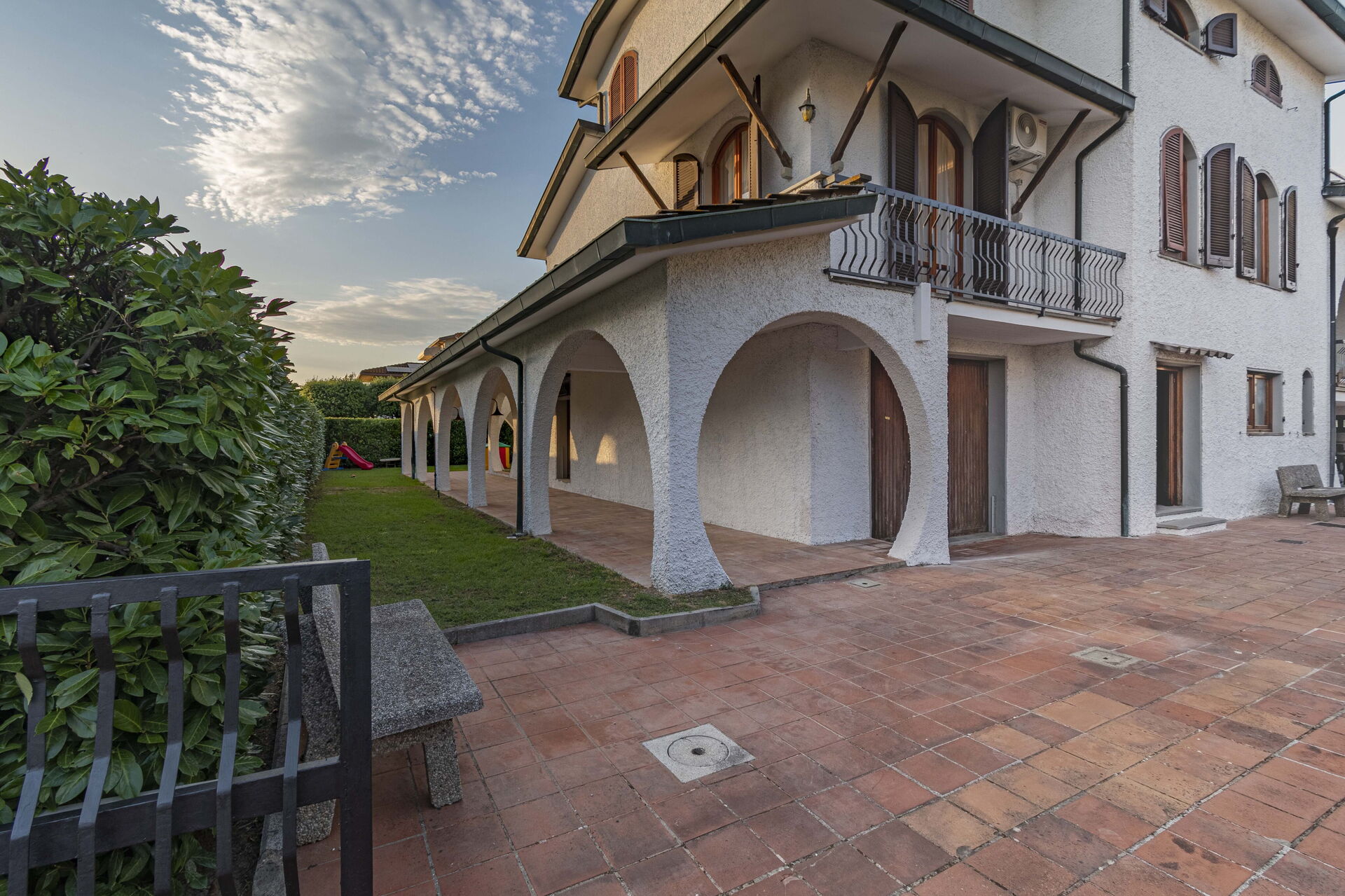 Keuken – woonkamer: goed uitgeruste keuken, eettafel, vaatwasser, ijskast, diepvriezer, kookplaat, oven, italiaans koffiezetapparaat, bank, fauteuil, open haard, WIFI internet, airconditioning, satelliet tv.
