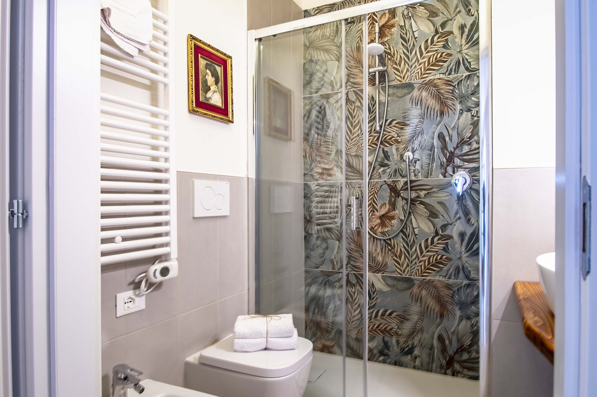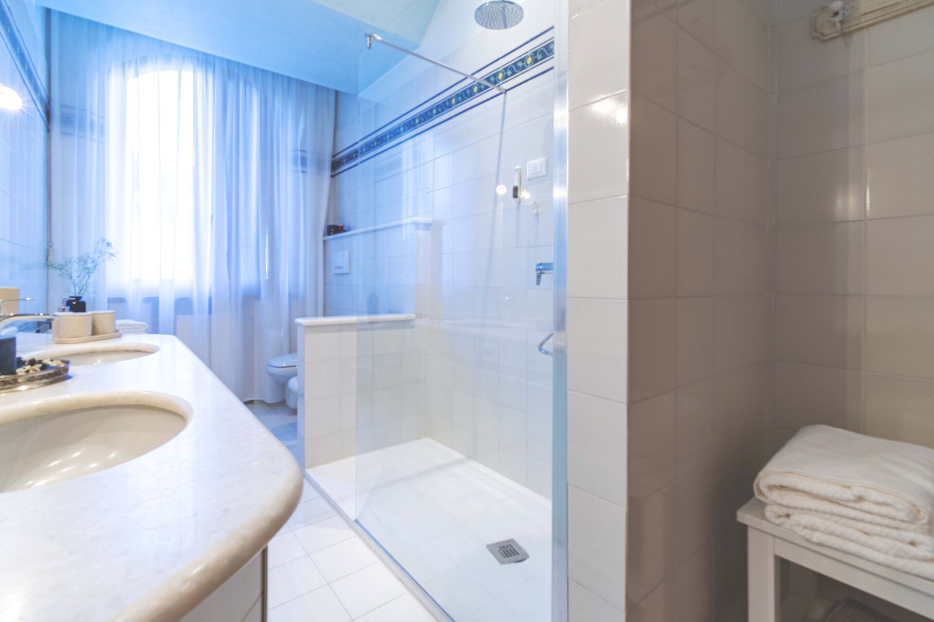 Badkamer: wastafel, toilet , bidet, douche, wasmachine, WIFI internet.