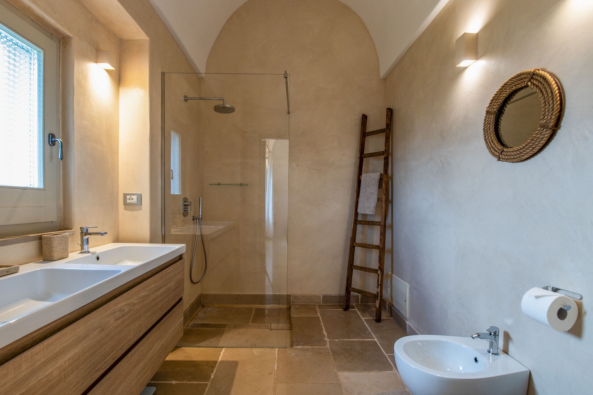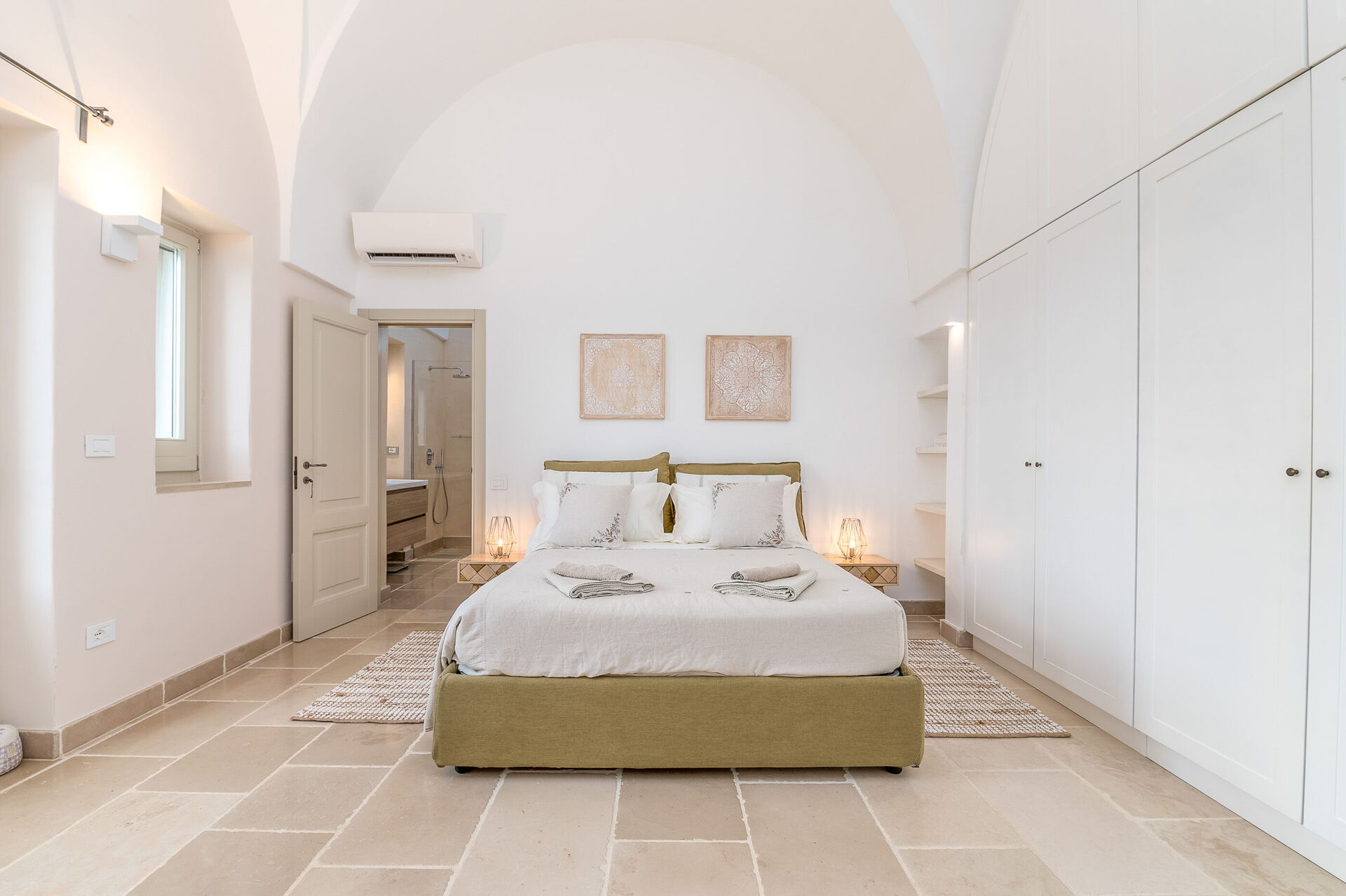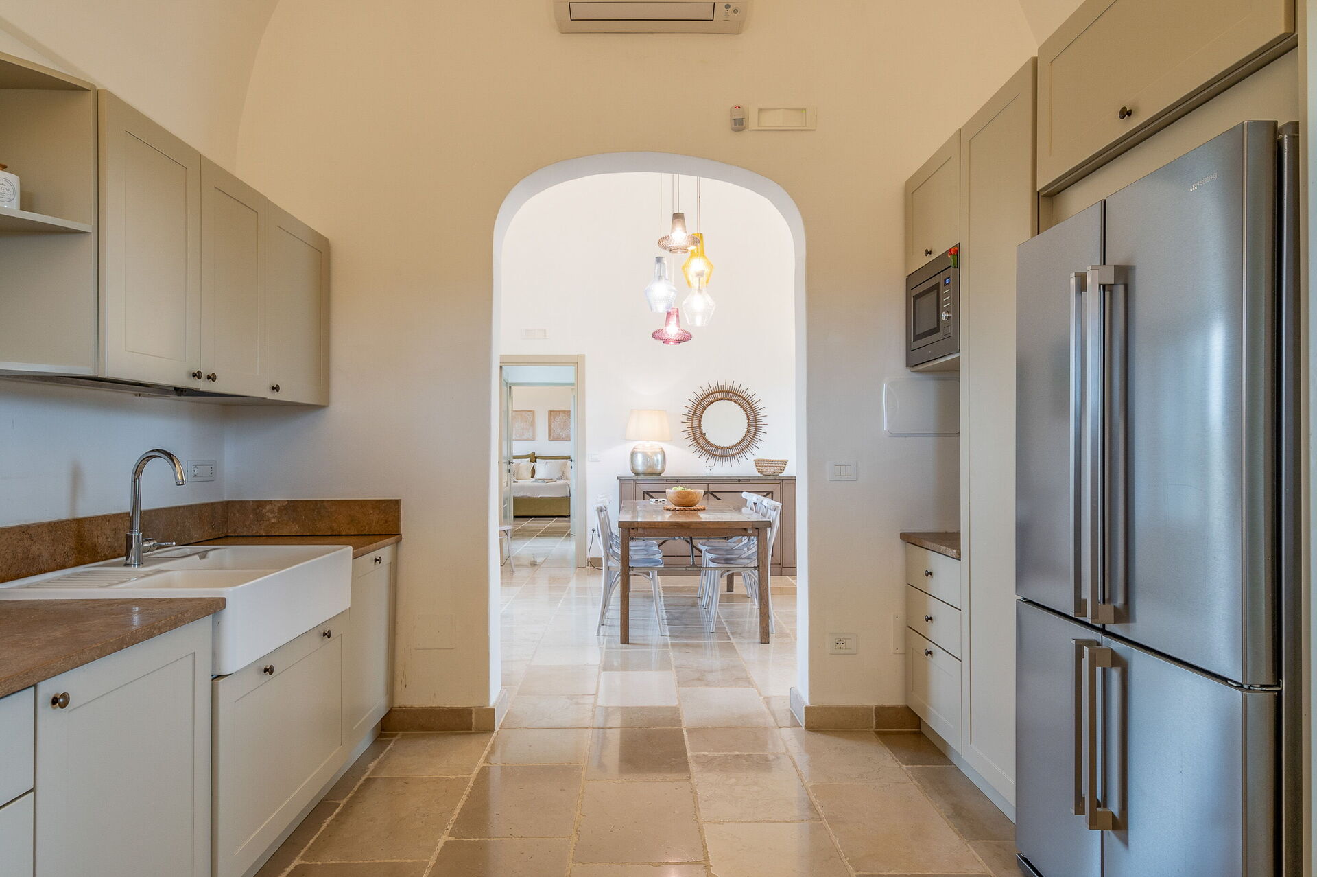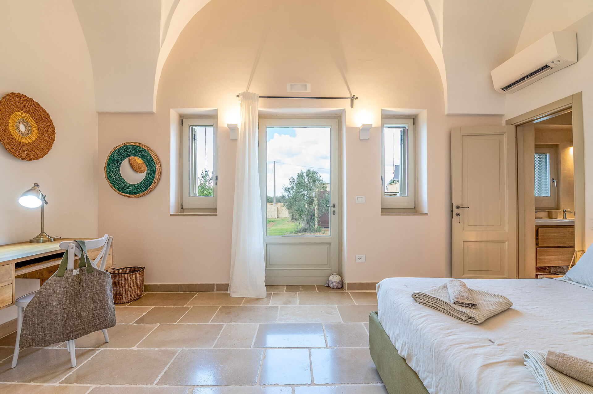 This lovely "Masseria" style villa spreads across a single ground floor, featuring charming vaulted ceilings and a cozy fireplace. You can enjoy year-round comfort with the option of underfloor heating (available upon request for an added cost) and air conditioning.
