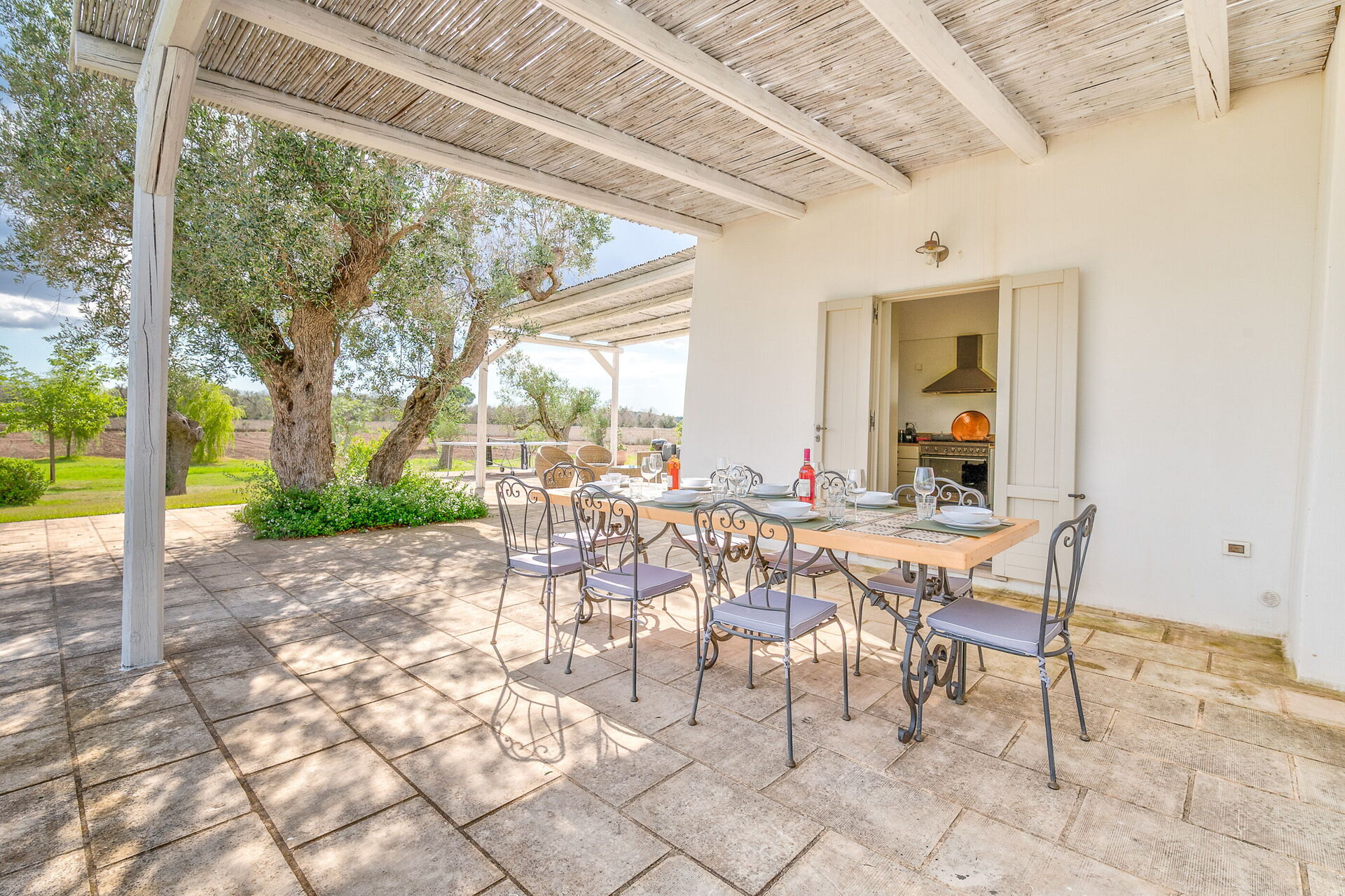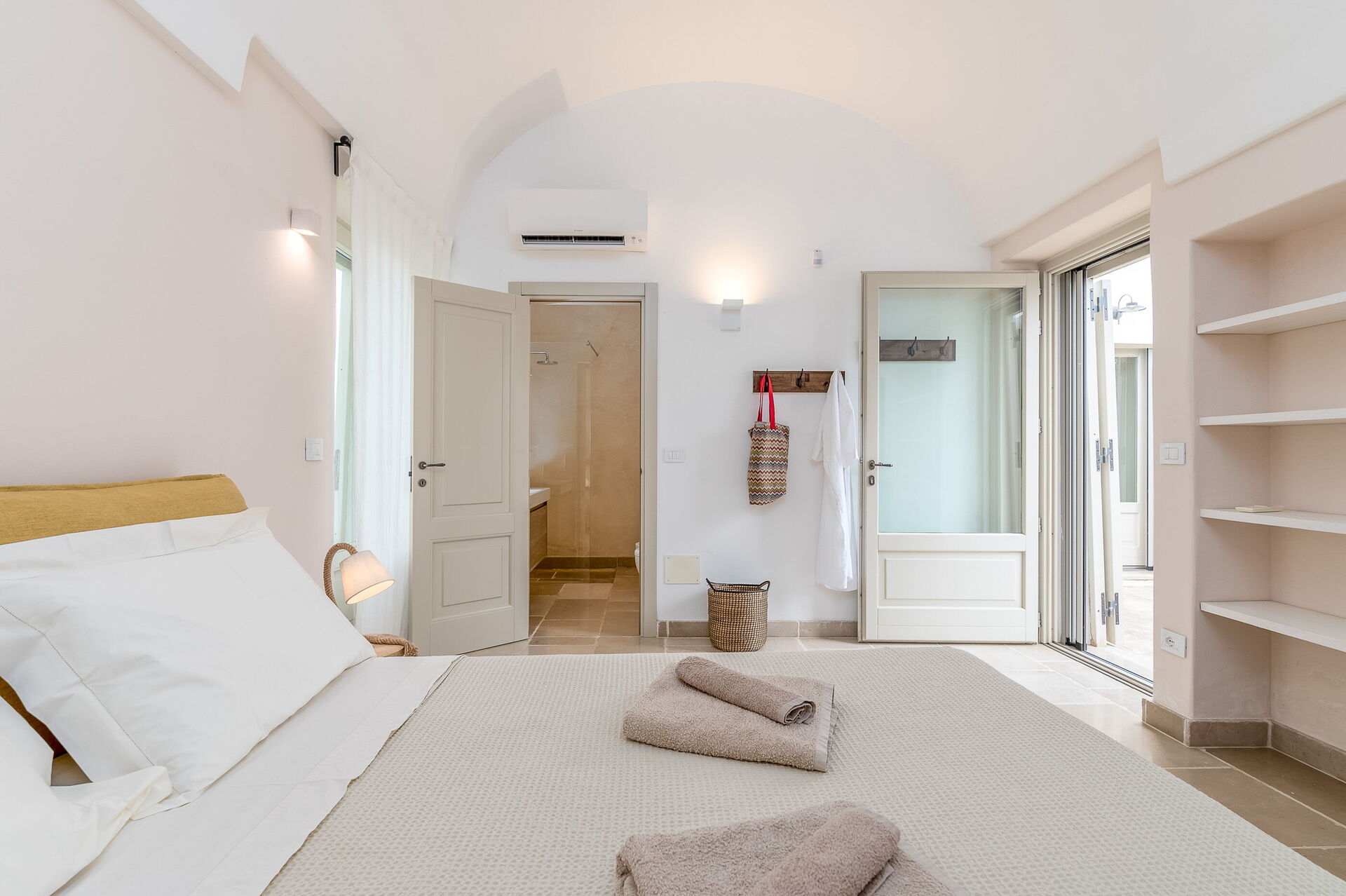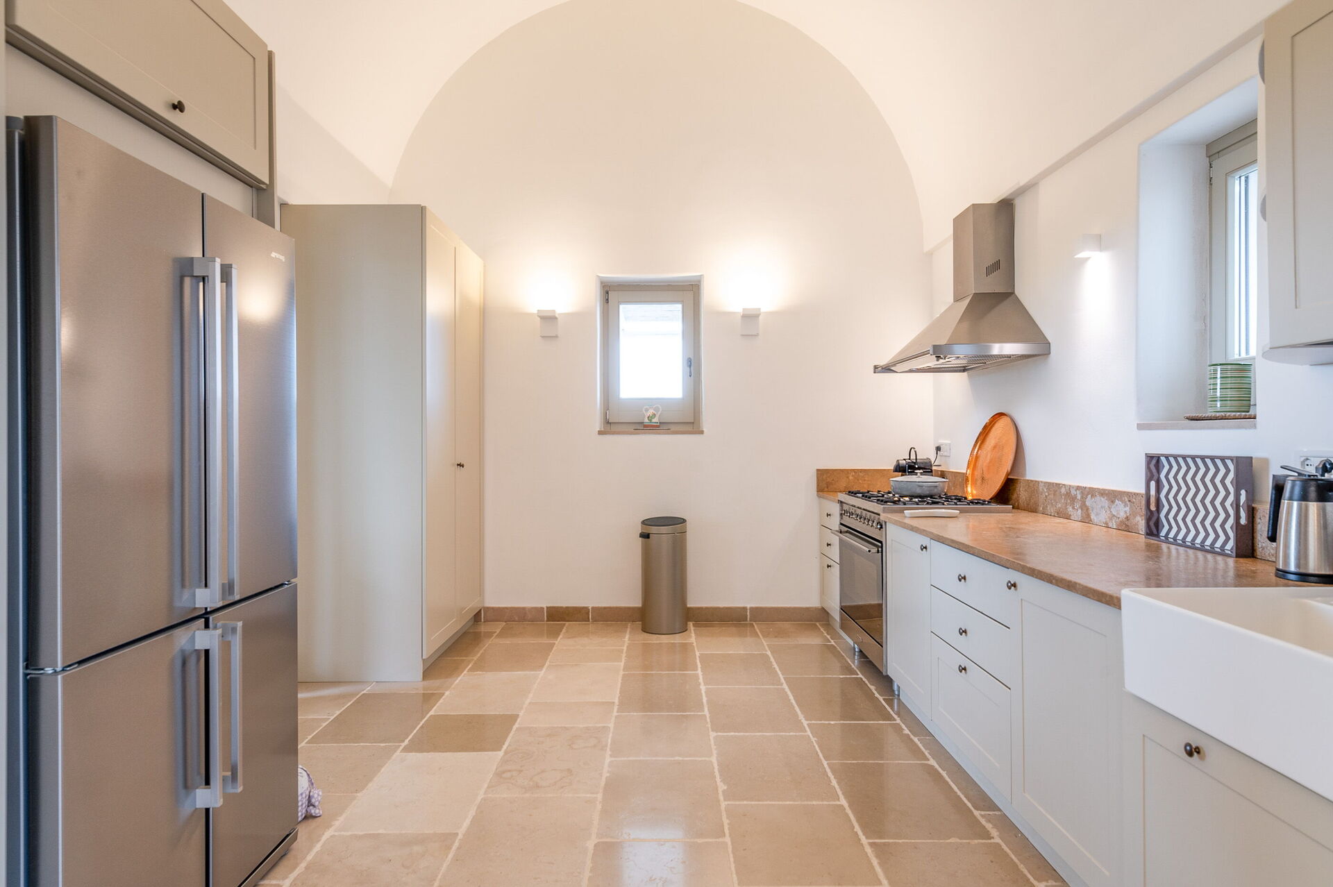 This lovely "Masseria" style villa spreads across a single ground floor, featuring charming vaulted ceilings and a cozy fireplace. You can enjoy year-round comfort with the option of underfloor heating (available upon request for an added cost) and air conditioning.