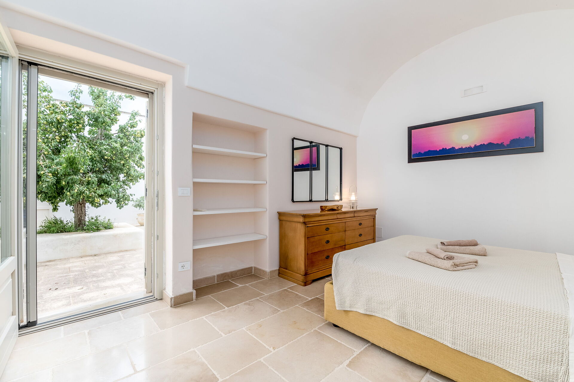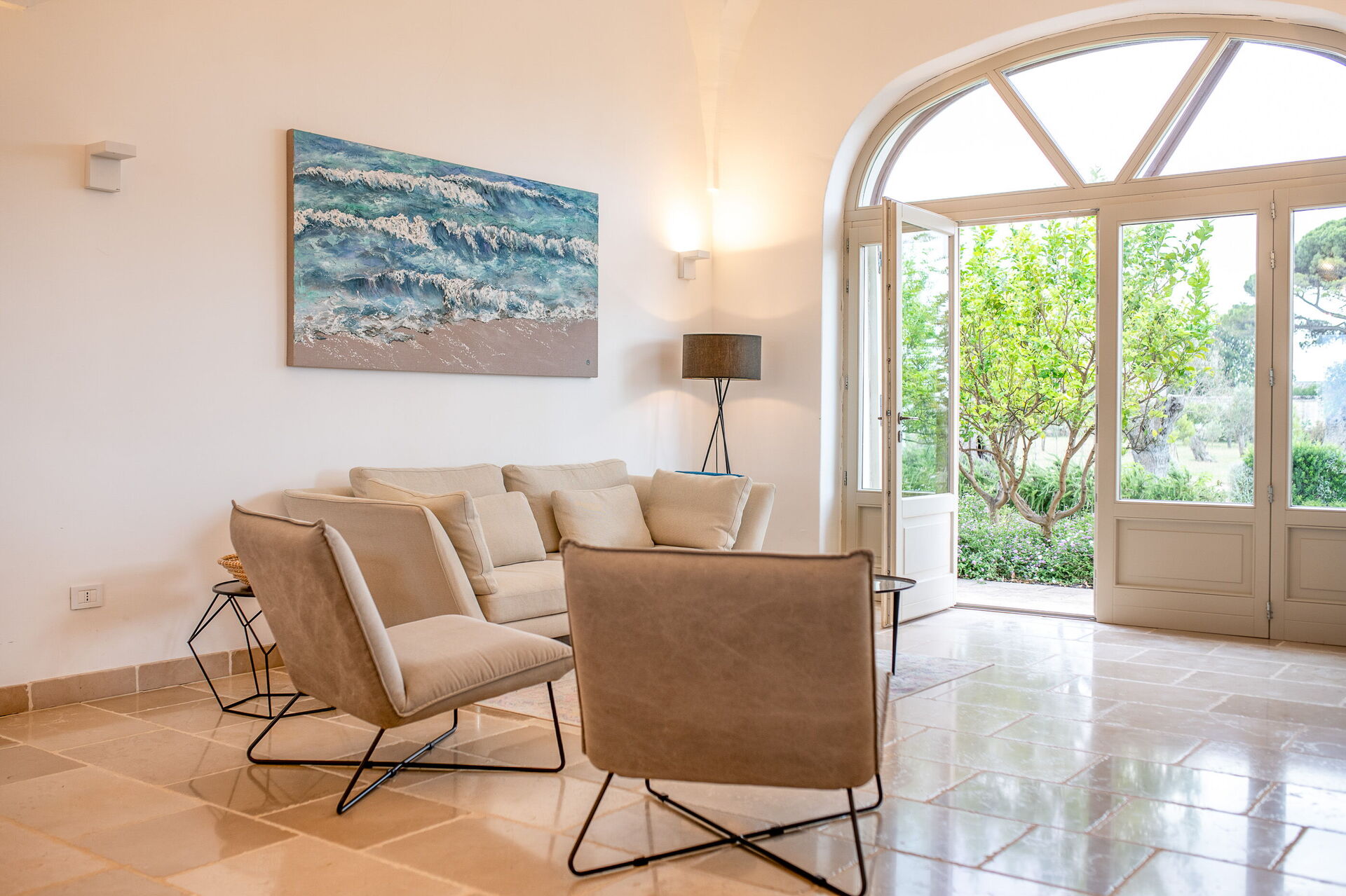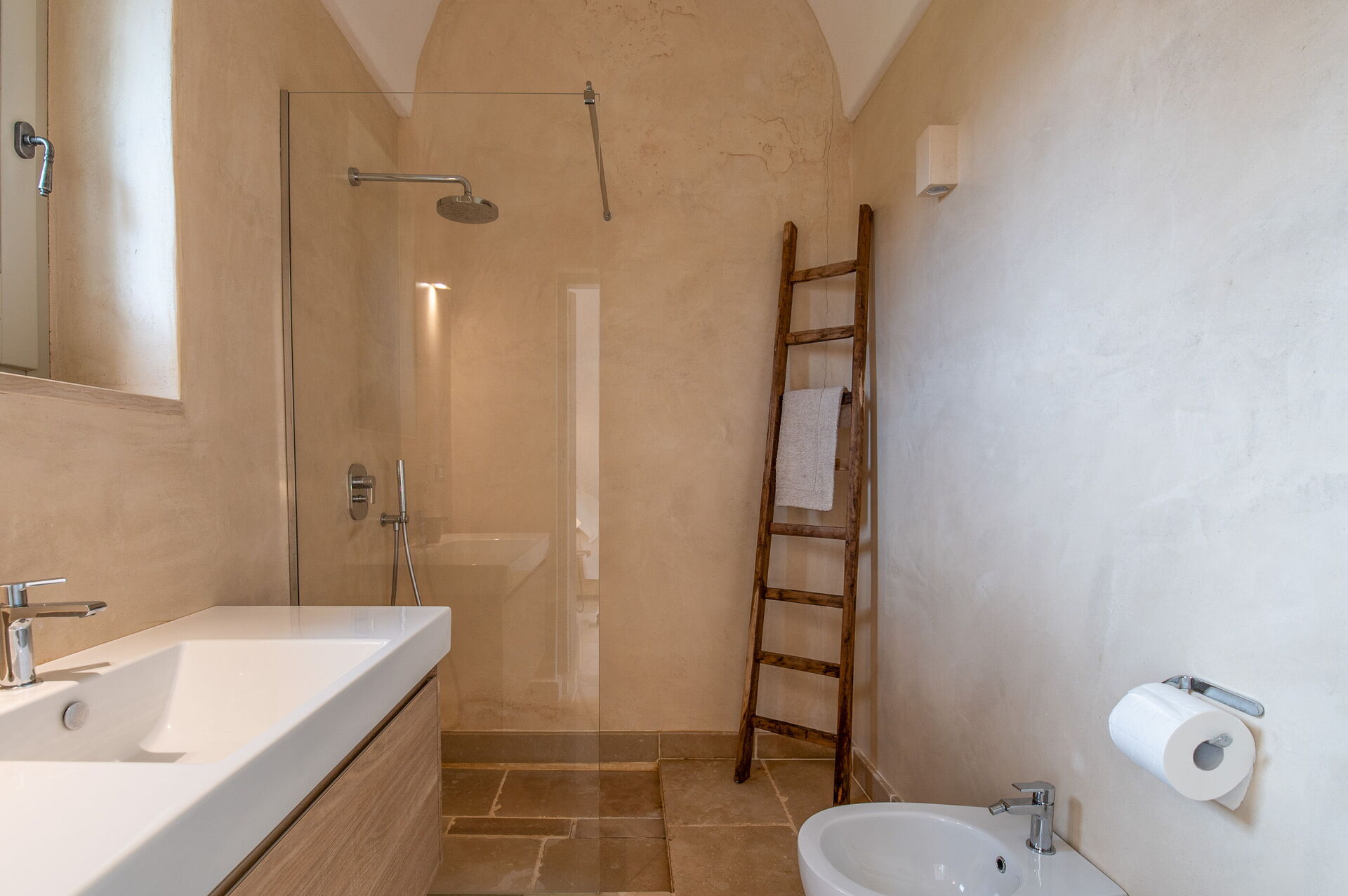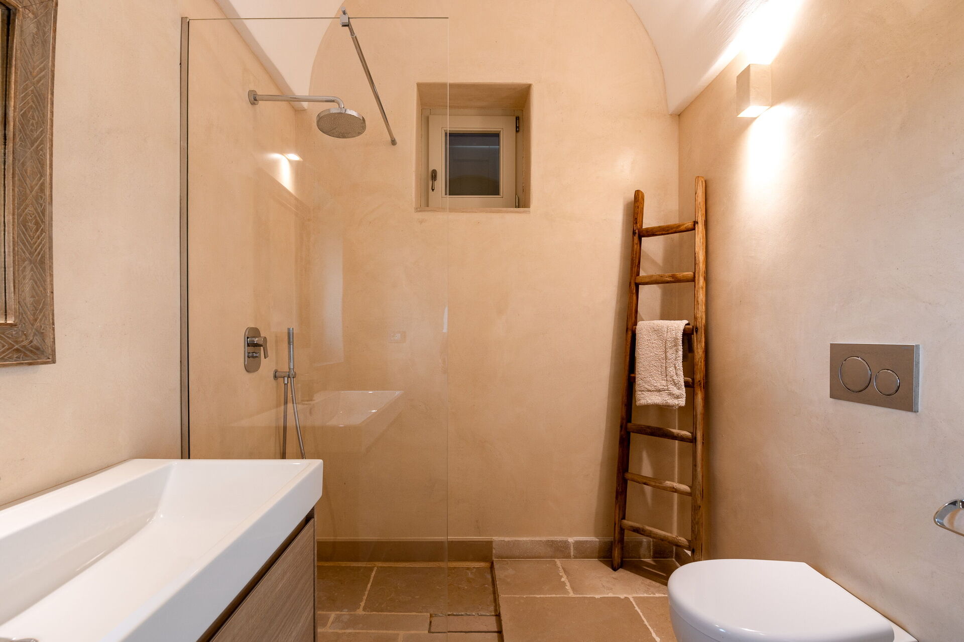 This lovely "Masseria" style villa spreads across a single ground floor, featuring charming vaulted ceilings and a cozy fireplace. You can enjoy year-round comfort with the option of underfloor heating (available upon request for an added cost) and air conditioning.