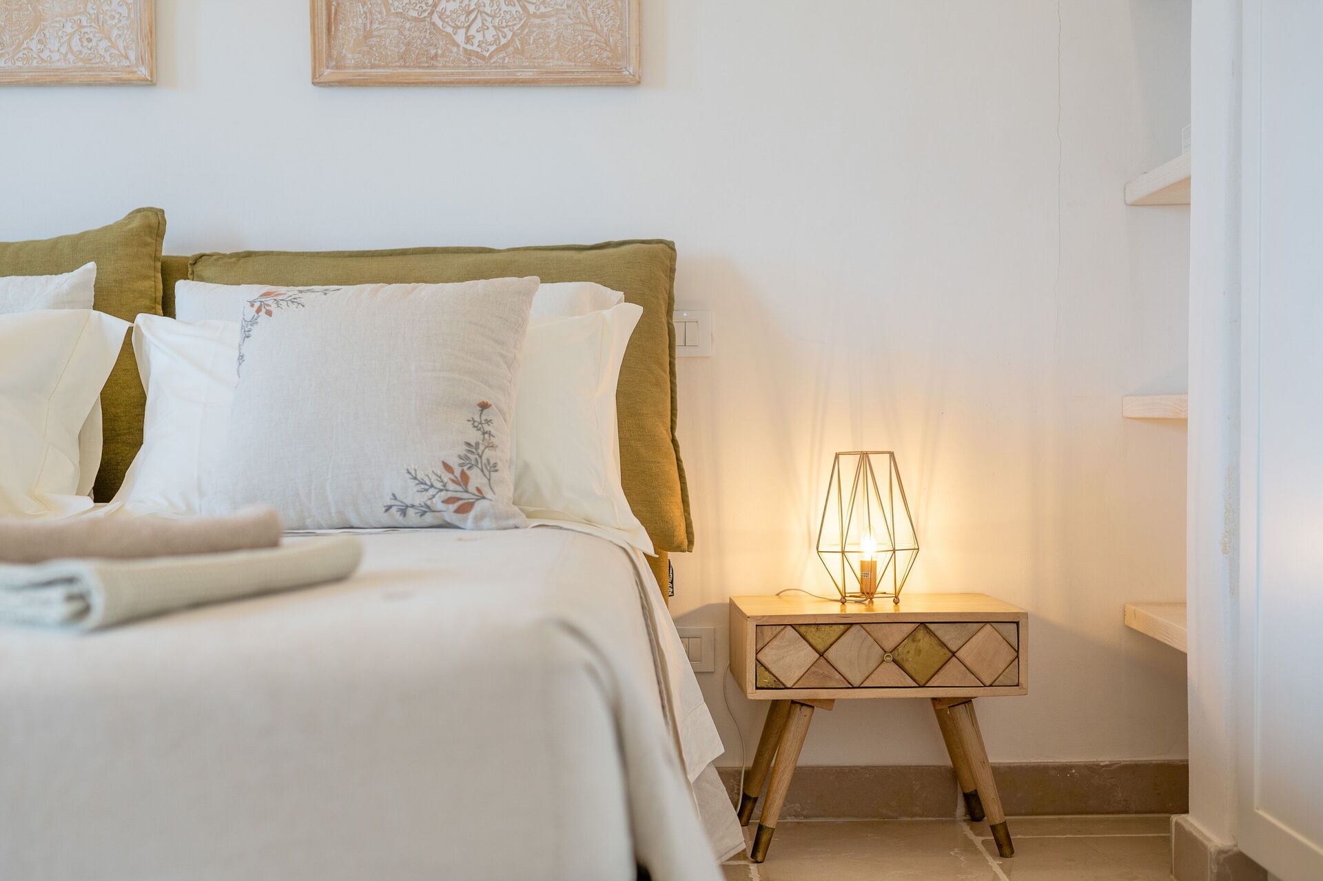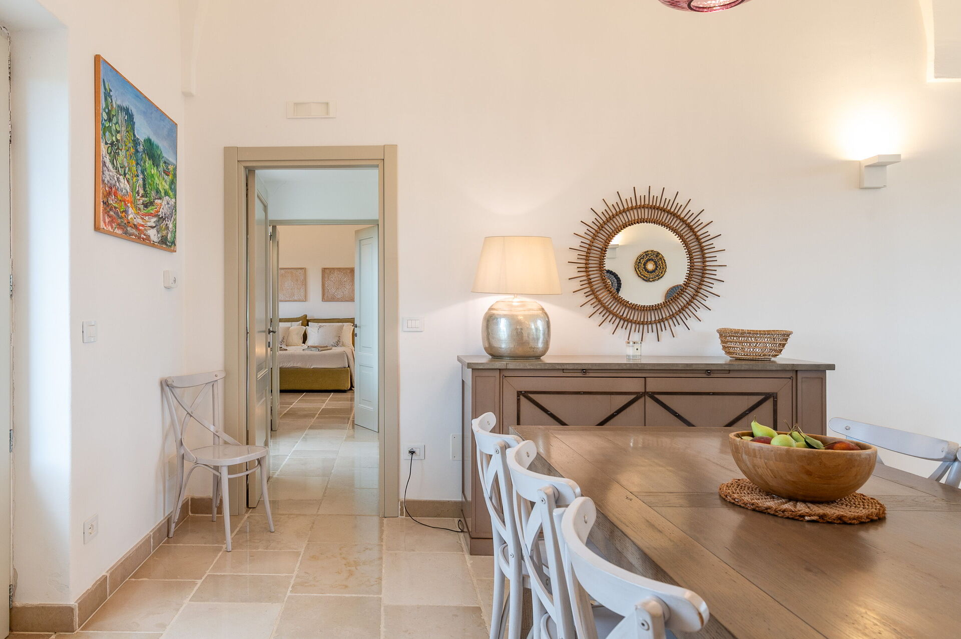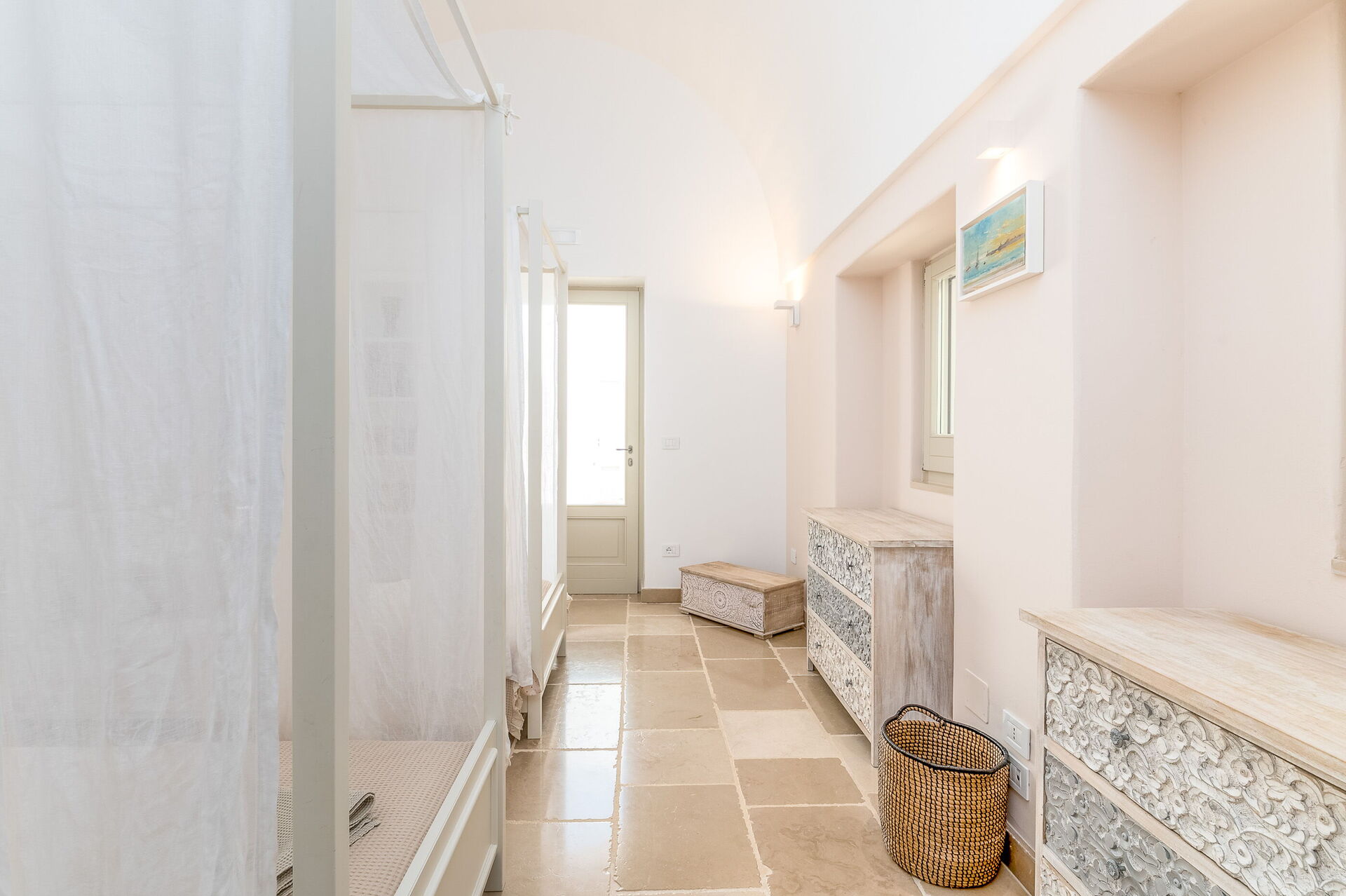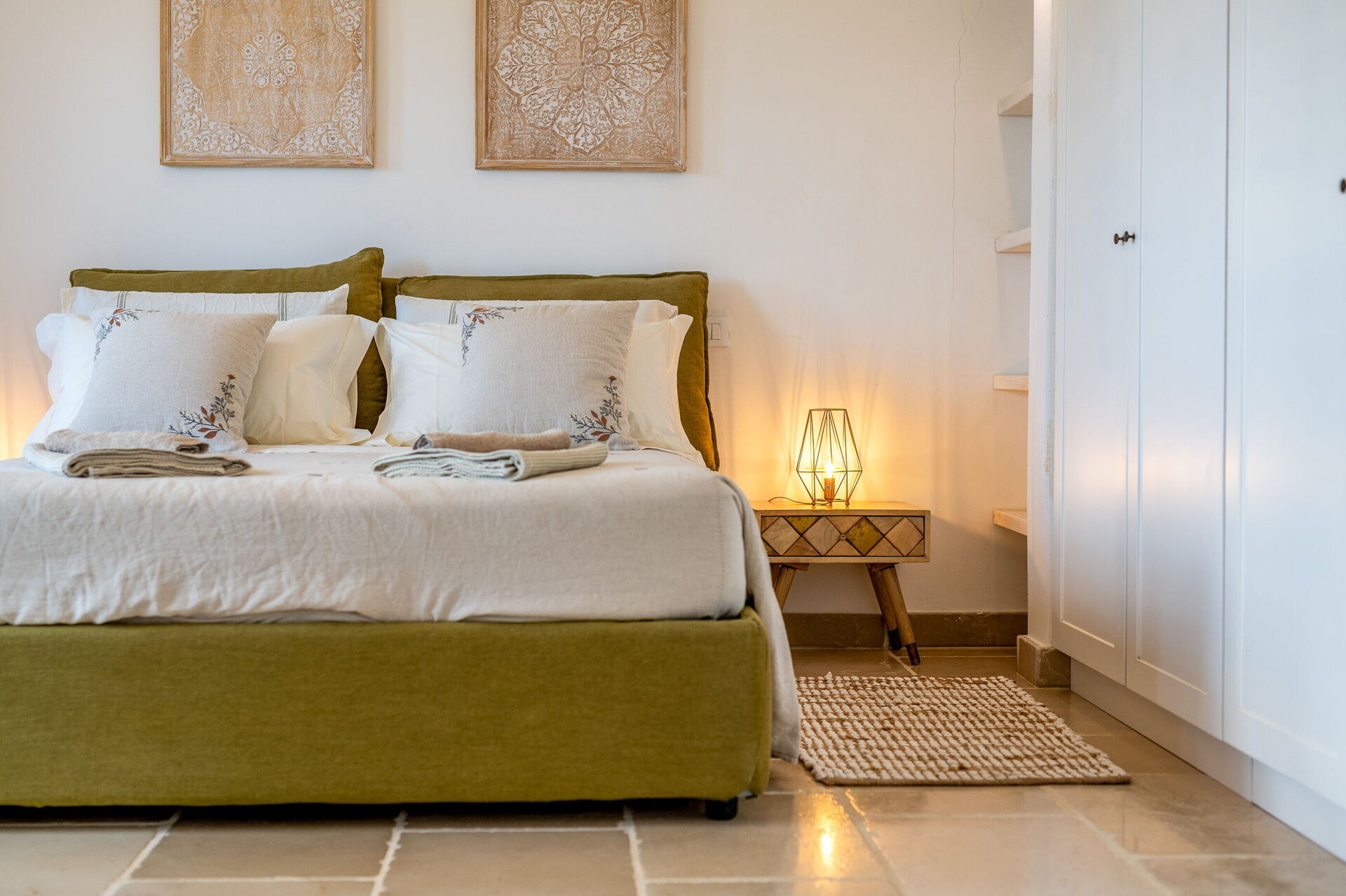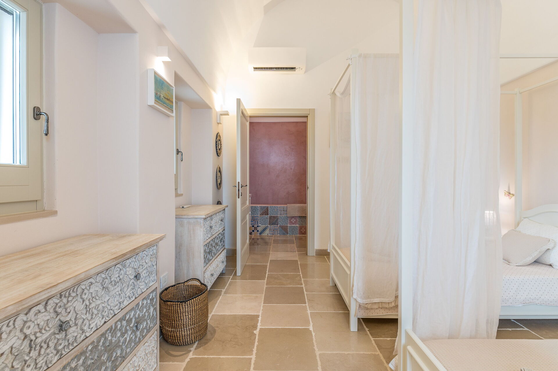 The villa offers a warm, bohemian, and rustic atmosphere, with high-quality beds and mattresses in every room, ensuring a spacious and snug stay.