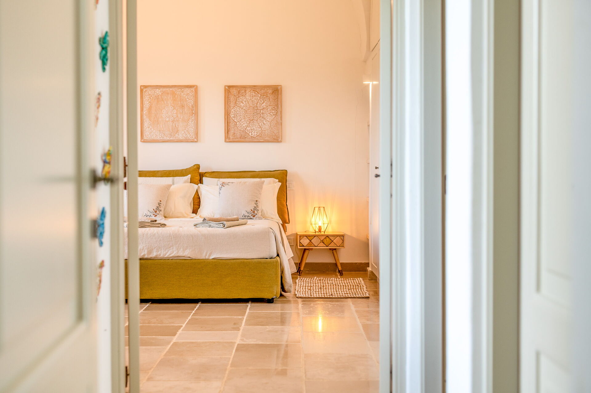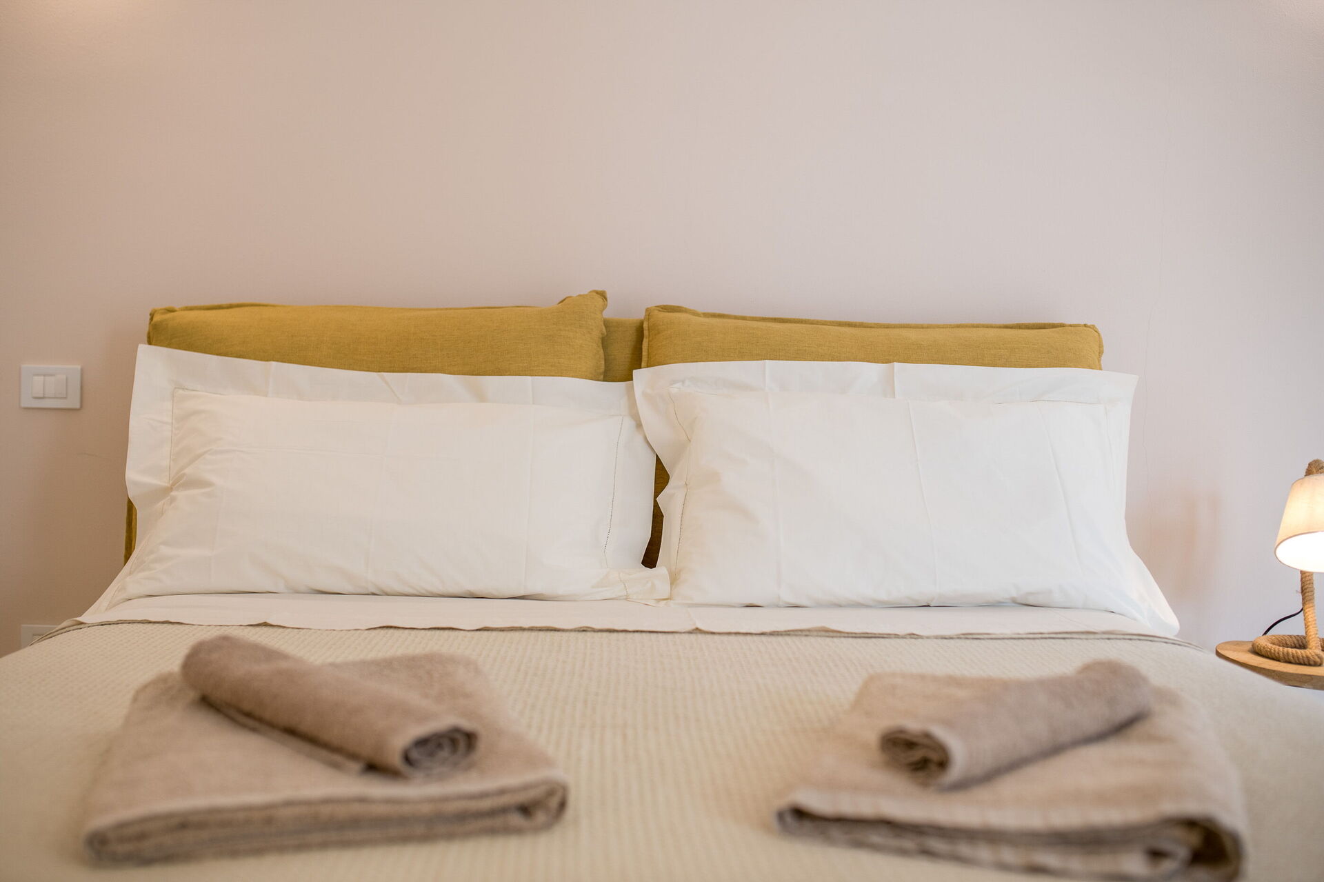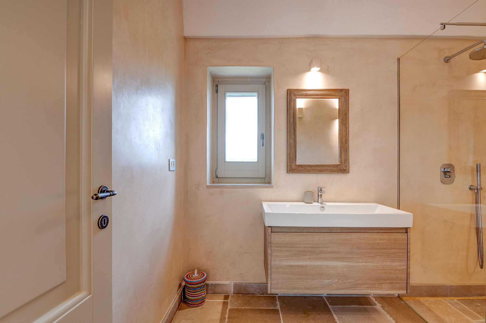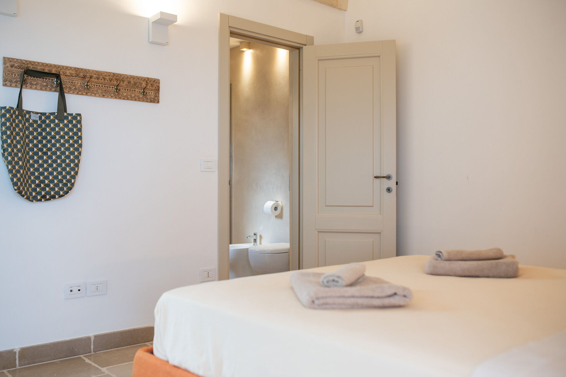The villa offers a warm, bohemian, and rustic atmosphere, with high-quality beds and mattresses in every room, ensuring a spacious and snug stay.