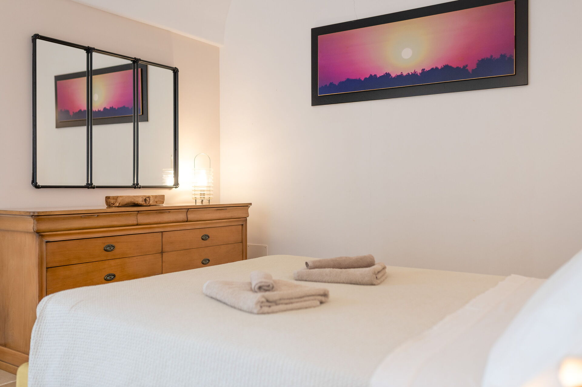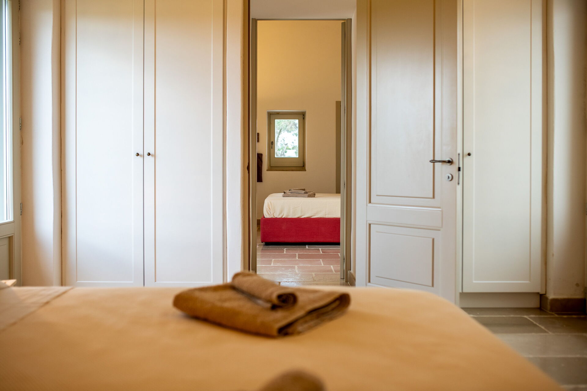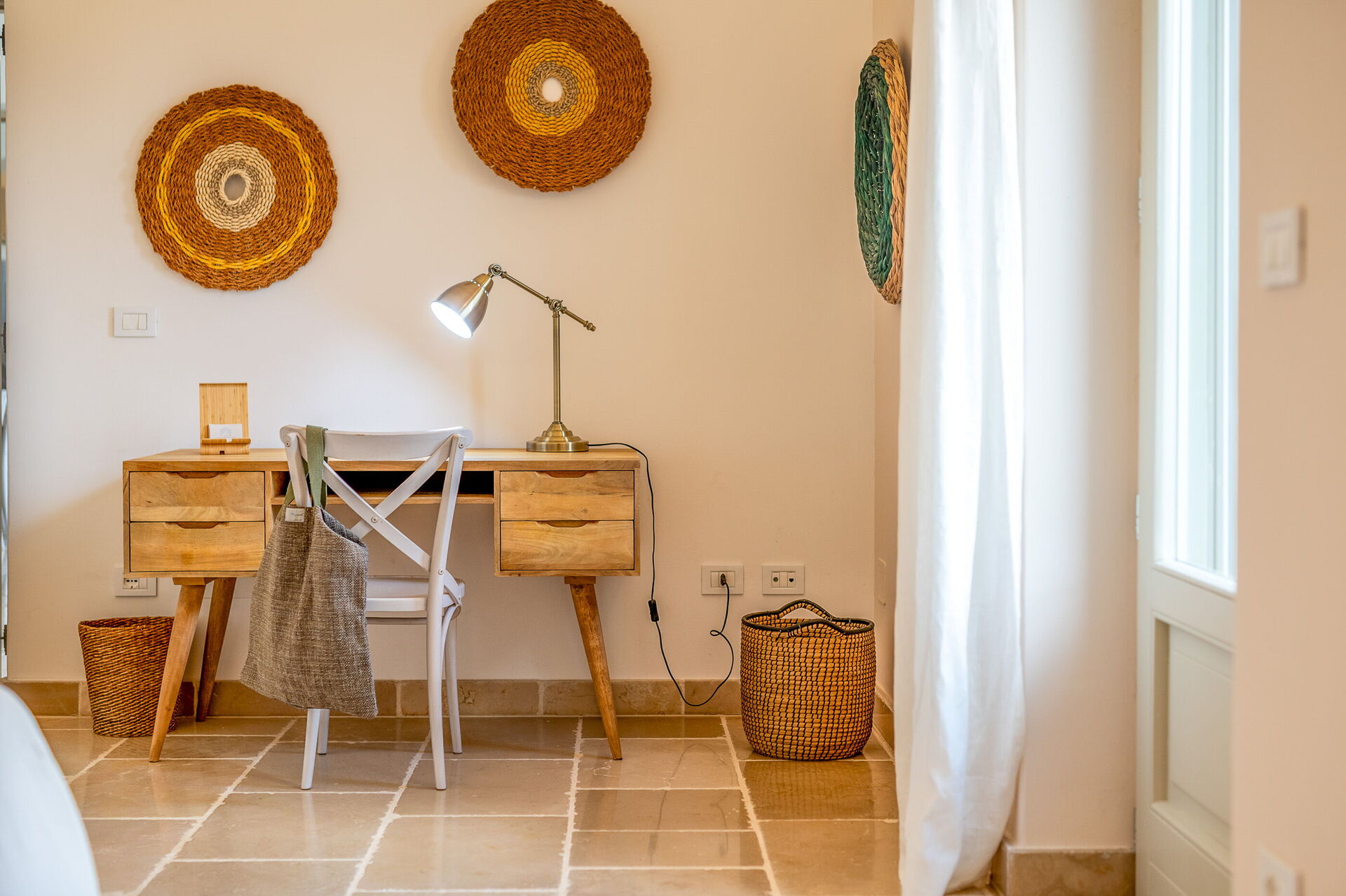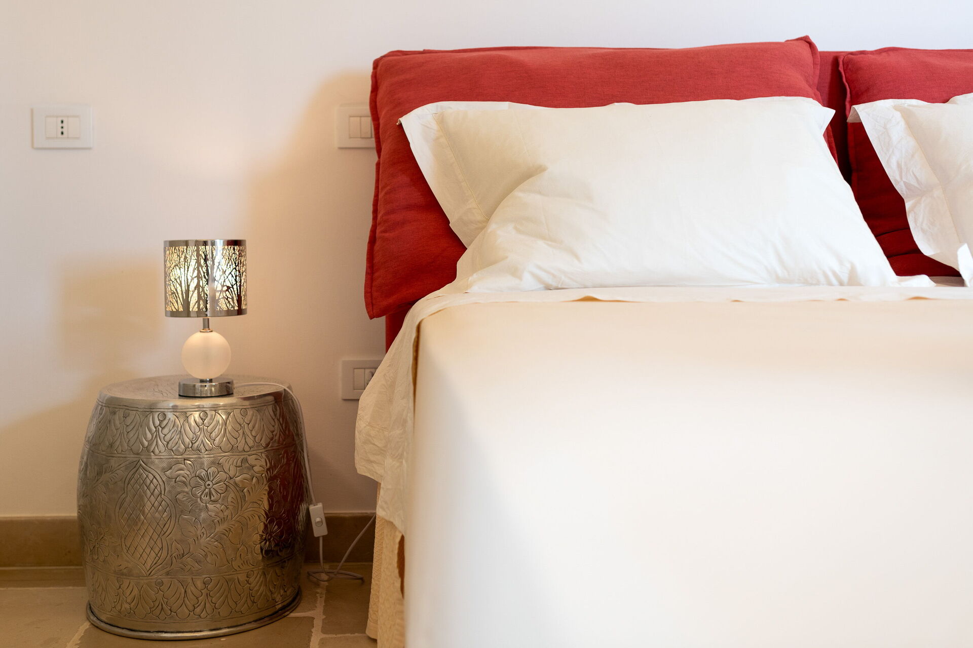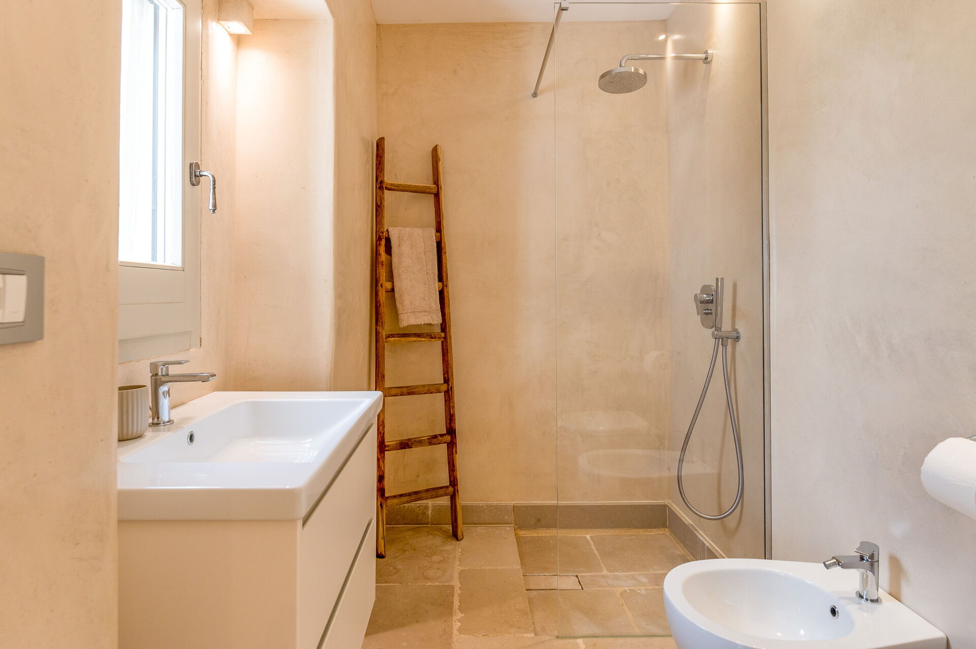 The villa offers a warm, bohemian, and rustic atmosphere, with high-quality beds and mattresses in every room, ensuring a spacious and snug stay.