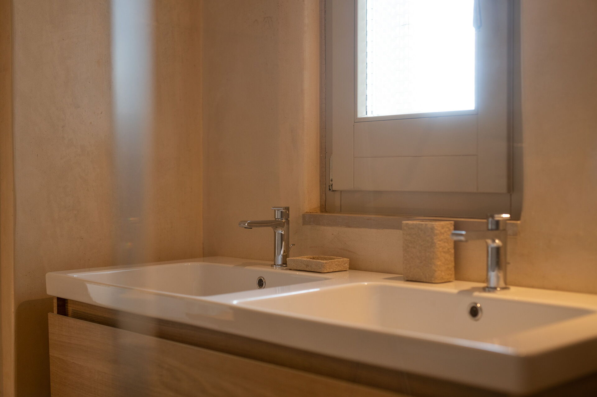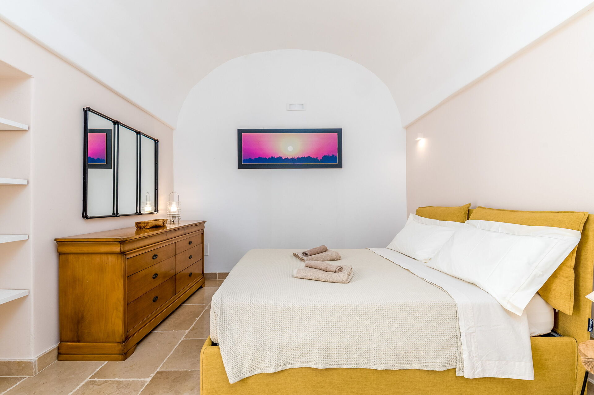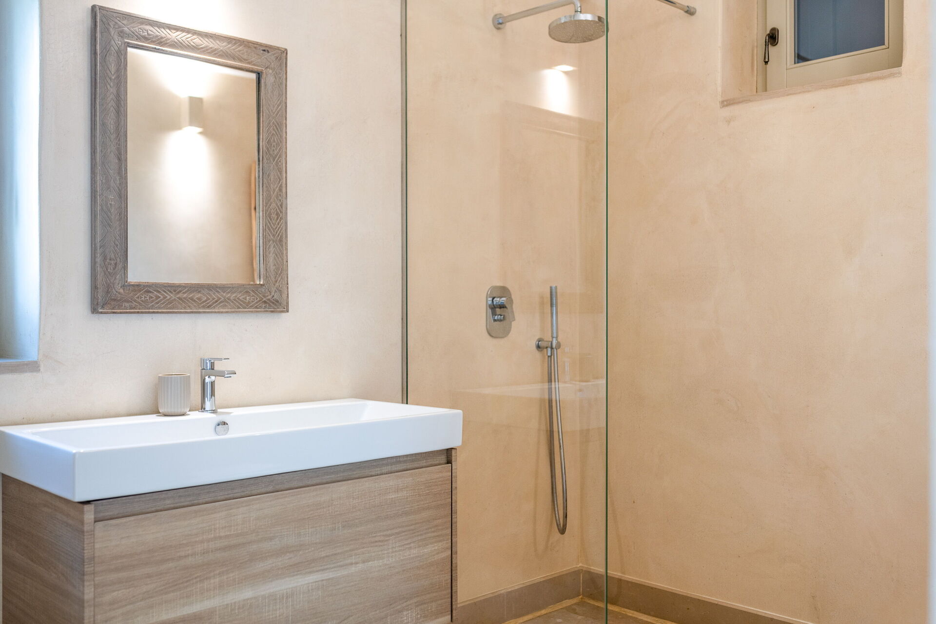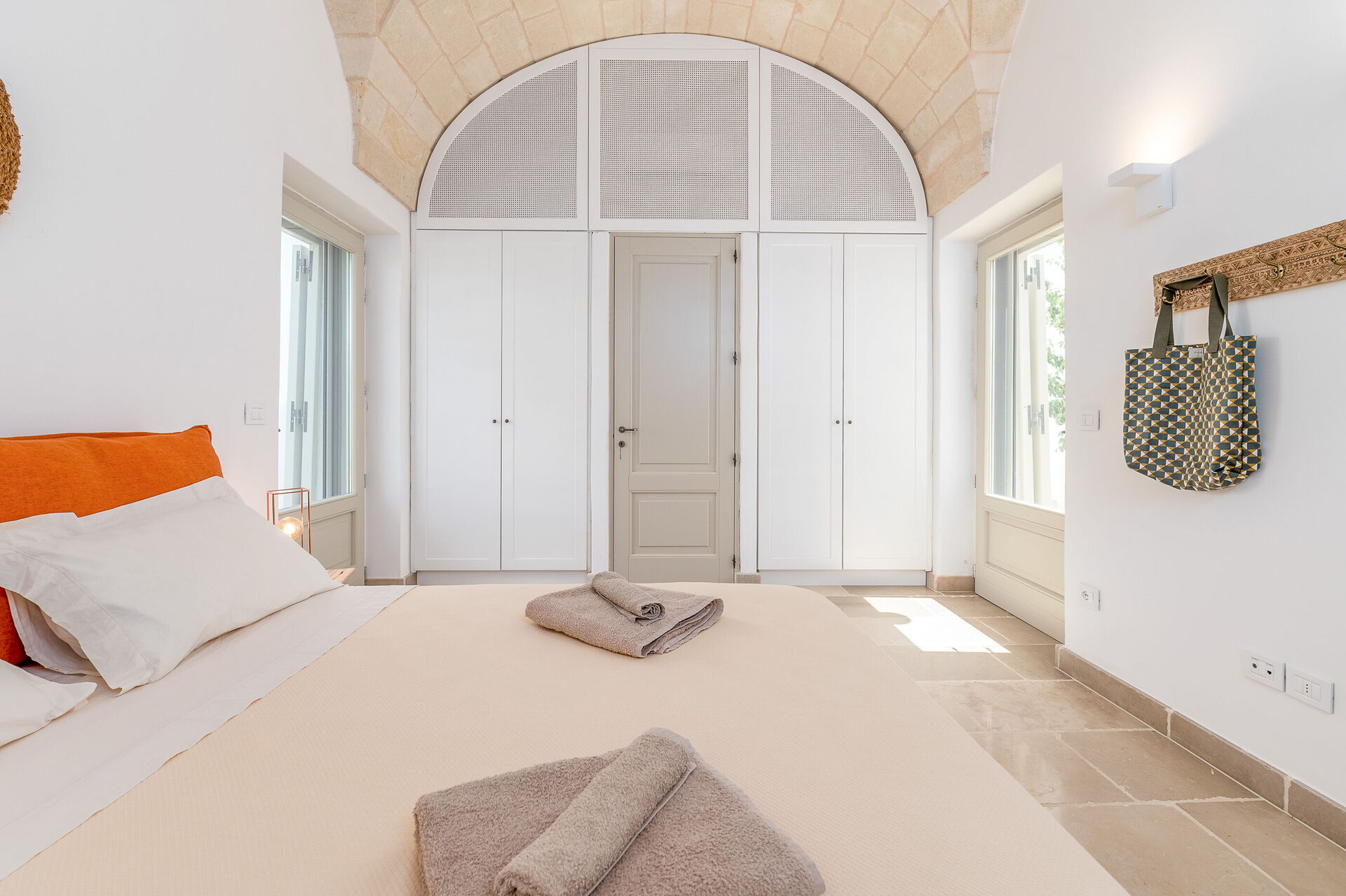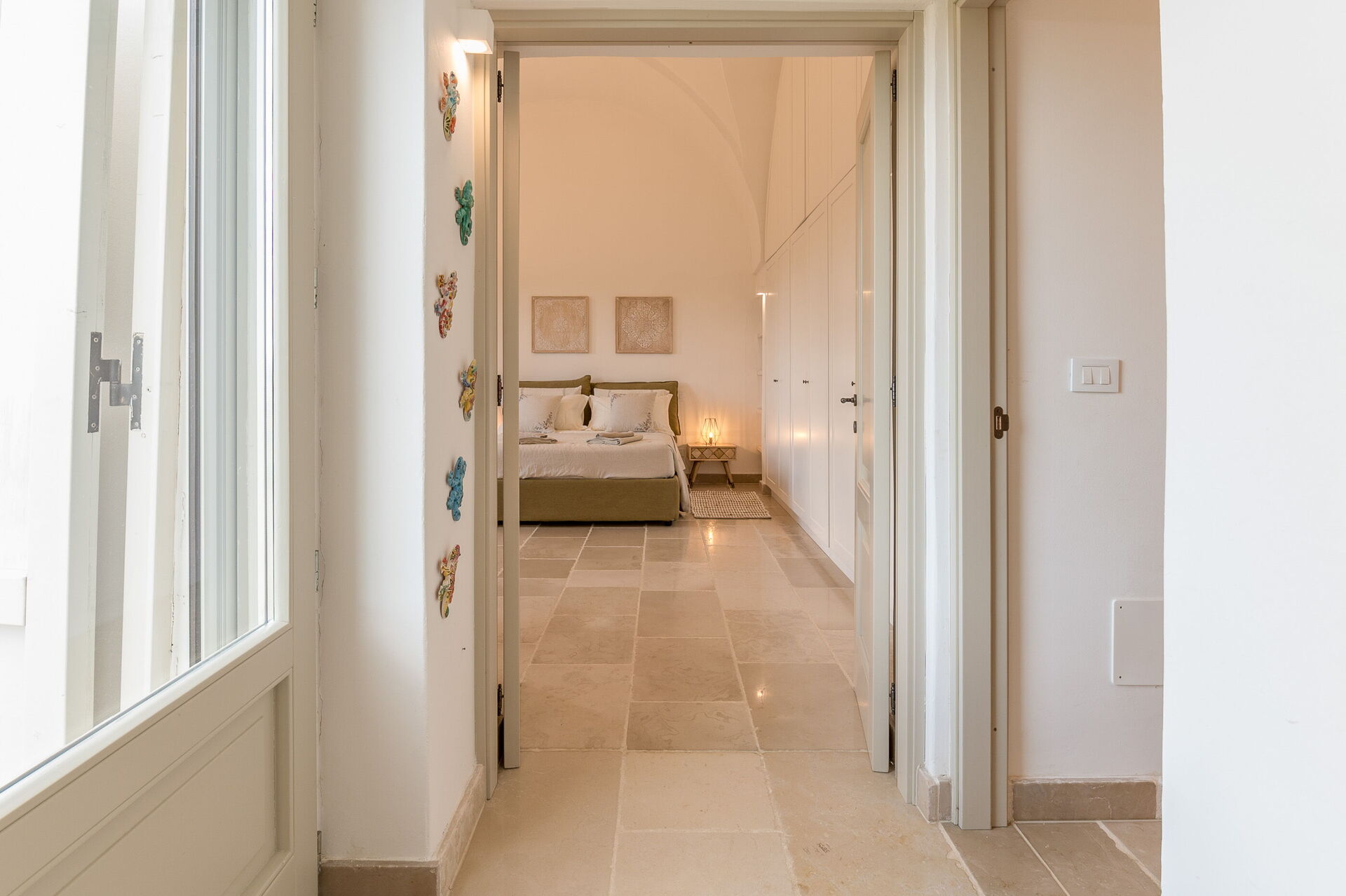 The villa offers a warm, bohemian, and rustic atmosphere, with high-quality beds and mattresses in every room, ensuring a spacious and snug stay.