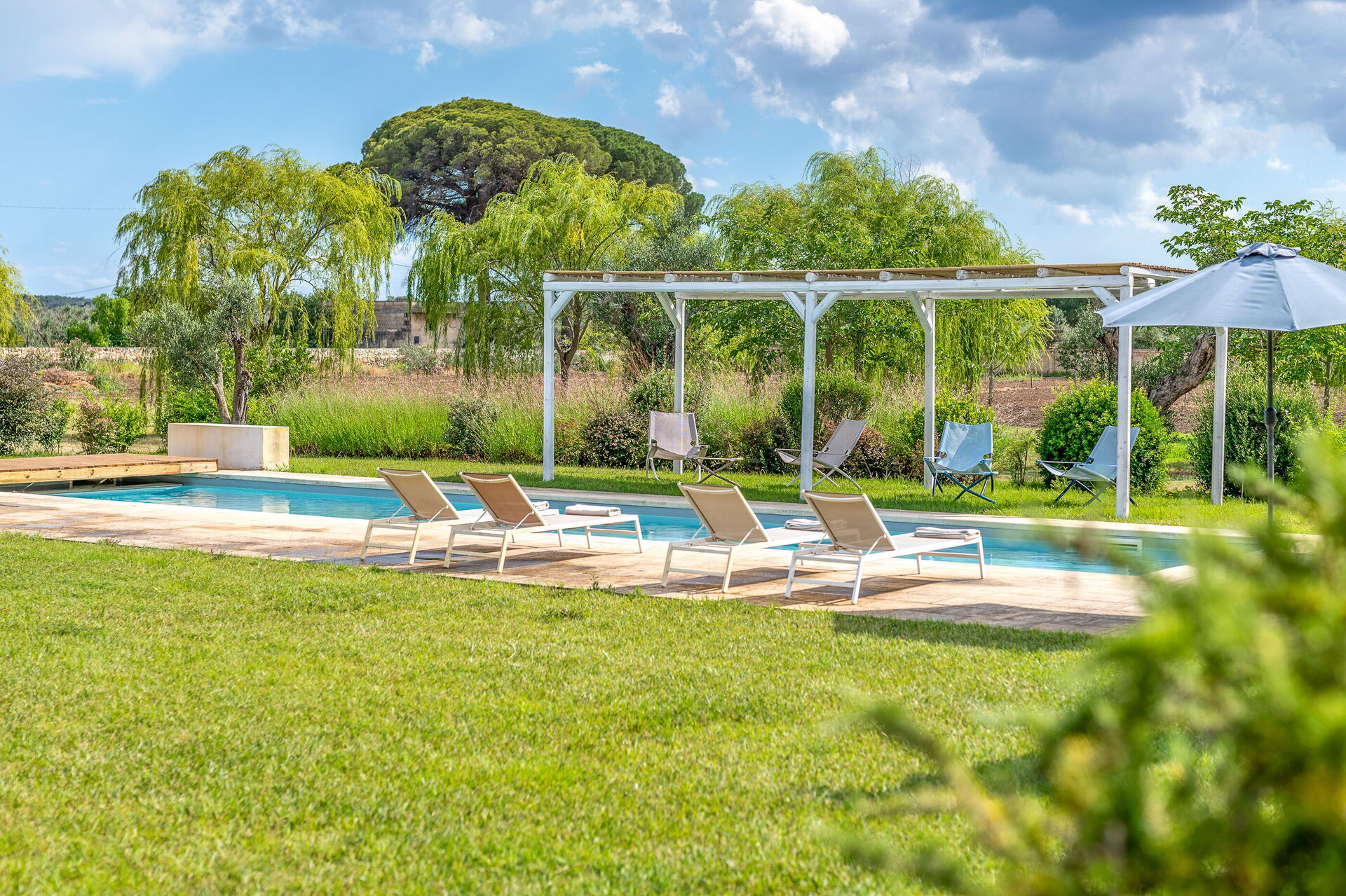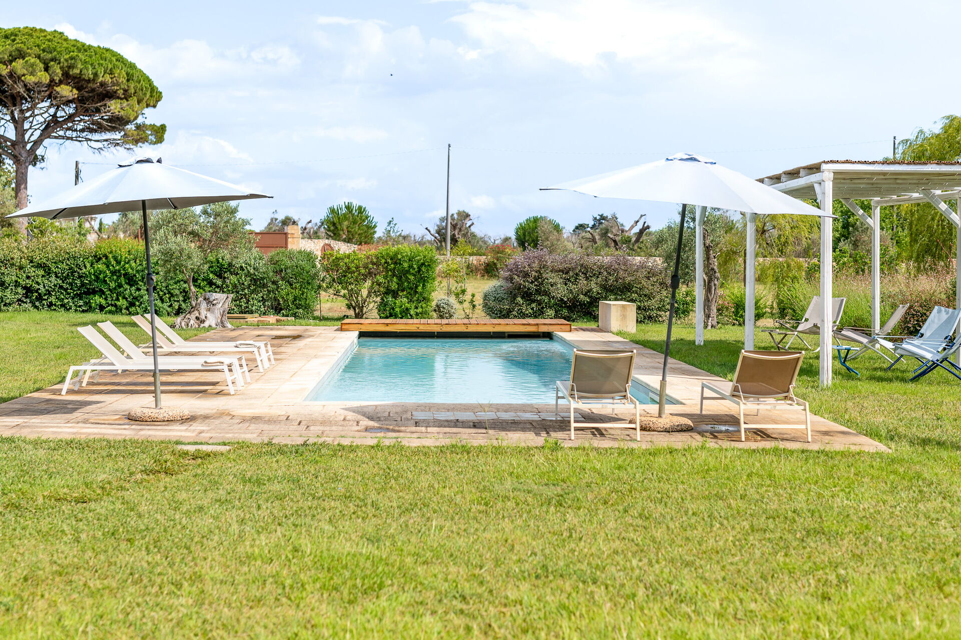 Garden: garden furniture, barbecue, shower, WIFI internet, swimming pool (private, length: 17m, width: 5m, max. depth: 1.8m, min. depth: 1.2m, outdoor), al fresco dining, enclosed property, 10 sunbeds.