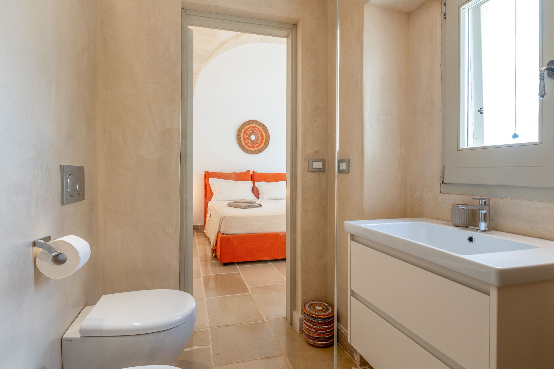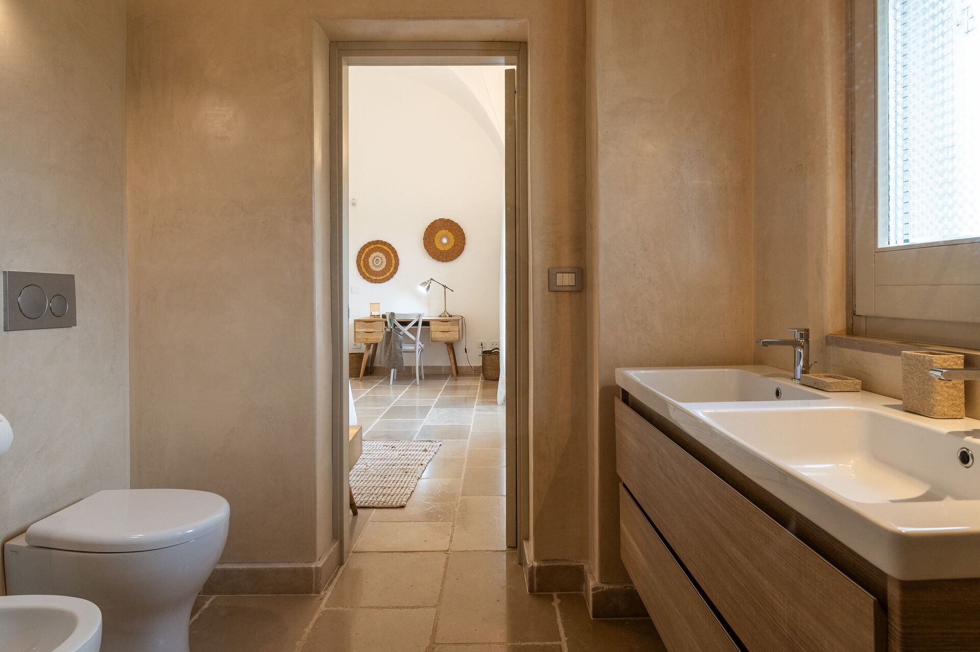 Bathroom: bidet, basin, toilet.