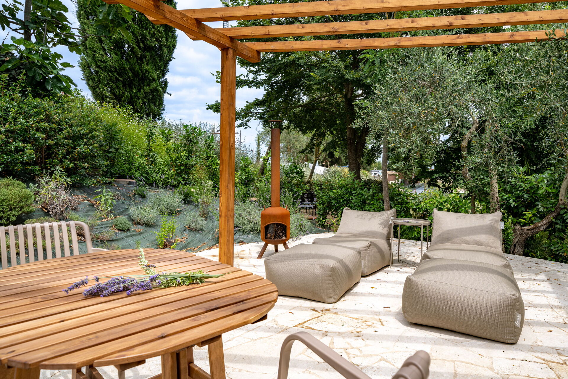 Het zwembad is verwarmd van mei tot oktober en wordt uitsluitend gedeeld door de tien appartementen en drie villa's.