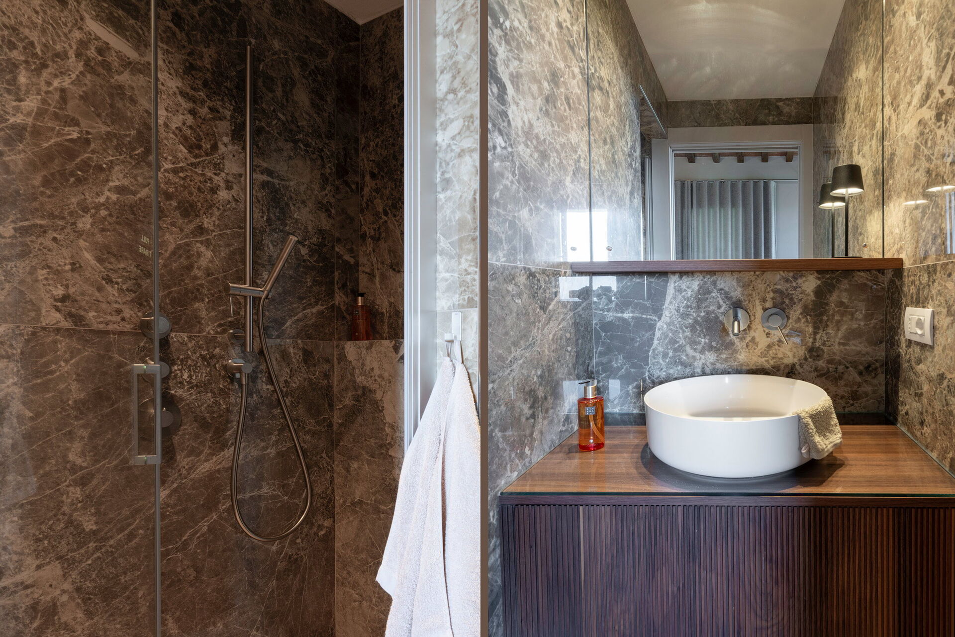 Badkamer: toilet , douche.