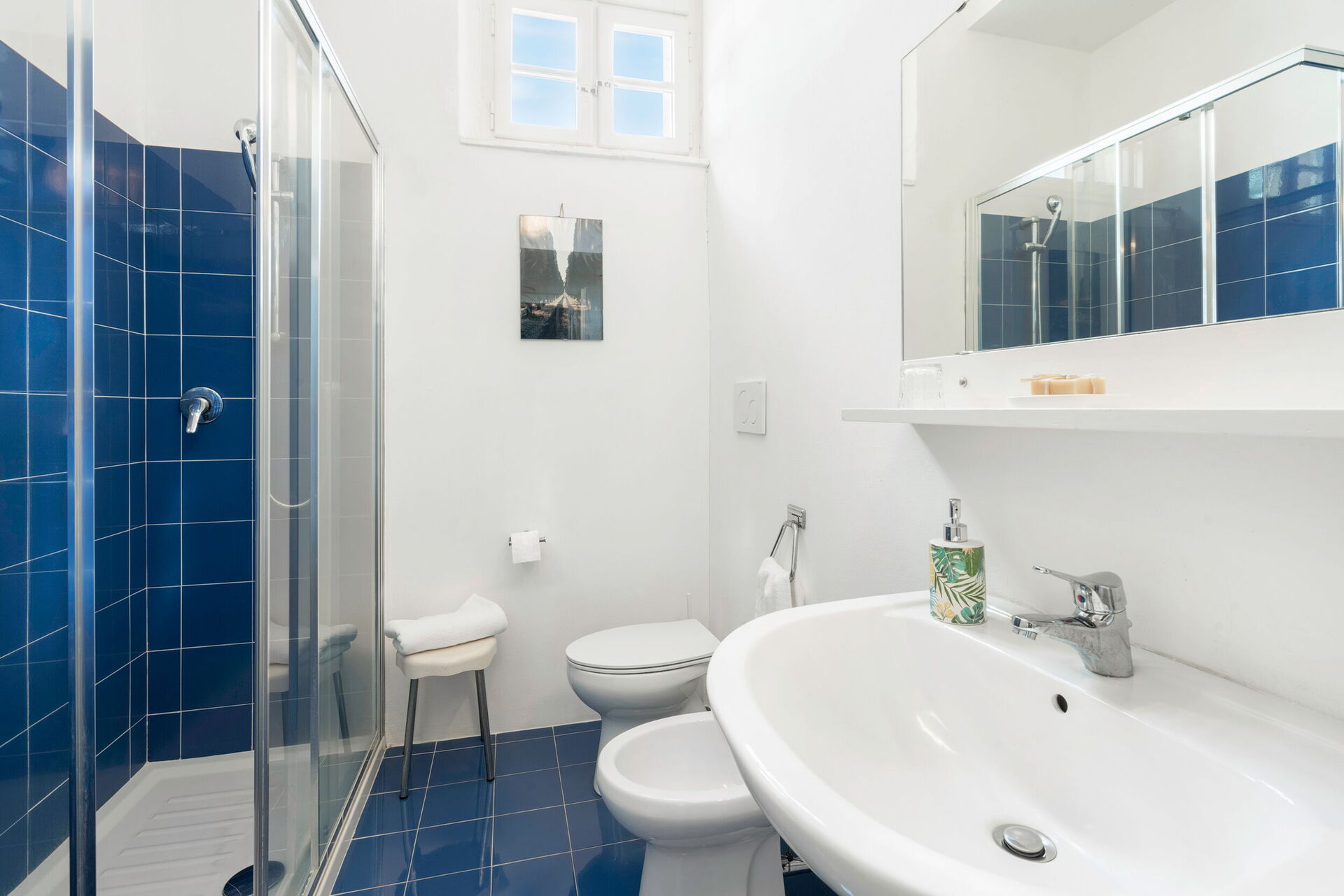 Badkamer: wastafel, toilet , bidet, douche, haardroger, hor.