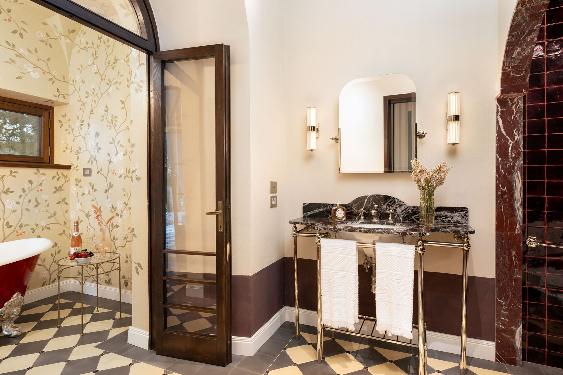 Slaapkamer met badkamer 1: king size bed (breedte: 180m, lengte: 200m), WIFI internet, airconditioning, wastafel, toilet , bidet, bad, douche, haardroger.