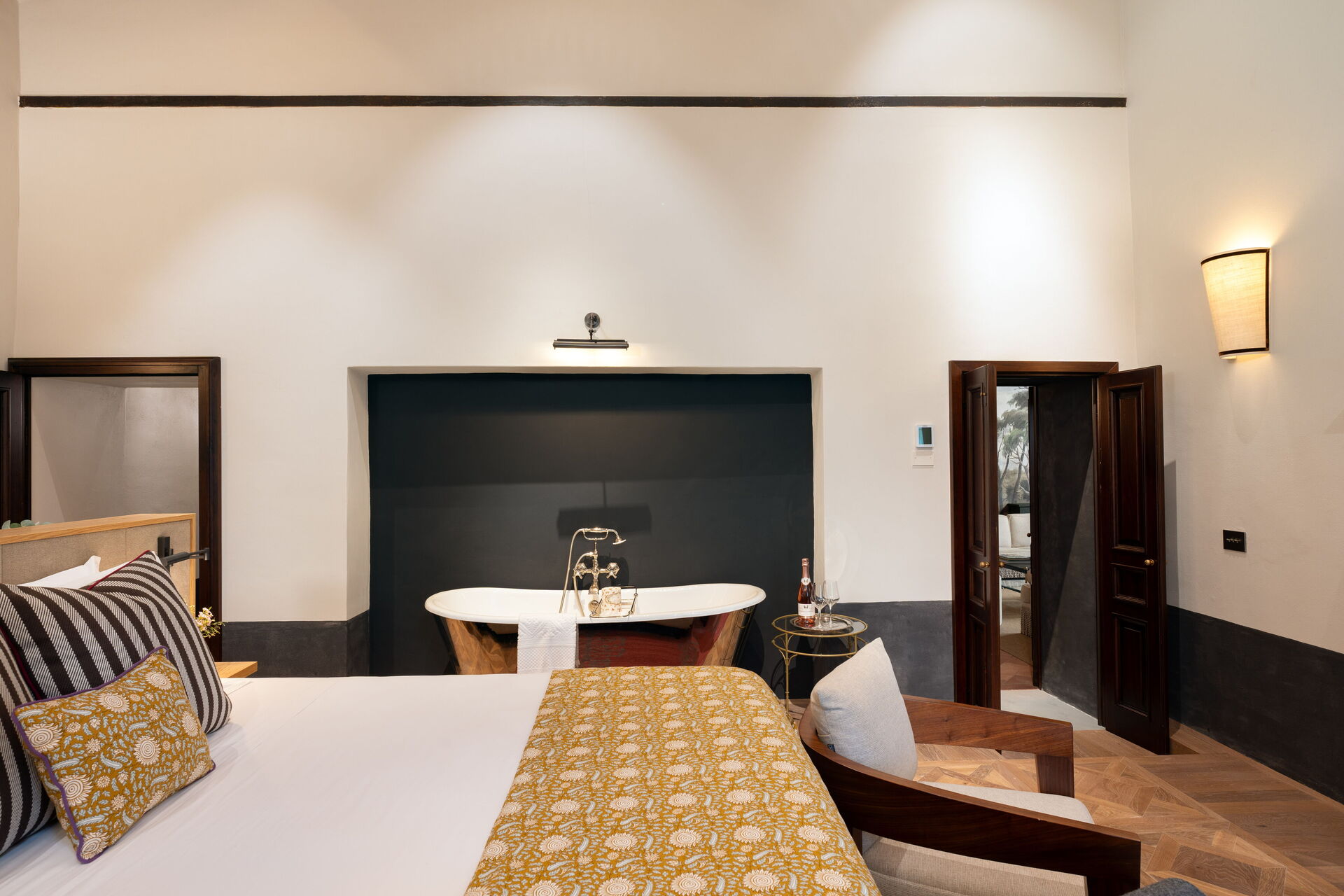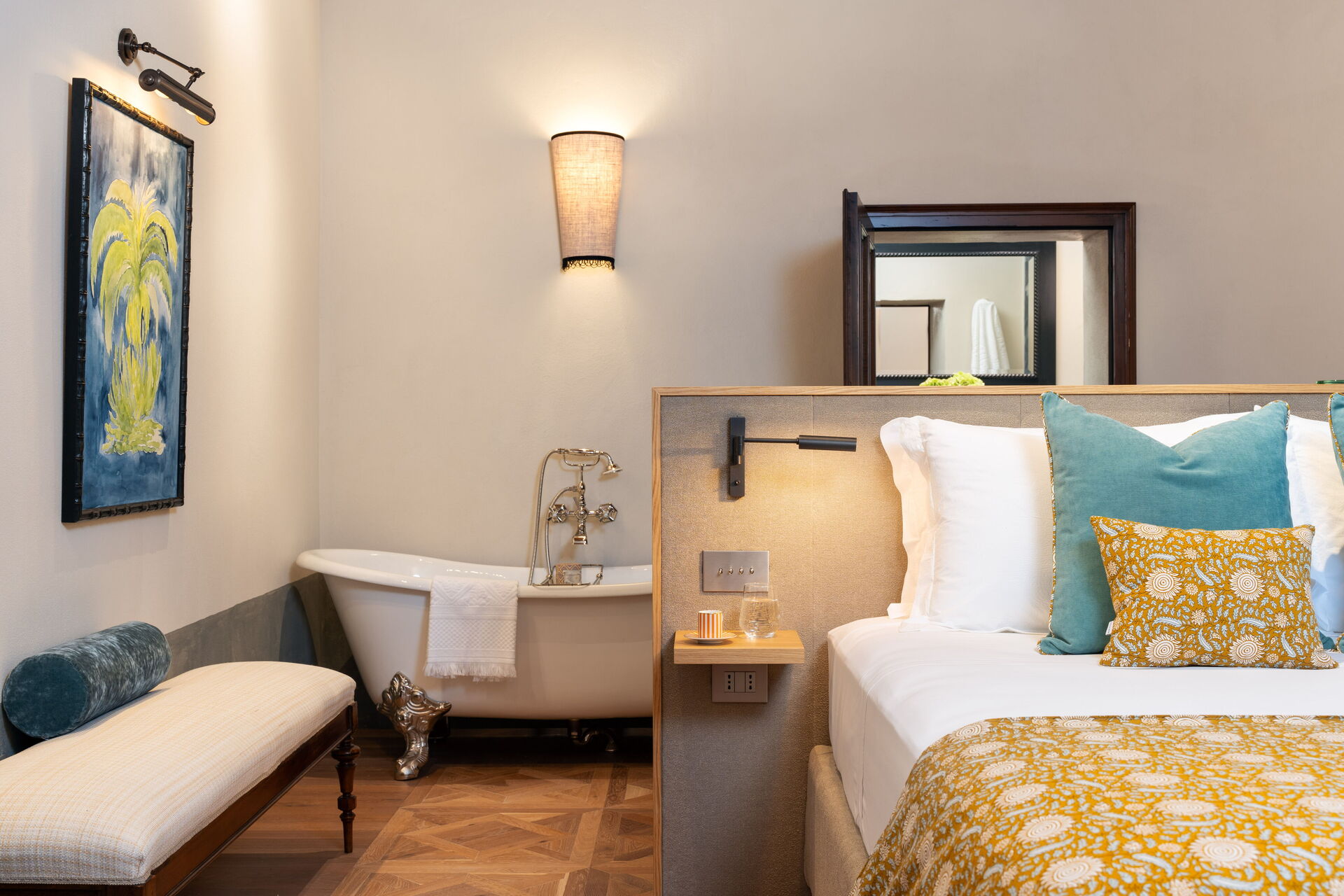 Slaapkamer met badkamer 4: king size bed (breedte: 180m, lengte: 200m), WIFI internet, airconditioning, wastafel, toilet , bidet, bad, douche, haardroger.
