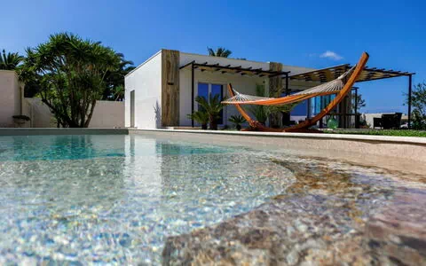 Moderne, luxueuze villa "Incoronata New Dependance", bouwjaar 2024, omgeven door bomen en velden. 1 km van het centrum van Nardò-Città del Barocco Leccese, 15 km van het centrum van Gallipoli, 24 km van het centrum van Lecce, rustige, zonnige ligging, 3 km van zee, 3 km van het strand, te midden van groen. Voor alleengebruik: terrein (omheind), groot, mooie, verzorgde tuin 1.200 m2 (omheind) met bloemen en bomen, ligweide, openluchtzwembad geen inkijk (4 x 10 m, 50 - 140 cm diepte, seizoensgebonden beschikbaarheid: 01.Apr. - 30.Okt.). WC bij het zwembad, buitendouche, prieel, tuinmeubelen, barbecue, onderhoud zwembad door de eigenaar/tuinman. In het huis: alarmsysteem. Wissel van linnengoed (extra wissel te betalen). Wissel van handdoeken (extra wissel te betalen). Parkeerplaats bij het huis. Levensmiddelenwinkel, supermarkt 700 m, restaurant 3 km, bar 3 km, bakkerij 3 km, bushalte 700 m, treinstation "Nardò" 3 km, zandstrand "Santa Caterina" 3 km, rotsstrand "Porto Selvaggio" 3 km. Tennis, sportcentrum 350 m. Attracties in de buurt: Melpignano - Città della Taranta 40 km, Otranto 60 km, Santa Maria di Leuca-Punta Sud Puglia 60 km, Alberobello 143 km, Polignano a Mare 149 km, Matera 162 km. Wandelgebied Parco Naturale Porto Selvaggio 25 km, Parco Naturale Terra delle Gravine 119 km, Grotte carsiche di Castellana 155 km. Auto noodzakelijk. Object referentie: IT6770.810.1 is gelegen op hetzelfde terrein.