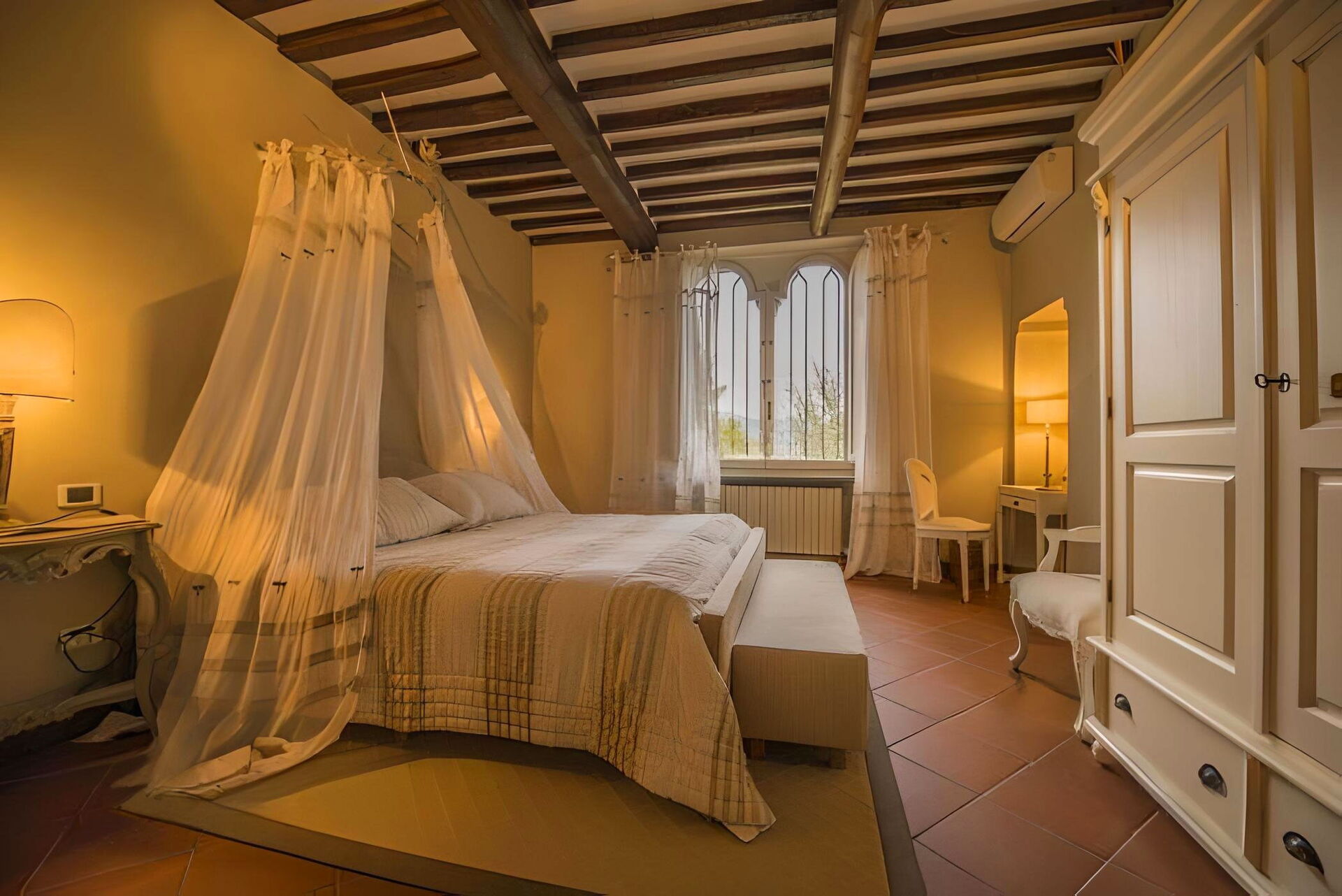 Bij aankomst te Villa Bongi vindt u een mooie, schone en goed onderhouden woning met uitzicht over de heuvels ideaal voor een ontspannen vakantie in Toscane. Na een hectische dag toeren kunt u de tijd doorbrengen met vrienden en familie bij het zwembad, en genieten van een glaasje wijn - een perfecte manier om te ontspannen aan het einde van de dag. Op het terrein is er voor uw genoegen een barbecue, terras en tennisbaan. Eten met vrienden en familie is een grote onderdeel van de Toscaanse cultuur. Maak gebruik van de goed uitgeruste keuken om maaltijden te bereiden met lokale producten terwijl u op vakantie bent. De keuken biedt o.a. een koffiezetapparaat, broodrooster, fornuis en ijskast, en natuurlijk ook voldoende servies en bestek voor minstens tien personen. Eet buiten net zoals een echte Toskaan, een veranda met tuinmeubilair is perfect om te genieten van het heerlijke eten, de familie en het mooie Toscaanse klimaat.