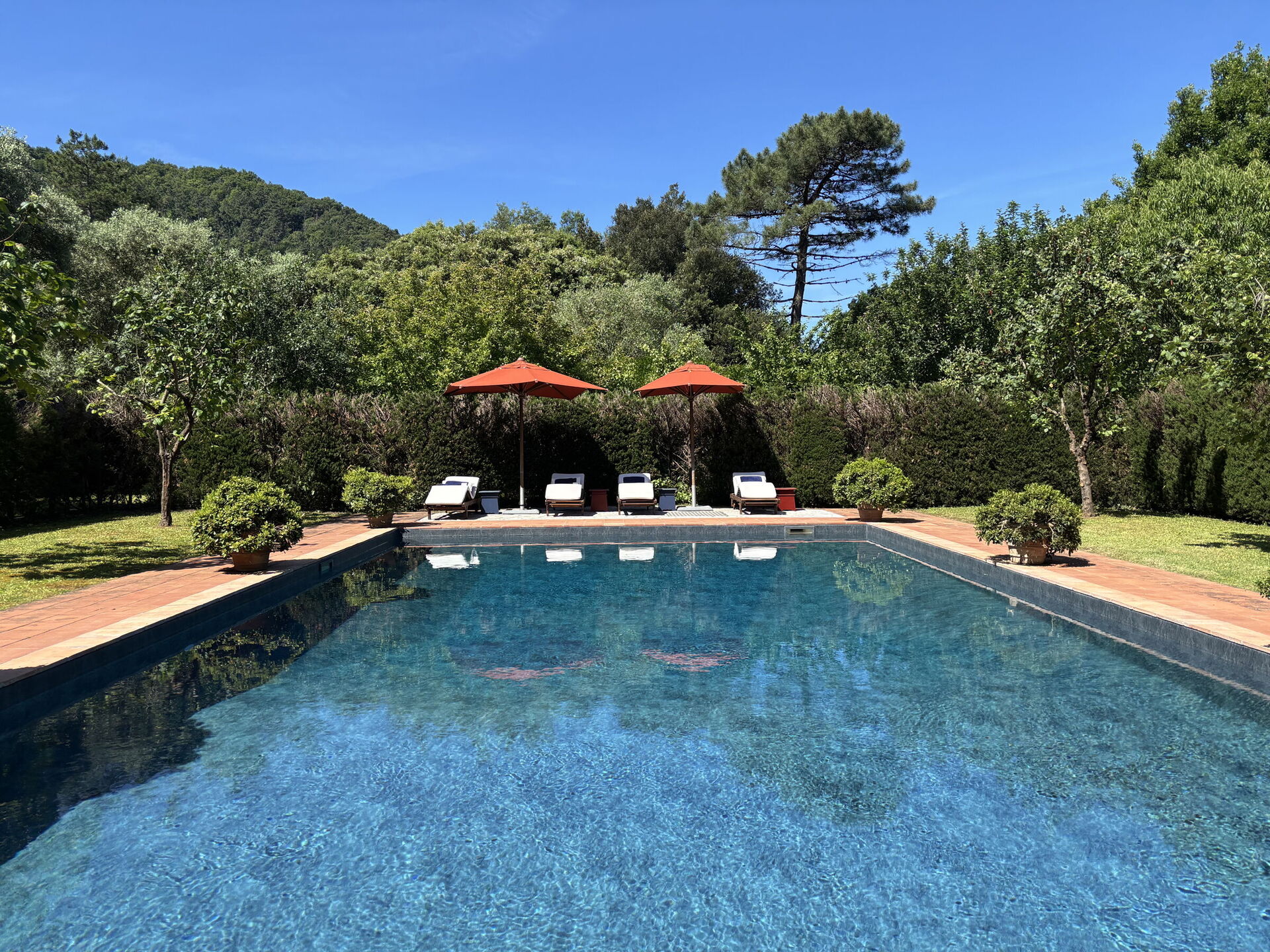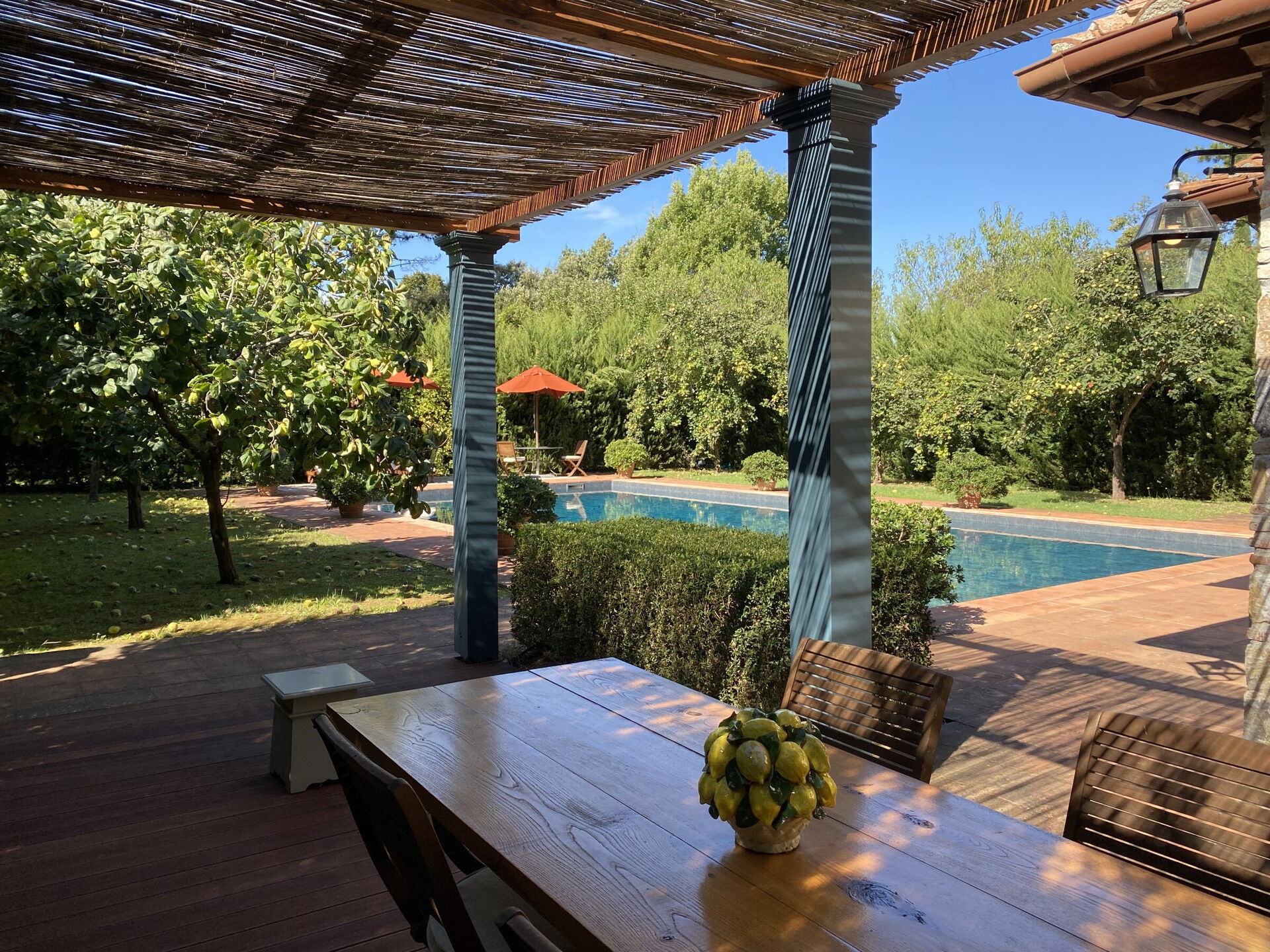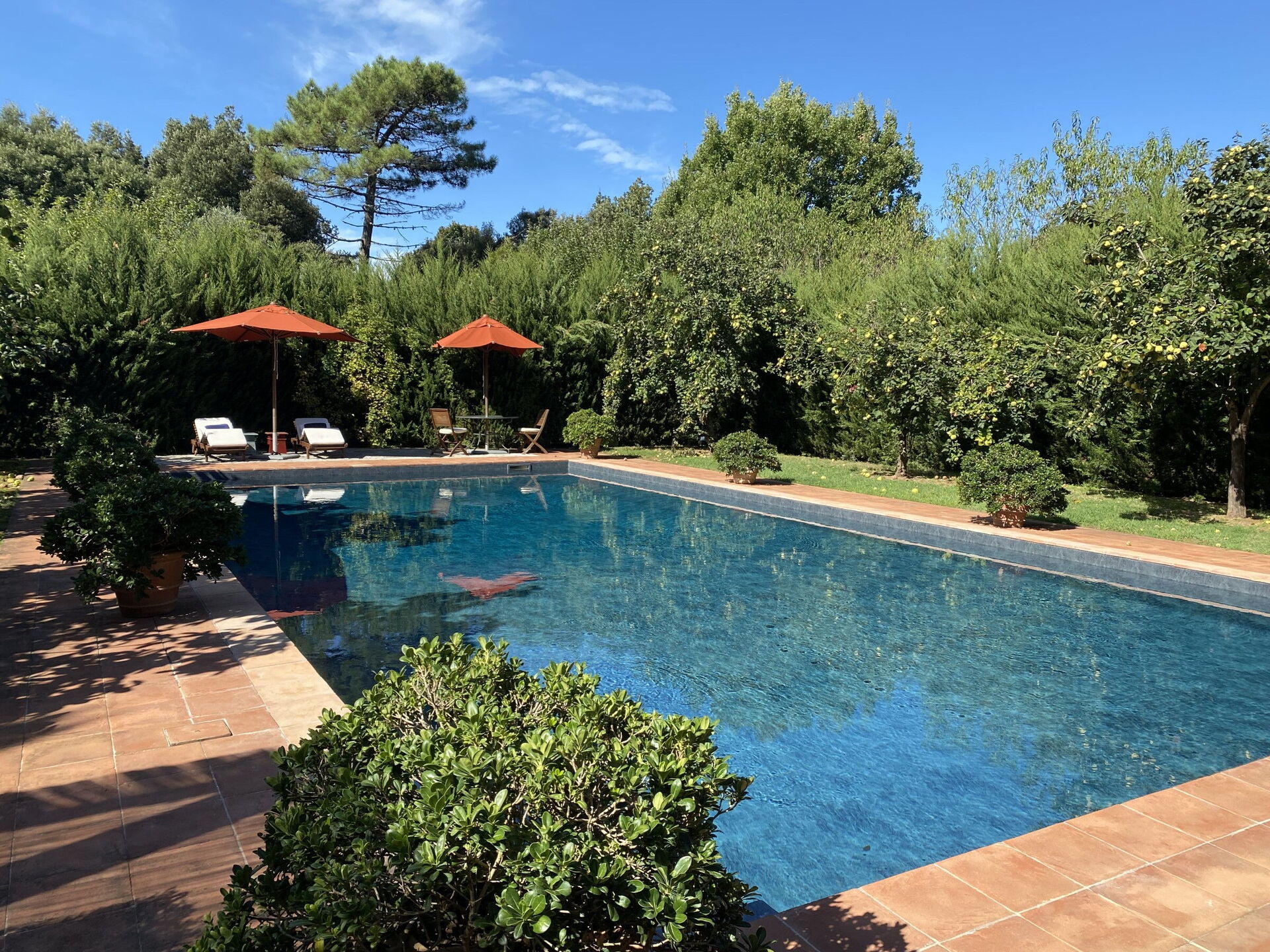 Tuin: zwembad (breedte: 7m, lengte: 12m), WIFI internet, dineren in de buitenlucht, eettafel, gazebo, tuinmeubilair, ligstoel, omheind grondstuk, tennisbaan.