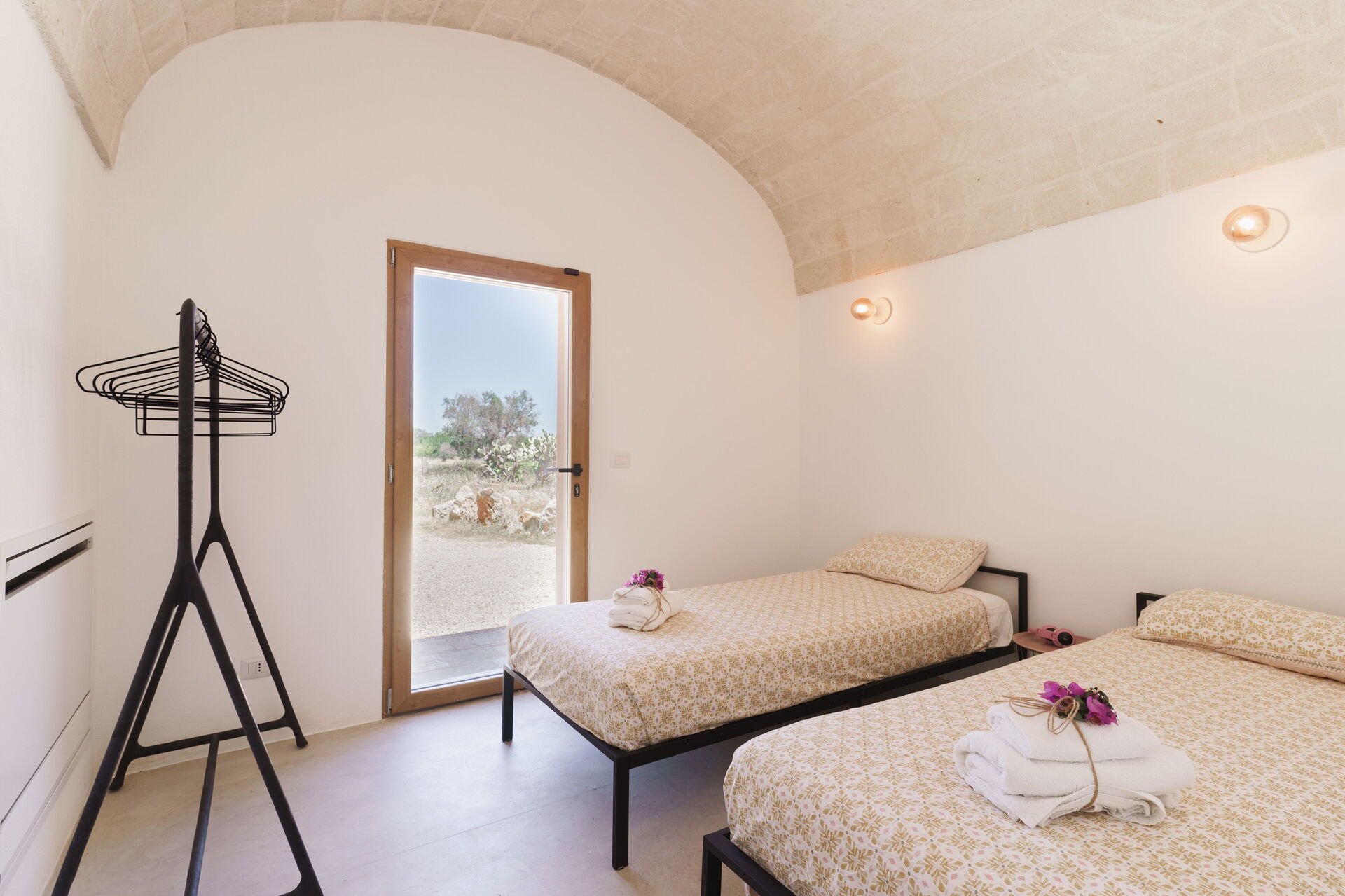 Slaapkamer 2: twee eenpersoonsbedden, airconditioning, uitgang naar de tuin.