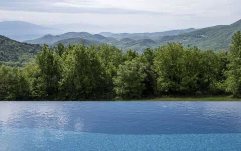 Villa Santa is een luxe vakantievilla gelegen op de top van Monte Santa Croce binnen een exclusief Umbrisch landgoed nabij Perugia, Italië. Deze onberispelijk gerestaureerde woning biedt een uitzonderlijke locatie met een 360-graden uitzicht op het omliggende landgoed en het glooiende Umbrische landschap. Als een van de meest indrukwekkende accommodaties op het landgoed betovert Villa Santa gasten met haar verfijnde interieurontwerp en spectaculaire verwarmde infinity pool die lijkt te zweven boven de Murlo-vallei. De villa biedt elegante accommodatie voor veeleisende reizigers die een rustig toevluchtsoord zoeken in een van Italië's mooiste regio's. Parkeren is mogelijk op het terrein en gasten kunnen de villa bereiken via een 3 kilometer lange gravelweg die geschikt is voor standaard voertuigen en 4x4-auto's.
