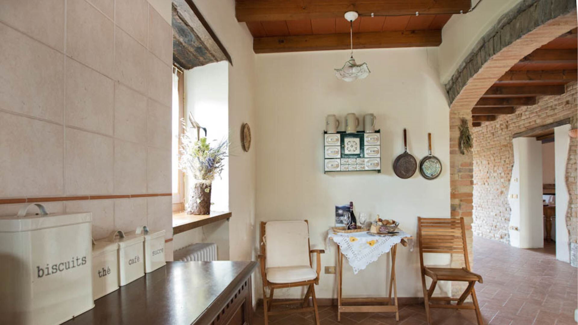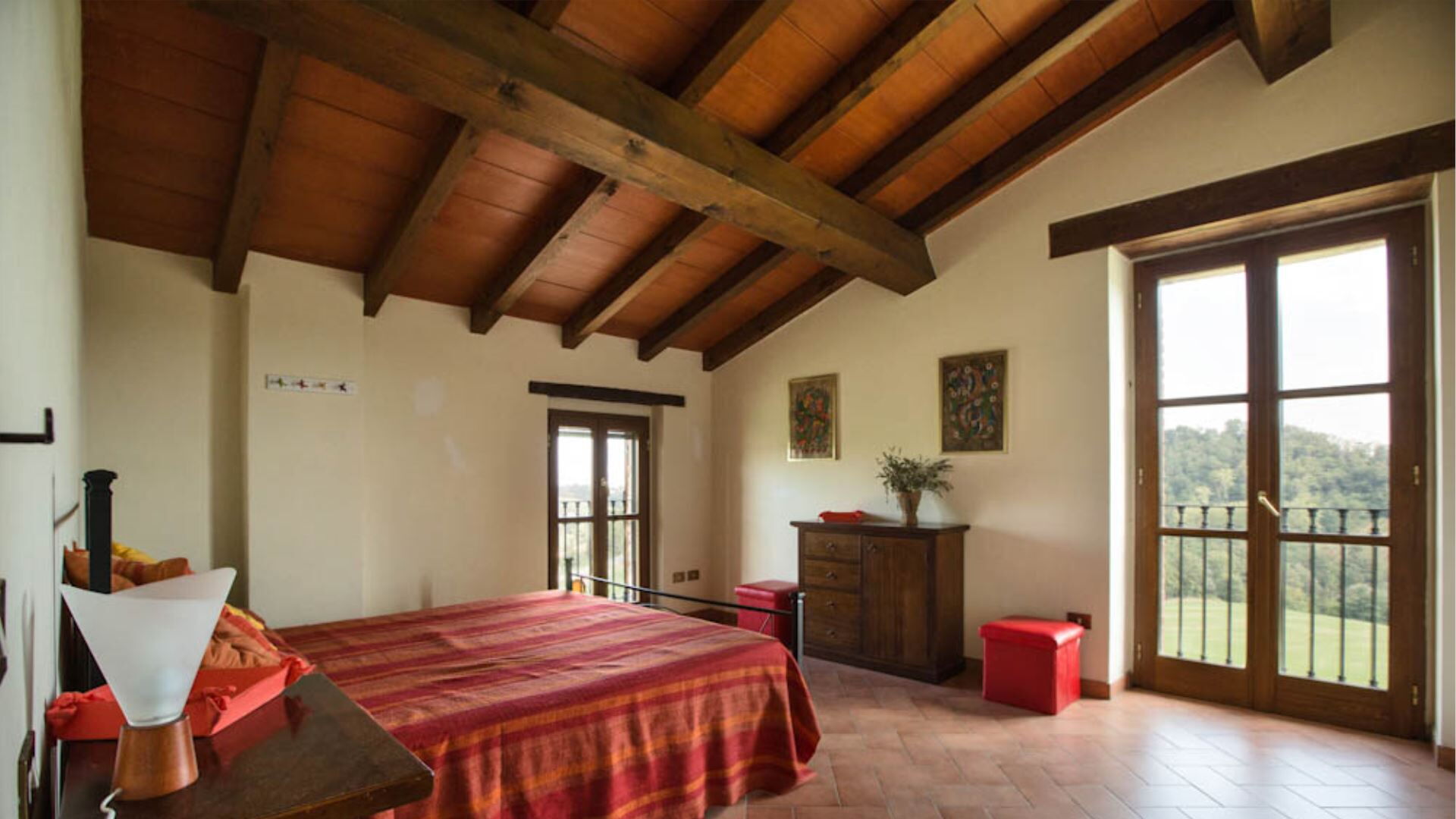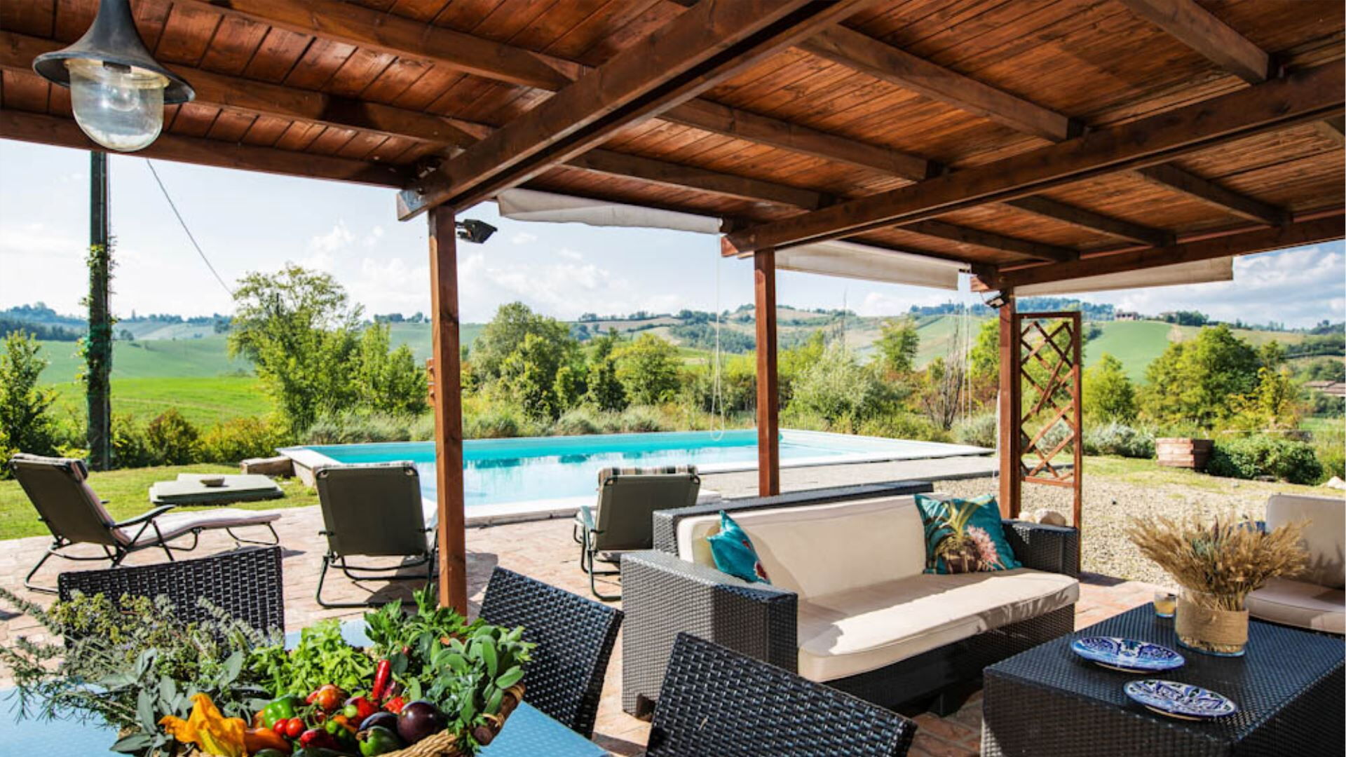 De villa is verdeeld over drie niveaus en biedt ruime en comfortabele accommodatie voor maximaal 10 gasten binnen 5 slaapkamers en 3 badkamers. De begane grond beschikt over een volledig uitgeruste keuken, één tweepersoonsslaapkamer, één slaapkamer met twee eenpersoonsbedden en een badkamer voorzien van een jet shower. Wanneer u naar de eerste verdieping gaat, ontdekt u een grote panoramische woonkamer met een aparte eethoek die een weids uitzicht biedt op het omringende landschap, samen met drie extra slaapkamers bestaande uit twee tweepersoonskamers en één kamer met twee eenpersoonsbedden. De eerste verdieping herbergt ook twee badkamers, waarvan één is uitgerust met een douche en de andere met een ligbad. Het souterrain bevat een karaktervolle taverne met een kenmerkend tongewelf, wat een sfeervolle ruimte biedt voor gezelligheid en entertainment. Deze doordachte verdeling van kamers over meerdere verdiepingen waarborgt privacy en comfort voor grotere groepen terwijl de authentieke charme van de traditionele Emiliaanse architectuur behouden blijft.
