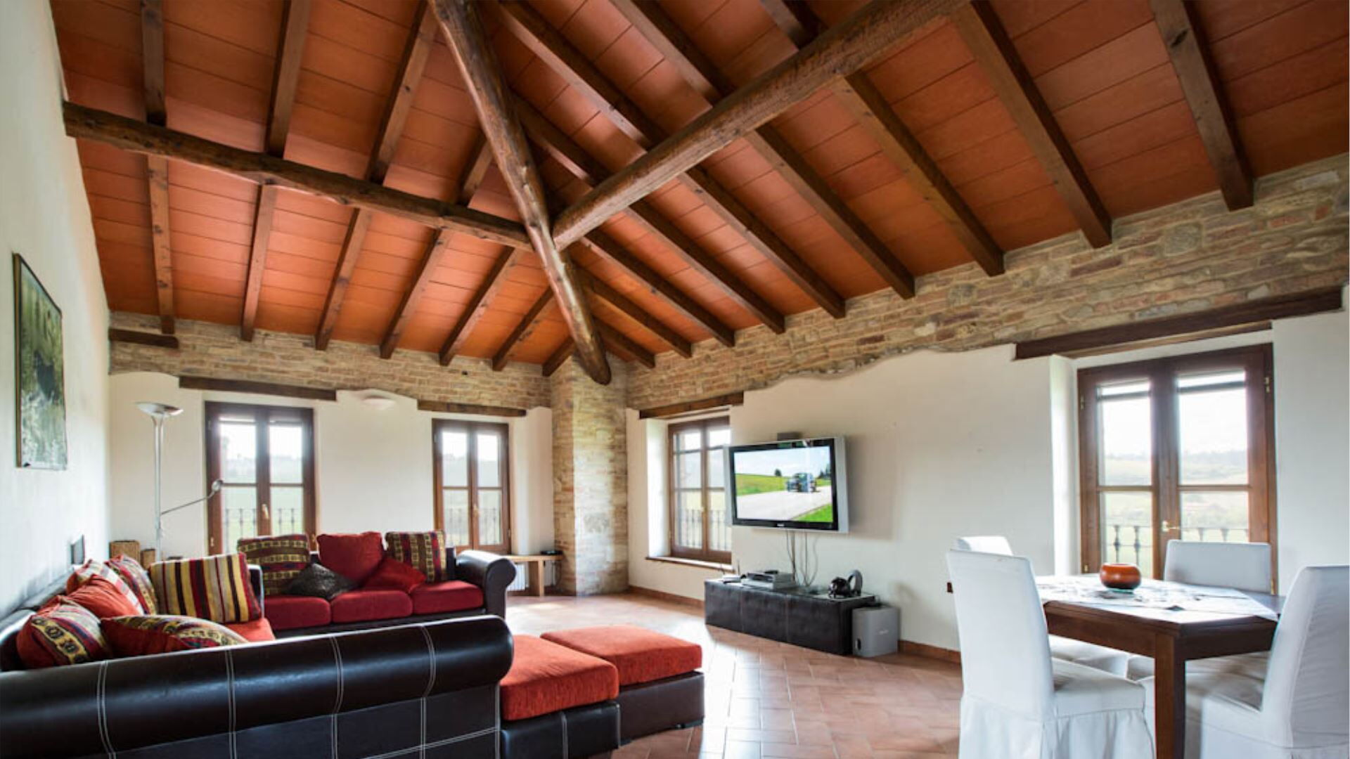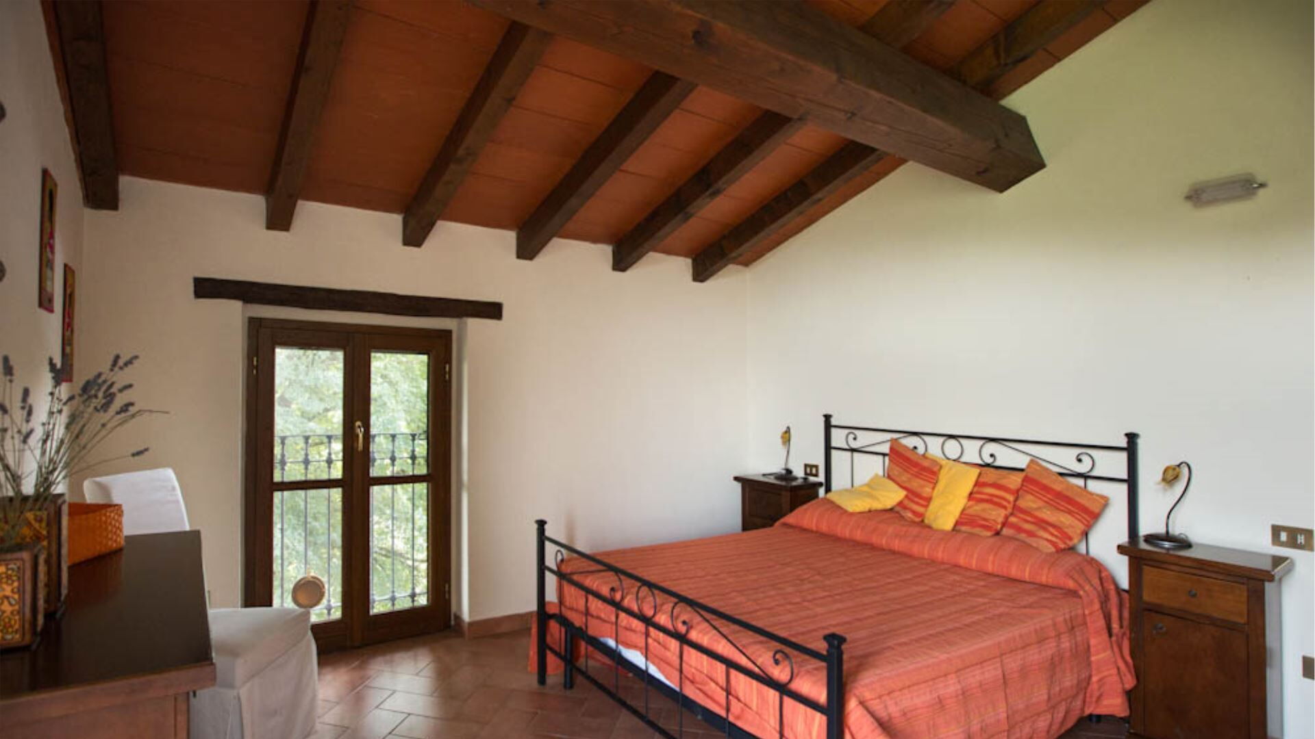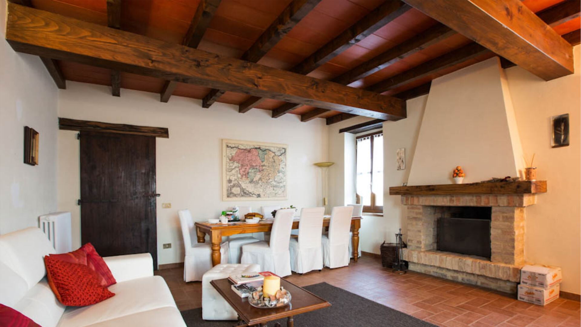 De villa is verdeeld over drie niveaus en biedt ruime en comfortabele accommodatie voor maximaal 10 gasten binnen 5 slaapkamers en 3 badkamers. De begane grond beschikt over een volledig uitgeruste keuken, één tweepersoonsslaapkamer, één slaapkamer met twee eenpersoonsbedden en een badkamer voorzien van een jet shower. Wanneer u naar de eerste verdieping gaat, ontdekt u een grote panoramische woonkamer met een aparte eethoek die een weids uitzicht biedt op het omringende landschap, samen met drie extra slaapkamers bestaande uit twee tweepersoonskamers en één kamer met twee eenpersoonsbedden. De eerste verdieping herbergt ook twee badkamers, waarvan één is uitgerust met een douche en de andere met een ligbad. Het souterrain bevat een karaktervolle taverne met een kenmerkend tongewelf, wat een sfeervolle ruimte biedt voor gezelligheid en entertainment. Deze doordachte verdeling van kamers over meerdere verdiepingen waarborgt privacy en comfort voor grotere groepen terwijl de authentieke charme van de traditionele Emiliaanse architectuur behouden blijft.