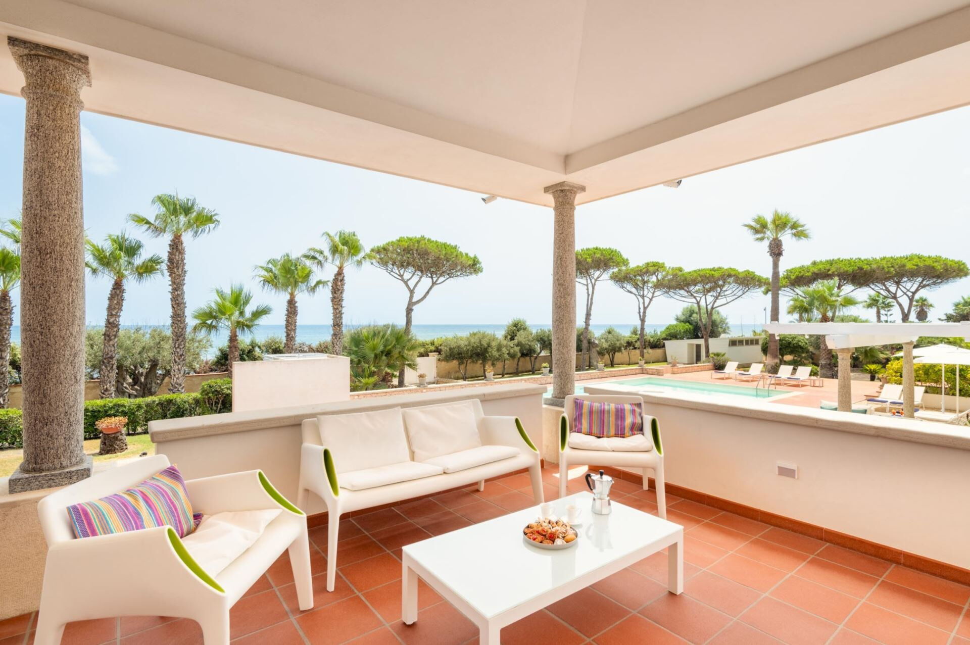 Villa delle Palme is een exclusieve vakantievilla met privézwembad gelegen aan zee in Marina di Modica, een klein badplaatsje aan de zuidkust van Sicilië, Italië. Deze prestigieuze residentie is omgeven door een weelderige tuin en beschikt over ruime, goed uitgeruste panoramische terrassen van waaruit u kunt genieten van een betoverend uitzicht op de zee. De accommodatie bestaat uit twee onafhankelijke villa's, Casa Grande en Casa Piccola, die uitkijken op een groot zwembad en luxueuze accommodatie bieden voor maximaal 18 gasten. De villa is ingericht in een eigentijdse stijl en biedt gastvrije interieurs met modern comfort en exclusieve faciliteiten waaronder een fitnessruimte, sauna, hot tub en sensory shower. Privéparkeergelegenheid is beschikbaar op het terrein. Vanuit deze droomlocatie bereikt u de baroksteden Modica, Scicli, Ragusa Ibla en Noto binnen slechts enkele kilometers, evenals Marina di Ragusa met zijn talrijke nachtclubs en de filmlocaties uit de serie Commissaris Montalbano, waaronder Sampieri, Punta Secca en het Kasteel van Donnafugata.