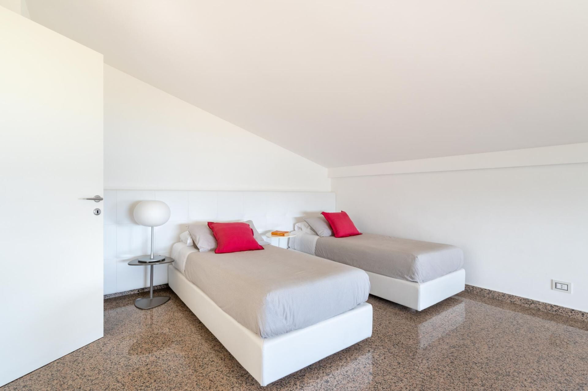 De accommodatie biedt plaats aan maximaal 18 gasten verdeeld over twee verbonden gebouwen die beide toegang delen tot het centrale zwembad. De villa bestaat uit 9 slaapkamers en 8 badkamers verdeeld over Casa Grande en Casa Piccola. Casa Grande strekt zich uit over drie verdiepingen. De eerste verdieping beschikt over een woonkamer, 1 tweepersoonsslaapkamer met kledingkast, 1 badkamer met douche en een veranda. De tweede verdieping bevat 1 tweepersoonsslaapkamer, 1 slaapkamer met twee aparte bedden, 1 badkamer met douche en een klein terras. De begane grond herbergt een woon-eetkamer, een volledig uitgeruste keuken, 2 tweepersoonsslaapkamers elk met eigen douche, een wasruimte en een terras. Casa Piccola is verdeeld over twee verdiepingen. De eerste verdieping biedt een woon-eetkamer met keukengedeelte, 1 tweepersoonsslaapkamer met eigen douche, 1 slaapkamer met twee aparte bedden, 1 badkamer met douche en een veranda. De begane grond, toegankelijk van buitenaf, omvat 1 tweepersoonsslaapkamer met eigen douche, 1 tweepersoons- of tweepersoonskamer met twee aparte bedden met eigen douche, en een terras. De villa beschikt ook over een extra loungeruimte en een exclusieve fitnessruimte met 2 badkamers met douche.