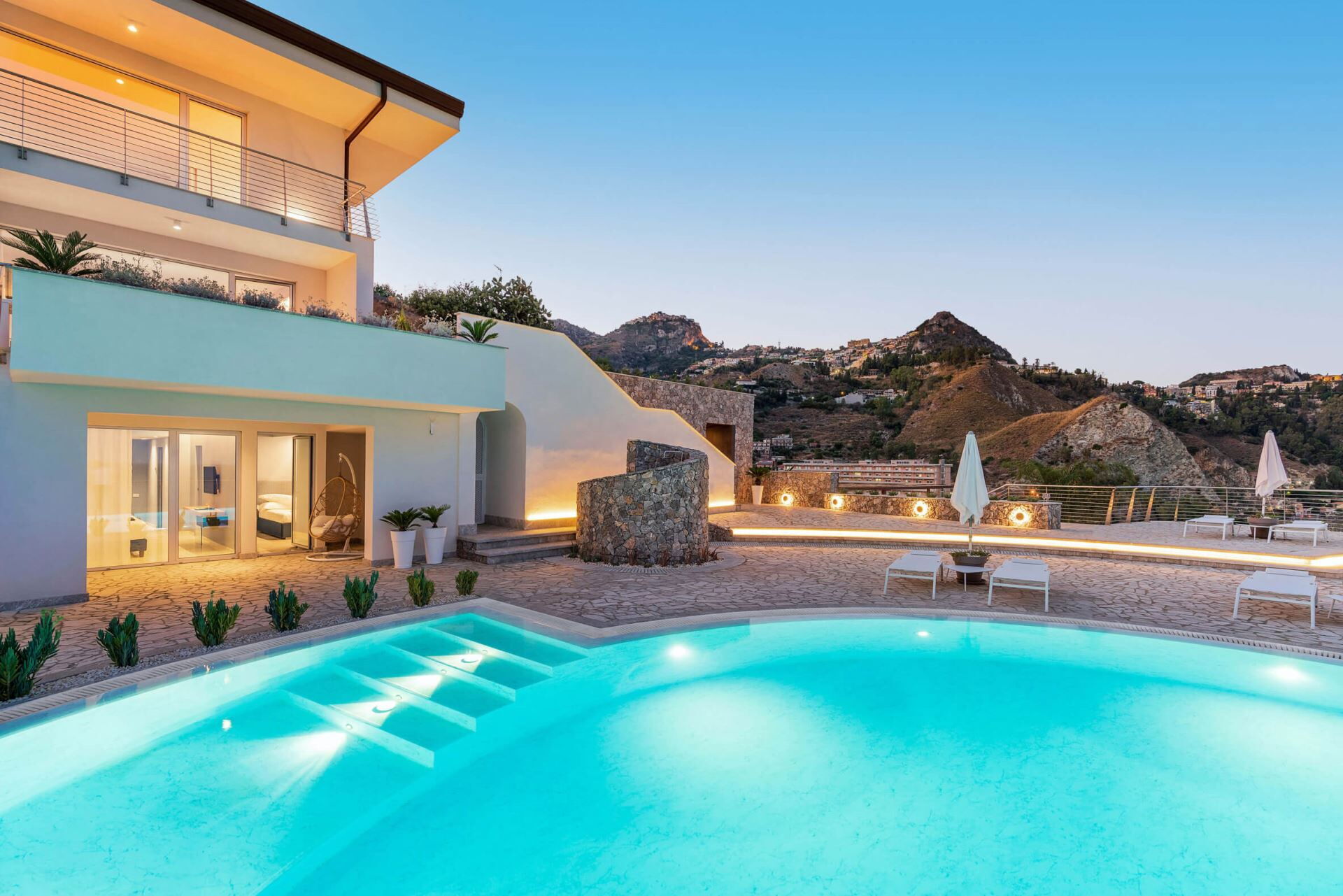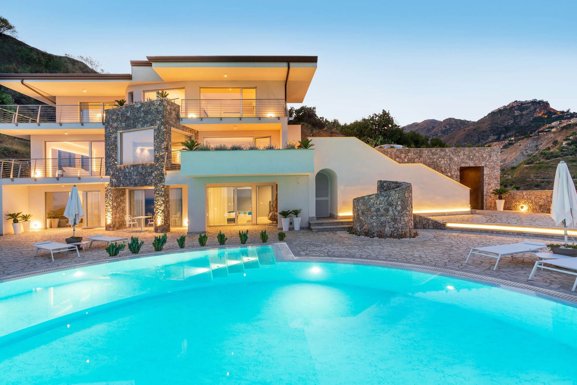 Villa Taormina is een luxe vakantievilla gelegen nabij Taormina, Italië, en biedt een uitzonderlijk toevluchtsoord voor veeleisende reizigers die op zoek zijn naar comfort en exclusiviteit. Deze panoramische accommodatie bevindt zich op een heuvel en biedt adembenemende uitzichten over de zee, terwijl u slechts 600 meter van het dichtstbijzijnde strand verwijderd bent. De villa beschikt over een verwarmd zoutwaterzwembad dat uw ontspanningservaring gedurende uw verblijf verhoogt. Villa Taormina is ontworpen voor maximaal 20 gasten en combineert hedendaagse architectuur met luxueuze voorzieningen, waardoor het een ideale keuze is voor grote families of groepen. De accommodatie beschikt over een speciale wellnessruimte compleet met een fitnessruimte, sauna, massageruimte en multisensorische douche, zodat u verzekerd bent van een werkelijk verjongende vakantie. Met de nabijheid van zowel Giardini Naxos als Taormina, dient deze opmerkelijke villa als een perfecte uitvalsbasis voor het verkennen van de culturele en natuurlijke schatten van Sicilië.
